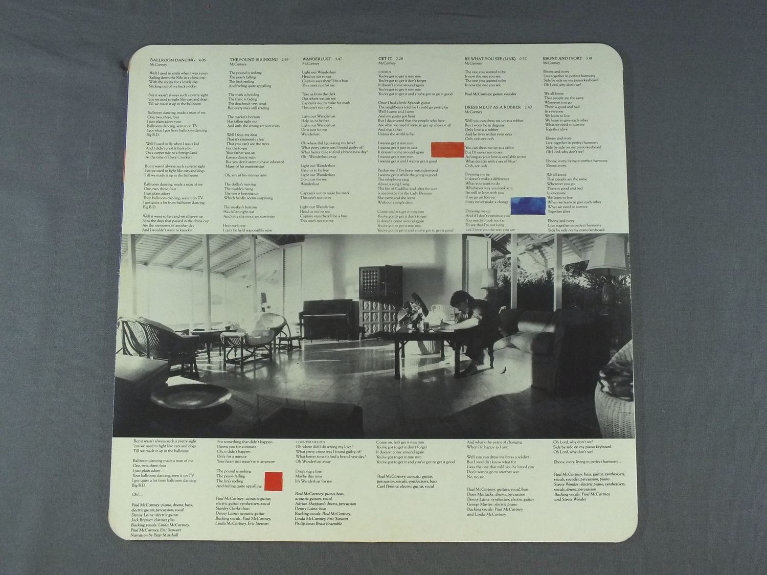 PAUL McCARTNEY/TUG OF WAR PCTC259 製造国:英国盤 / Media:LPMatrix:A-11U B-8U外観:EX+盤の状態:EX 価格(税込):¥4,400(売約済) 送料 7inch:定形外郵便 360円~LP:定形外郵便 660円~送料は、注文の最終画面で確認頂けます。 > > PAUL McCARTNEY/TUG OF WAR 外観 (EX+)特記事項:ニス塗り風のコーティング仕様。レコード取り出し口下角に僅かなぶつかり跡少々。ジャケ表面は表裏共にスレやスリキズ、よごれ等のあまり無いかなりきれいな状態。オリジナルインナーもしっかりした状態で抜け無し。外観EX+の共通説明:中古としては美品、一見してきれいでダメージが軽微。シミ、ヨゴレ、スレ有っても僅か~少し。 盤の状態 (EX)特記事項:薄いスリキズ・スレ軽くある感じ。ほとんどが軽微なものの様子です。曲間など、静かなところを中心に聴いて見ましたが、チリプチ軽度で音もしっかり鳴っていました。盤EXの共通説明:盤面のスリキズが薄いものが少し~軽度 音に出そうなものは無いように見える(軽微なソフトティック音は除く)。 Tweet それぞれの画像をクリックすると、大きい写真が見られます こちらの商品もお勧めです 4,950円 JOHN & YOKO - PLASTIC ONO BANDF / SOME TIME IN NEW YORK CITY 5,500円 BEATLES / AT THE HOLLYWOOD BOWL 5,500円 GEORGE HARRISON / THIRTY THREE & 1/3 5,500円 JOHN LENNON / SHAVED FISH 5,500円 GEORGE HARRISON / LIVING IN THE MATERIAL WORLD
