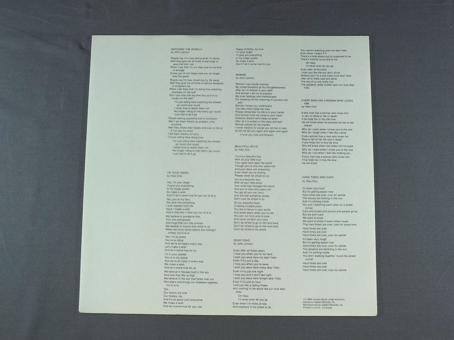 JOHN LENNO & YOKO ONO/DOUBLE FANTASY EST2083 製造国:英国盤 / Media:LPMatrix:A-1-1 B-1-1-1外観:EX盤の状態:EX- 価格(税込):¥3,850(売約済) 送料 7inch:定形外郵便 360円~LP:定形外郵便 660円~送料は、注文の最終画面で確認頂けます。 > > JOHN LENNO & YOKO ONO/DOUBLE FANTASY 外観 (EX)特記事項:底スレ多少有。ジャケ表面は全体的にスレやスリキズ、よごれ等は少ない印象。オリジナルインナーもよごれやヨレはあまり無くしっかりした感じです。抜けも無いです。外観EXの共通説明:ダメージが限定的。中古品としては保存状態がよい方。シミ、ヨゴレ、スレ 少し~軽度。 盤の状態 (EX-)特記事項:薄いスリキズ・細かい表面スレ多少ある感じ。殆どが軽微なものの様子です。所々聴いてみましたが、チリプチ少ない綺麗な再生具合でした。盤EX-の共通説明:盤面のスリキズが多少有り。音に出そうなものは殆ど無いように見える~さほど気にならないぐらいの軽いプチ数カ所程度。 Tweet それぞれの画像をクリックすると、大きい写真が見られます こちらの商品もお勧めです 5,500円 GEORGE HARRISON / THIRTY THREE & 1/3 4,950円 JOHN & YOKO - PLASTIC ONO BANDF / SOME TIME IN NEW YORK CITY 5,500円 JOHN LENNON / SHAVED FISH 5,500円 GEORGE HARRISON / LIVING IN THE MATERIAL WORLD 5,500円 BEATLES / AT THE HOLLYWOOD BOWL