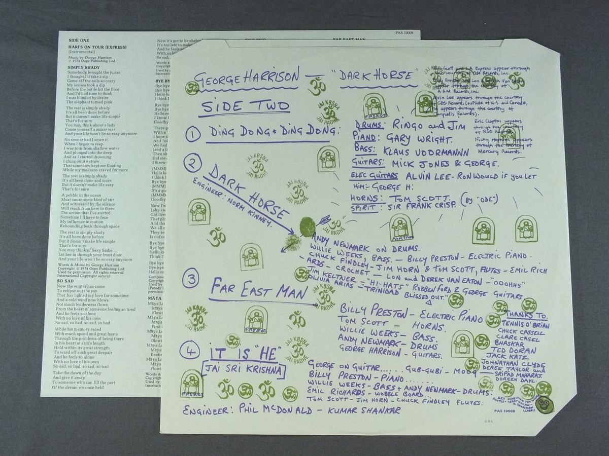 GEORGE HARRISON/DARK HORSE PAS10008 製造国:英国盤 / Media:LPMatrix:2U 2U外観:EX盤の状態:EX 価格(税込):¥6,050(売約済) 送料 7inch:定形外郵便 360円~LP:定形外郵便 660円~送料は、注文の最終画面で確認頂けます。 > > GEORGE HARRISON/DARK HORSE 外観 (EX)特記事項:ジャケ表面は見開きも含めて全体的によごれの少ないきれいな状態。スレやスリキズ等も薄い感じです。表ジャケ右上隅にステッカー跡有りオリジナルインナーもよごれやヨレ感の無いしっかりした状態で抜けも無いです。歌詞カードもきれいな状態。外観EXの共通説明:ダメージが限定的。中古品としては保存状態がよい方。シミ、ヨゴレ、スレ 少し~軽度。 盤の状態 (EX)特記事項:薄いスリキズ・スレ軽くある感じ。ほとんどが軽微なものの様子です。曲間など、静かなところを中心に聴いて見ましたが、チリプチ軽度で音もしっかり鳴っていました。盤EXの共通説明:盤面のスリキズが薄いものが少し~軽度 音に出そうなものは無いように見える(軽微なソフトティック音は除く)。 Tweet それぞれの画像をクリックすると、大きい写真が見られます こちらの商品もお勧めです 5,500円 GEORGE HARRISON / THIRTY THREE & 1/3 5,500円 BEATLES / AT THE HOLLYWOOD BOWL 5,500円 JOHN LENNON / SHAVED FISH 4,950円 JOHN & YOKO - PLASTIC ONO BANDF / SOME TIME IN NEW YORK CITY 5,500円 GEORGE HARRISON / LIVING IN THE MATERIAL WORLD