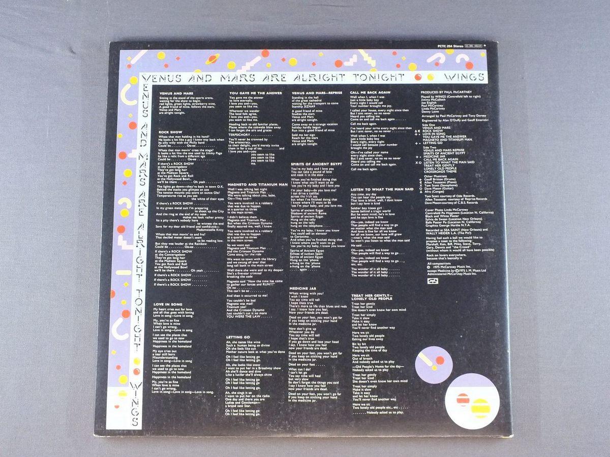 WINGS/VENUS AND MARS PCTC254 製造国:英国盤 / Media:LPMatrix:A面 1U B面1U外観:EX盤の状態:EX 価格(税込):¥7,150(売約済) 送料 7inch:定形外郵便 360円~LP:定形外郵便 660円~送料は、注文の最終画面で確認頂けます。 > > WINGS/VENUS AND MARS 外観 (EX)特記事項:ヘリスレが少し。ジャケ表面は軽いスレが少しありますが、見開きも含めて全体的によごれやキズ等はあまりなくきれいな状態です。オリジナルインナーもスレやよごれ等あまり無いきれいな状態。底抜け有り。ポスター2枚とステッカー2枚もきれいな状態です。外観EXの共通説明:ダメージが限定的。中古品としては保存状態がよい方。シミ、ヨゴレ、スレ 少し~軽度。 盤の状態 (EX)特記事項:薄いスリキズ・スレ軽く有る感じ。殆どが軽微なものの様子で、きれいな印象。曲間など、静かなところを中心に聴いて見ましたが、チリノイズ少ないきれいな再生具合でした。盤EXの共通説明:盤面のスリキズが薄いものが少し~軽度 音に出そうなものは無いように見える(軽微なソフトティック音は除く)。 Tweet それぞれの画像をクリックすると、大きい写真が見られます こちらの商品もお勧めです 5,500円 GEORGE HARRISON / THIRTY THREE & 1/3 5,500円 GEORGE HARRISON / LIVING IN THE MATERIAL WORLD 4,950円 JOHN & YOKO - PLASTIC ONO BANDF / SOME TIME IN NEW YORK CITY 5,500円 JOHN LENNON / SHAVED FISH 5,500円 BEATLES / AT THE HOLLYWOOD BOWL