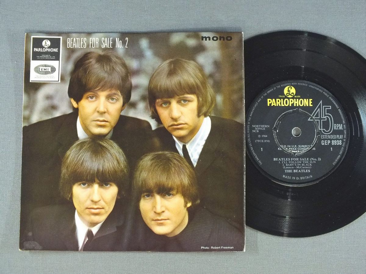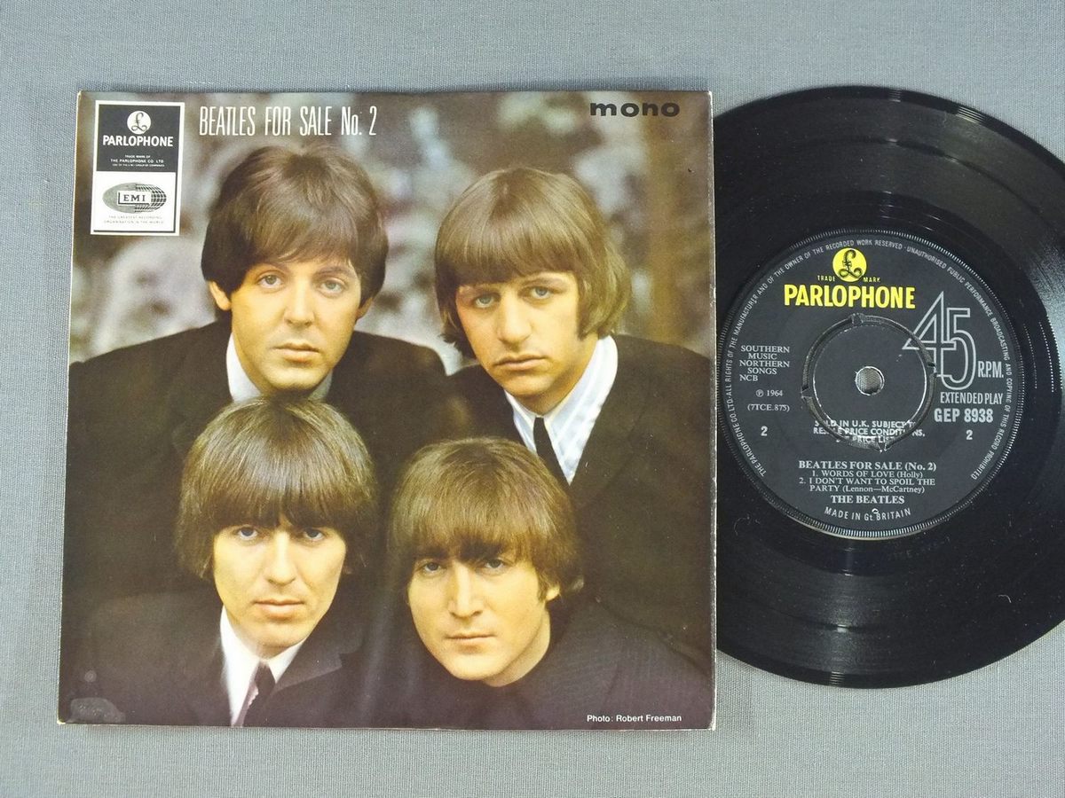BEATLES/BEATLES FOR SALE No2 EP GEP8938 製造国:英国盤 / Media:7inchMatrix: -1/3/RR -1/1/N外観:EX盤の状態:EX 価格(税込):¥16,500(売約済) 送料 7inch:定形外郵便 360円~LP:定形外郵便 660円~送料は、注文の最終画面で確認頂けます。 > > BEATLES/BEATLES FOR SALE No2 EP 外観 (EX)特記事項:表ジャケは厚手のコーティング仕様。背下付近にコーティングの浮きが少し。全体的にコーティングのヨレシワは少なく、スレやスリキズ、よごれ等も薄い感じ。裏ジャケは背下付近にステッカーの糊跡のようなよごれ有りますが、全体的によごれは少なく、むしろ白い感じ有りです。外観EXの共通説明:ダメージが限定的。中古品としては保存状態がよい方。シミ、ヨゴレ、スレ 少し~軽度。 盤の状態 (EX)特記事項:薄いスリキズ・スレ少しある程度。音に出そうなものもなく一見してきれいな状態です。曲間など、静かなところを中心に聴いて見ましたが、チリノイズ少ないきれいな再生具合でした。盤EXの共通説明:盤面のスリキズが薄いものが少し~軽度 音に出そうなものは無いように見える(軽微なソフトティック音は除く)。 Tweet それぞれの画像をクリックすると、大きい写真が見られます こちらの商品もお勧めです 5,500円 JOHN LENNON / SHAVED FISH 5,500円 GEORGE HARRISON / THIRTY THREE & 1/3 4,950円 JOHN & YOKO - PLASTIC ONO BANDF / SOME TIME IN NEW YORK CITY 5,500円 GEORGE HARRISON / LIVING IN THE MATERIAL WORLD 5,500円 BEATLES / AT THE HOLLYWOOD BOWL