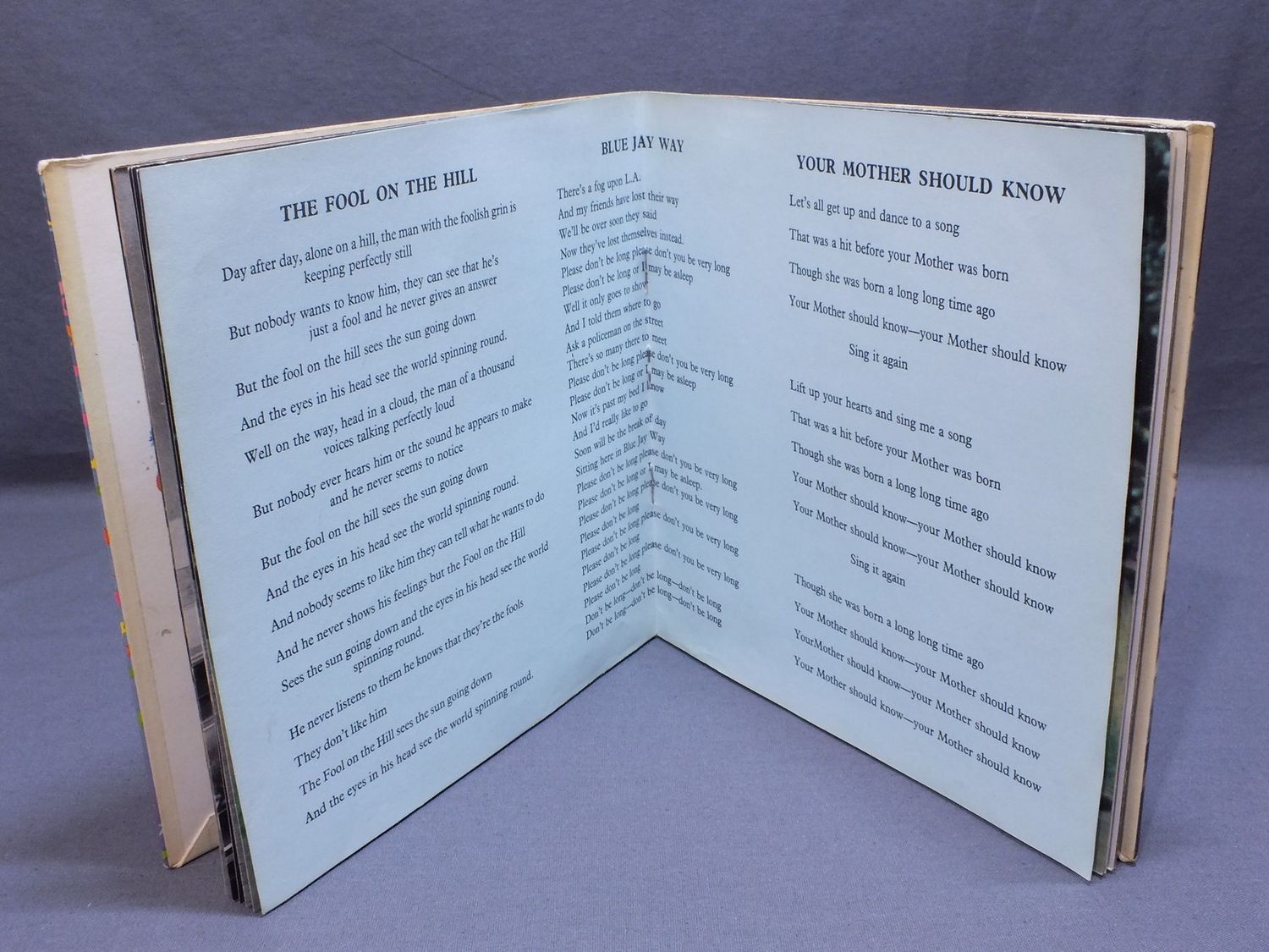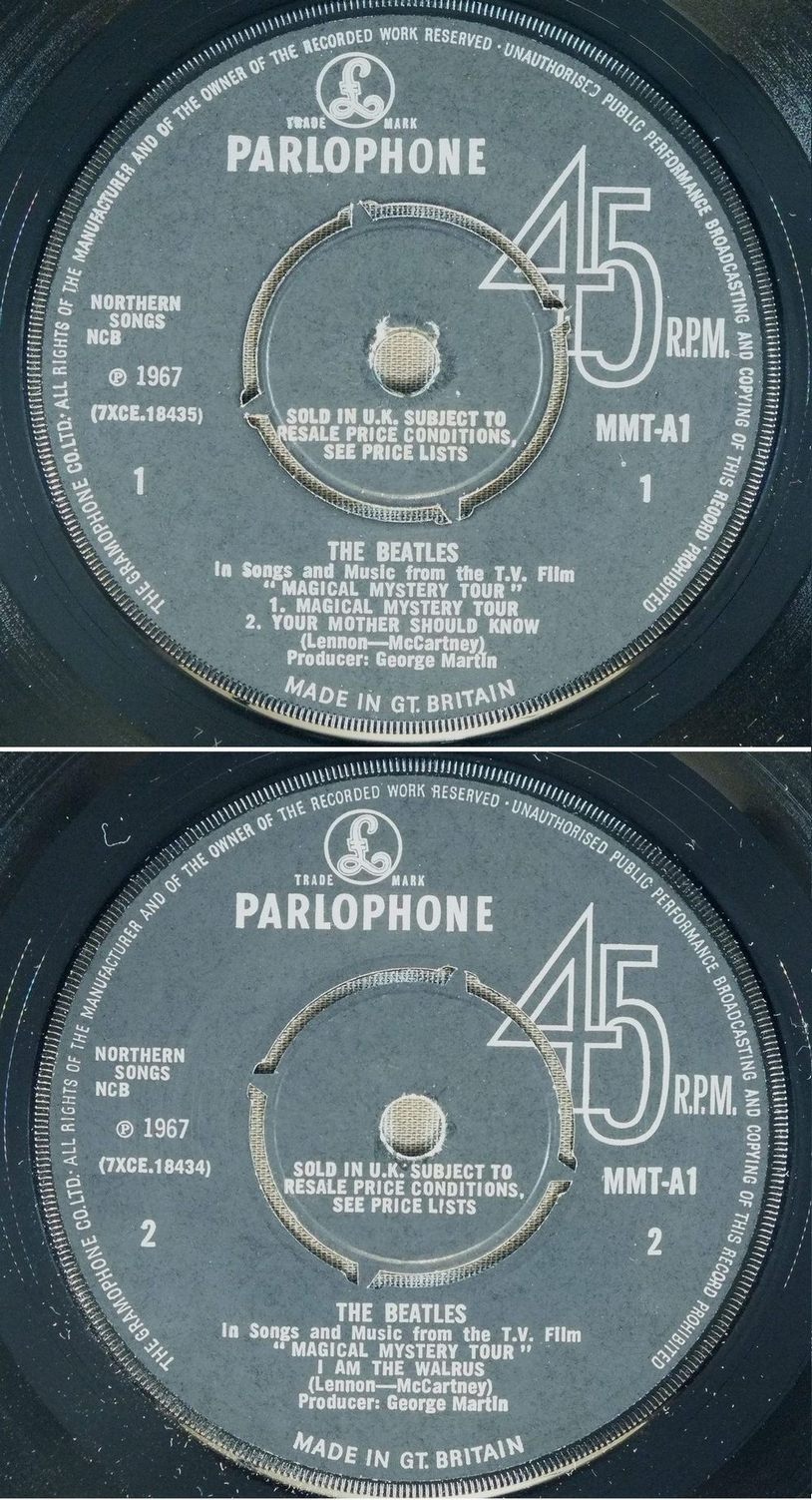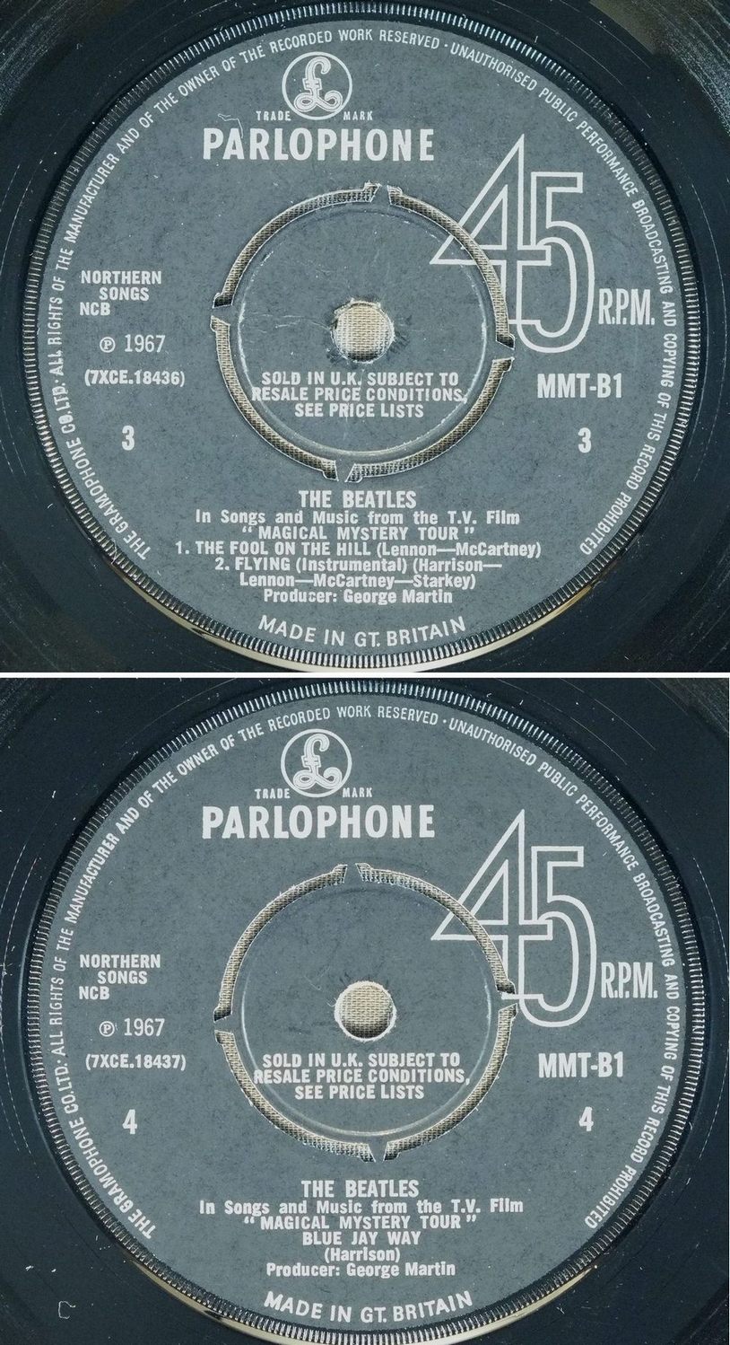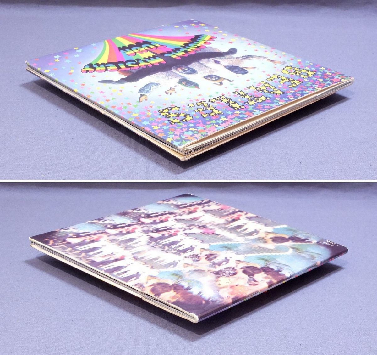 BEATLES/MAGICAL MYSTERY TOUR EP MONO MMT1 製造国:英国盤 / Media:7inchMatrix: -1/4/AD -1/4/GHG -1/4/OA -2/2/LA外観:EX盤の状態:EX 価格(税込):¥13,200(売約済) 送料 7inch:定形外郵便 360円~LP:定形外郵便 660円~送料は、注文の最終画面で確認頂けます。 > > BEATLES/MAGICAL MYSTERY TOUR EP MONO 外観 (EX)特記事項:全体的に表裏ジャケ共にコーティングのヨレシワは少なく、スレやスリキズ、よごれ等も薄い感じ。見開き最初のページにシミが少々。ありがちなホッチキスの脱落も無くブック部分は本体にしっかり留まっている状態。白のインナーは取り出し口が波型になったオリジナルタイプ。外観EXの共通説明:ダメージが限定的。中古品としては保存状態がよい方。シミ、ヨゴレ、スレ 少し~軽度。 盤の状態 (EX)特記事項:薄いスリキズ・スレ少しある程度。音に出そうなものもなく一見してきれいな状態です。曲間など、静かなところを中心に聴いて見ましたが、チリノイズ少ないきれいな再生具合でした。盤EXの共通説明:盤面のスリキズが薄いものが少し~軽度 音に出そうなものは無いように見える(軽微なソフトティック音は除く)。 Tweet それぞれの画像をクリックすると、大きい写真が見られます こちらの商品もお勧めです 5,500円 GEORGE HARRISON / THIRTY THREE & 1/3 5,500円 BEATLES / AT THE HOLLYWOOD BOWL 5,500円 JOHN LENNON / SHAVED FISH 5,500円 GEORGE HARRISON / LIVING IN THE MATERIAL WORLD 4,950円 JOHN & YOKO - PLASTIC ONO BANDF / SOME TIME IN NEW YORK CITY