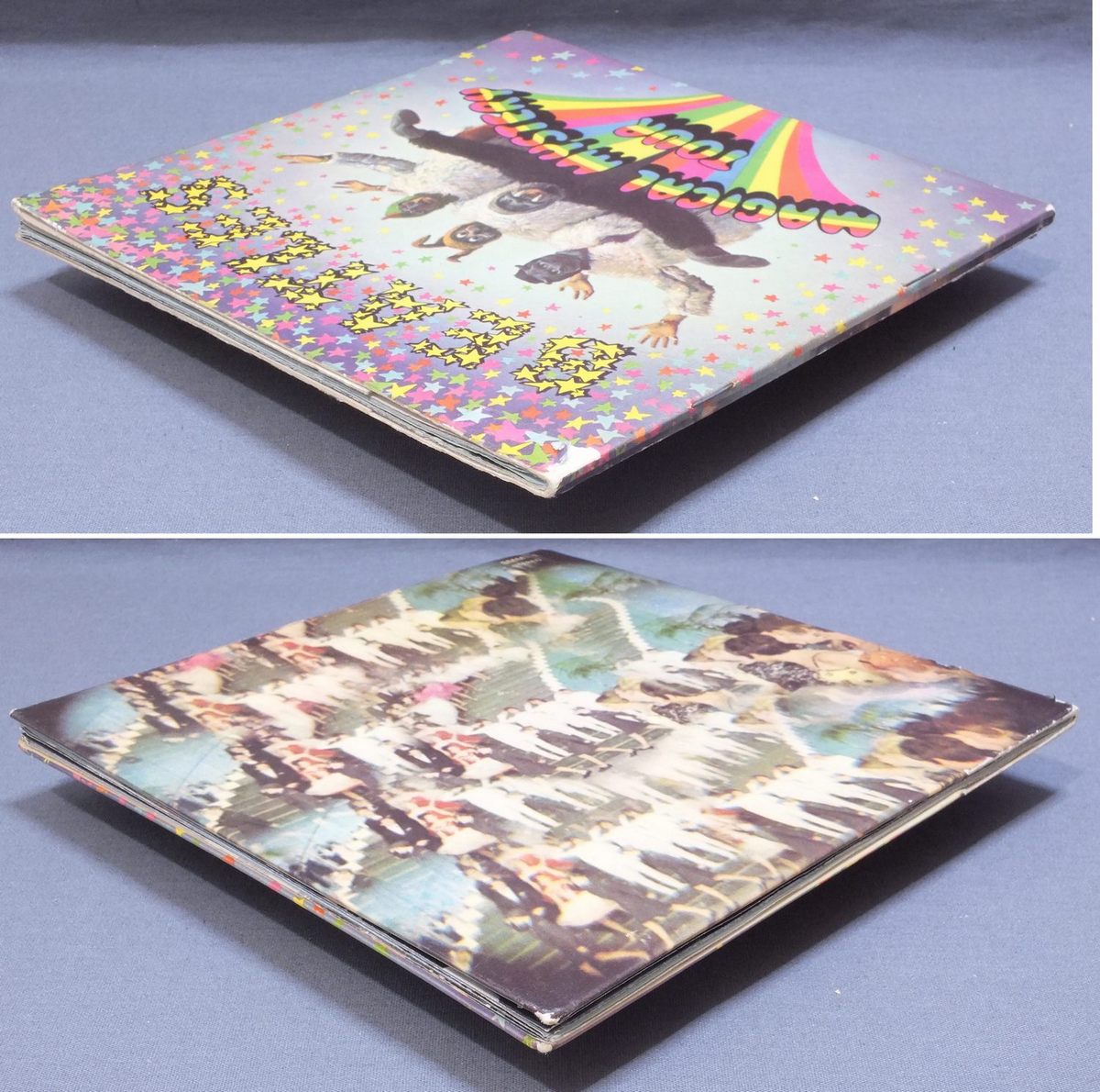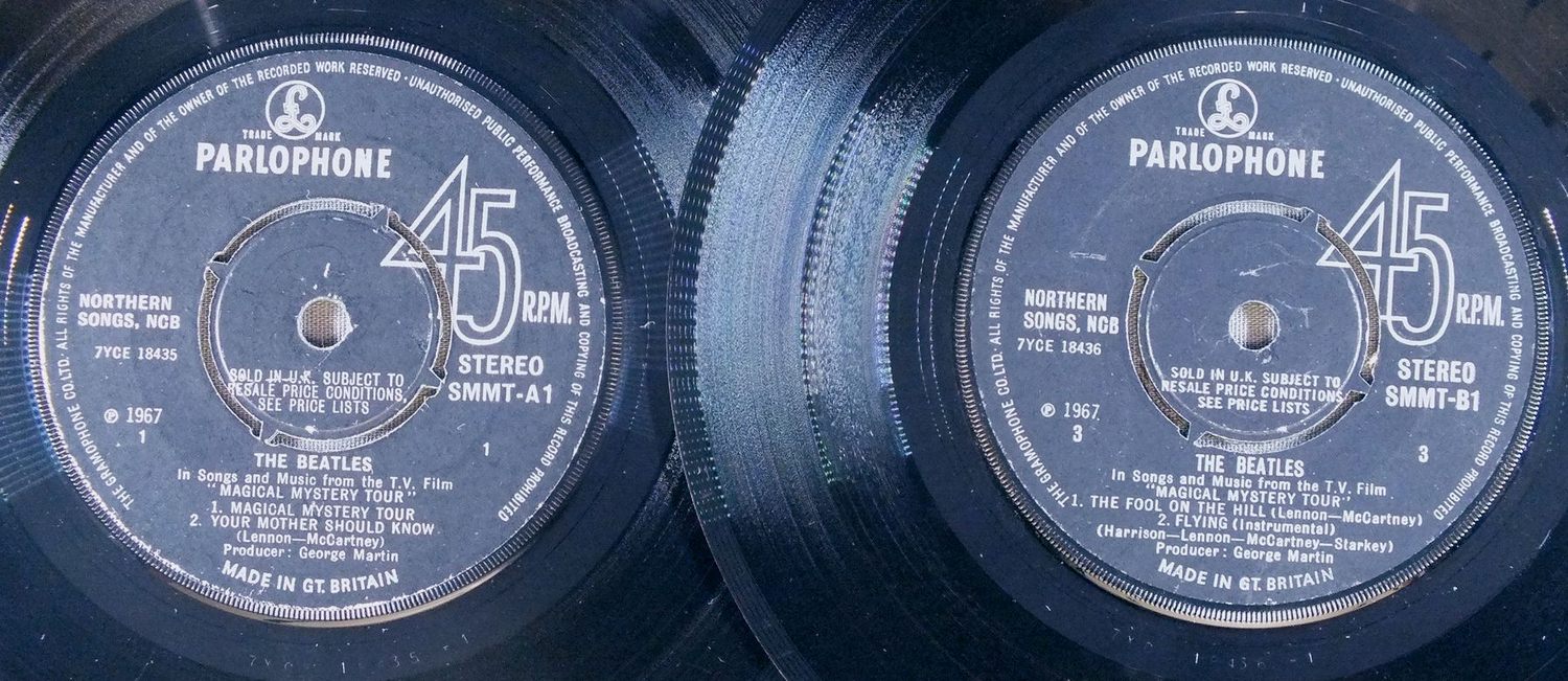 BEATLES/MAGICAL MYSTERY TOUR EP STEREO SMM-TA1 製造国:英国盤 / Media:7inchMatrix: 2/4/OA 1/6/PT 1/7/OH 1/1/HG外観:EX-盤の状態:VG+ 価格(税込):¥16,500(売約済) 送料 7inch:定形外郵便 360円~LP:定形外郵便 660円~送料は、注文の最終画面で確認頂けます。 > > BEATLES/MAGICAL MYSTERY TOUR EP STEREO 外観 (EX-)特記事項:表ジャケの背上付近に剥がれ有り。背下も角スレ多少有り。表裏ジャケ共に厚手のコーティング使用。ヨレシワは全体的に少なめ。スレやスリキズ多少有り。ブックレットはあまりめくりヨレやよごれの無いきれいな状態。レコード取り出し口が波形になったオリジナルの白のプレーンなインナーが付属。ヨレやシミ等有り。外観EX-の共通説明:ダメージ軽度~多少。 中古品としては普通の状態。シミ、ヨゴレ、スレなど軽く~多少。 盤の状態 (VG+)特記事項:3面の最初にプチ出る小さ目のキズ有。他は薄いスリキズ・スレ軽度です。盤VG+の共通説明:盤面にスリキズが多少~やや有り、音に出そうなものも多少ある。 その他:オリジナル盤はMONO盤とSTEREO盤と2種類ありますが(再発盤はSTEREO盤のみ)、発売当時はSTEREO装置がまだ一般的でなかった関係で、STEREO盤はあまりあまり流通しておらず、今ではほとんど見かけることもなくなった貴重なアイテム。ビートルズの英国オリジナル盤ではかなりハードルの高いコレクターズ・アイテムになってしまいました。 Tweet それぞれの画像をクリックすると、大きい写真が見られます こちらの商品もお勧めです 5,500円 JOHN LENNON / SHAVED FISH 5,500円 BEATLES / AT THE HOLLYWOOD BOWL 4,950円 JOHN & YOKO - PLASTIC ONO BANDF / SOME TIME IN NEW YORK CITY 5,500円 GEORGE HARRISON / LIVING IN THE MATERIAL WORLD 5,500円 GEORGE HARRISON / THIRTY THREE & 1/3