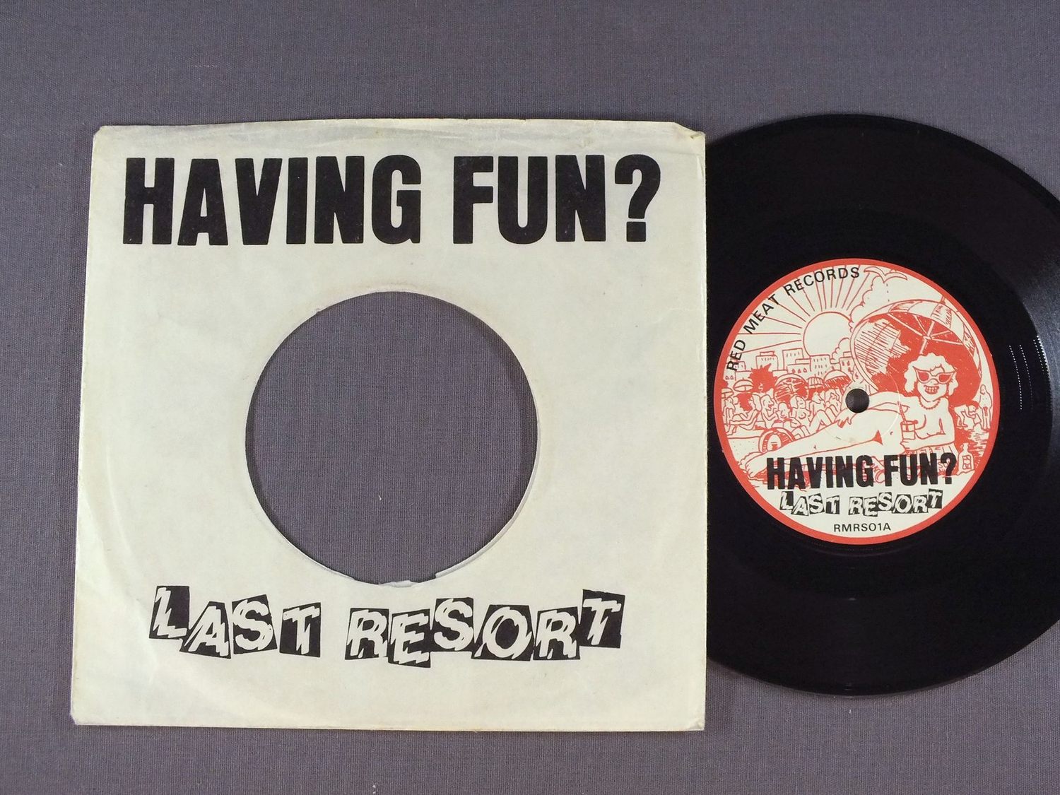 LAST RESORT/HAVING FUN RMRS01 製造国:英国盤 / Media:7inchMatrix:A1 B1外観:EX盤の状態:EX 価格(税込):¥9,350(売約済) 送料 7inch:定形外郵便 360円~LP:定形外郵便 660円~送料は、注文の最終画面で確認頂けます。 > > LAST RESORT/HAVING FUN 外観 (EX)特記事項:裏側のセンター穴に破れが少々。レコード取り出し口にヨレは多少ありますが、全体的にはヨレやよごれは少なめでしっかりした感じが残っています。外観EXの共通説明:ダメージが限定的。中古品としては保存状態がよい方。シミ、ヨゴレ、スレ 少し~軽度。 盤の状態 (EX)特記事項:薄いスリキズ・スレ軽くある感じ。ほとんどが軽微なものの様子です。曲間など、静かなところを中心に聴いて見ましたが、チリプチ軽度で音もしっかり鳴っていました。盤EXの共通説明:盤面のスリキズが薄いものが少し~軽度 音に出そうなものは無いように見える(軽微なソフトティック音は除く)。 Tweet それぞれの画像をクリックすると、大きい写真が見られます こちらの商品もお勧めです 3,850円 DR FEELGOOD / BE SEENING YOU 3,520円 STRANGLERS / LIVE ( X CERT ) 3,520円 STRANGLERS / AURAL SCULPTURE 3,080円 POLECATS WITH ROBIN SCOTT / CULT HEROES 4,950円 DEVO / WE ARE DEVO 2,640円 VARIOUS PUNK ARTISTS / YUP IN FLAMES 3,300円 MOOD SIX / MATTER OFF 4,400円 STRAPS / STRAPS