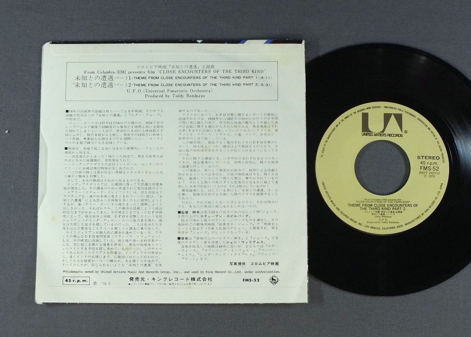 JOHN WILLIAMSジョン・ウィリアムス/SOUNDTRACK CLOSE ENCOUNTERS OF THE HIRD KIND未知との遭遇 主題曲 FMS52 製造国:日本盤 / Media:7inch外観:EX盤の状態:EX 価格(税込):¥660 送料 7inch:定形外郵便 360円~LP:定形外郵便 660円~送料は、注文の最終画面で確認頂けます。 > > JOHN WILLIAMS/SOUNDTRACK CLOSE ENCOUNTERS OF THE HIRD KIND 外観 (EX)特記事項:背スレやヘリスレ。裏ジャケにシミ。外観EXの共通説明:ダメージが限定的。中古品としては保存状態がよい方。シミ、ヨゴレ、スレ 少し~軽度。 盤の状態 (EX)特記事項:薄いスリキズ・スレ軽くある感じ。軽微なものの様子です。盤EXの共通説明:盤面のスリキズが薄いものが少し~軽度 音に出そうなものは無いように見える(軽微なソフトティック音は除く)。 Tweet それぞれの画像をクリックすると、大きい写真が見られます こちらの商品もお勧めです 770円 ORIGINAL SOUND TRACKオリジナル・サウンドトラック / SUPERMAN 2映画 スーパーマン2 冒険編 660円 RALPH BURNSラルフ・バーンズ / SOUND TRACK ALL THAT JAZZ映画オール・ザット・ジャズ 1,650円 MOMOE YAMAGUCHI & TOMOKAZU MIURA山口百恵と三浦友和 / WHITE LOVEホワイト・ラブ 880円 JOHN ADDISONジョン・アディスン / SOUNDTRACK BRIDGE TOO FAR映画 遠すぎた橋 440円 TV SONGテレビドラマ / ORETACHI NO KUNSHOH俺たちの勲章/太陽にほえろ 主題曲集 1,210円 PETER OTOOLE % SOPHIA LORENピーター・オトール&ソフィア・ローレン / SOUNDTRACK MAN OF LA MANCHA映画 ラ・マンチャの男 1,980円 HIROSHI AKUTAGAWA - TOKYO SYMPHONY ORCHESTRA芥川比呂志 - 東京交響楽団 / SOUNDTRACK SUNA-NO UTSUWA松竹映画 砂の器 990円 OLIVIA NEWTON-JOHN etcオリビア・ニュートンジョン他 / TWO OF A KINDサントラ・セカンド・チャンス