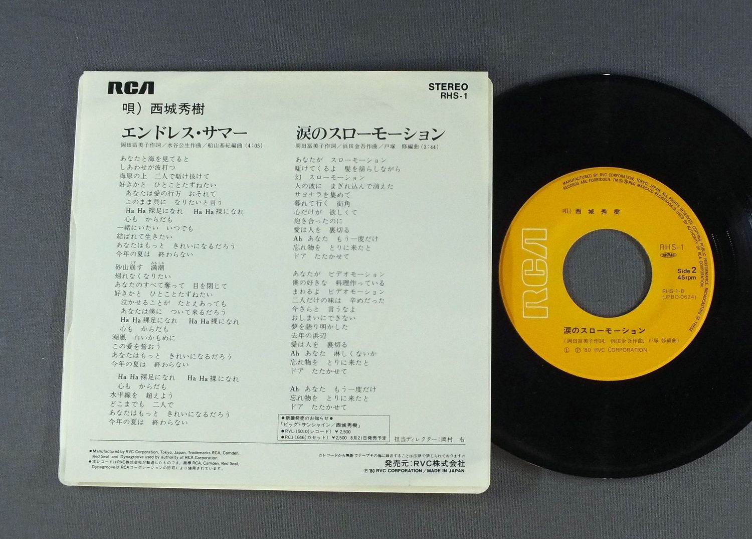 HIDEKI SAIJO西城秀樹/ENDLESS SUMMERエンドレス・サマー RHS1 製造国:日本盤 / Media:7inch外観:EX盤の状態:EX+ 価格(税込):¥550 送料 7inch:定形外郵便 360円~LP:定形外郵便 660円~送料は、注文の最終画面で確認頂けます。 > > HIDEKI SAIJO/ENDLESS SUMMER 外観 (EX)特記事項:特記事項無。コンディションリストを参照。外観EXの共通説明:ダメージが限定的。中古品としては保存状態がよい方。シミ、ヨゴレ、スレ 少し~軽度。 盤の状態 (EX+)特記事項:薄いスリキズ・スレ少し。一見してきれいな状態です。盤EX+の共通説明:盤面の極薄いスリキズ、スレ少し程度 音に出そうなものは無いように見える(極軽微なソフトティック音は除く)。 Tweet それぞれの画像をクリックすると、大きい写真が見られます こちらの商品もお勧めです 770円 NOBODYノーバディ / RESTLESS HEARTレストレス・ハート 880円 YOUSUI INOUE井上陽水 / NO INVITATION SHOW招待状のないショー 1,320円 BOROボロ / COMING SOON 1,210円 KOUZO MURAKI村下孝蔵 / YUME NO ATO夢の跡 550円 MIKI ASAKURA麻倉未稀 / ROMANCEロマンス 770円 HIROMI IWASAKI岩崎宏美 / AOZORAあおぞら 1,320円 NOA HORIGUCHI堀口ノア / NOA 770円 VARIOUS JAPANESE POPSキング・レコード邦楽 / NOW HIT NOW ( NOW - サルビアの花)ナウ・ヒット・ナウ ( NOW - サルビアの花 収録)