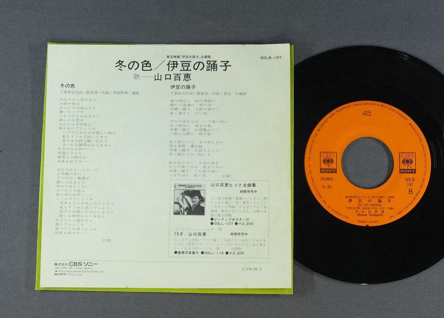 MOMOE YAMAGUCHI山口百恵/FUYU NO IRO冬の色 SOLB197 製造国:日本盤 / Media:7inch外観:EX盤の状態:EX 価格(税込):¥550 送料 7inch:定形外郵便 360円~LP:定形外郵便 660円~送料は、注文の最終画面で確認頂けます。 > > MOMOE YAMAGUCHI/FUYU NO IRO 外観 (EX)特記事項:特記事項無。コンディションリストを参照。外観EXの共通説明:ダメージが限定的。中古品としては保存状態がよい方。シミ、ヨゴレ、スレ 少し~軽度。 盤の状態 (EX)特記事項:薄いスリキズ・スレ軽くある感じ。軽微なものの様子です。盤EXの共通説明:盤面のスリキズが薄いものが少し~軽度 音に出そうなものは無いように見える(軽微なソフトティック音は除く)。 Tweet それぞれの画像をクリックすると、大きい写真が見られます こちらの商品もお勧めです 1,320円 ONYANKO CLUBおニャン子クラブ / MERRY X`MAS FOR YOU PIC DISCメリー・クリスマス・フォー・ユー 660円 YUKO ISHIKAWA石川優子 / SENTIMENTAL ROADセンチメンタル・ロード 880円 MOMOE YAMAGUCHI山口百恵 / 16s THEME16才のテーマ 880円 MAKO ISHINO石野真子 / MAKO2 990円 PINK LADYピンク・レディー / BYE BYE CARNIVALバイ・バイ・カーニバル 880円 SONOKO KAWAI河合その子 / SONOKOその子 1,210円 PINK LADYピンク・レディー / `78 JUMPING SUMMER CARNIVAL`78 ジャンピング・サマー・カーニバル 1,210円 MOMOE YAMAGUCH山口百恵 / MOBIUS`S GAMEメビウス・ゲーム