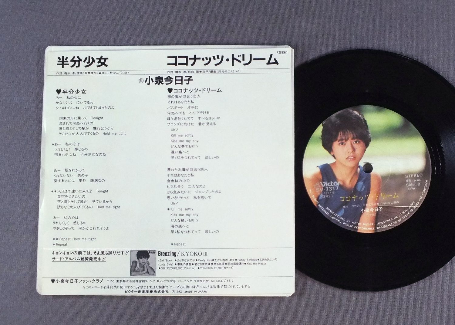 KYOKO KOIZUMI小泉今日子/HANBUN SHOJO半分少女 SV7317 製造国:日本盤 / Media:7inch外観:EX盤の状態:EX- 価格(税込):¥550 送料 7inch:定形外郵便 360円~LP:定形外郵便 660円~送料は、注文の最終画面で確認頂けます。 > > KYOKO KOIZUMI/HANBUN SHOJO 外観 (EX)特記事項:特記事項無。コンディションリストを参照。外観EXの共通説明:ダメージが限定的。中古品としては保存状態がよい方。シミ、ヨゴレ、スレ 少し~軽度。 盤の状態 (EX-)特記事項:薄いスリキズ・細かい表面スレ多少ある感じ。殆どが軽微なものの様子です。盤EX-の共通説明:盤面のスリキズが多少有り。音に出そうなものは殆ど無いように見える~さほど気にならないぐらいの軽いプチ数カ所程度。 Tweet それぞれの画像をクリックすると、大きい写真が見られます こちらの商品もお勧めです 1,210円 PINK LADYピンク・レディー / AMERICA ! AMERICA ! AMERICA !アメリカ!アメリカ!アメリカ! 1,320円 YOSHIMI IWASAKI岩崎良美 / RING-A-DING (1st ALBUM)リング・ア・ディング (1st ALBUM) 660円 TOSHIRO OHMI近江俊郎 / BEST COLLECTION懐かしの歌声デラックス 湯の町エレジー 1,210円 SONOKO KAWAI河合その子 / SIESTAシエスタ 990円 PINK LADYピンク・レディー / CHALLENGE CONCERTチャレンジ・コンサート 990円 YOU HAYAMI早見優 / RECESSリーセス 660円 YUKO ISHIKAWA石川優子 / SENTIMENTAL ROADセンチメンタル・ロード 770円 ERI NITTA新田恵利 / ERI