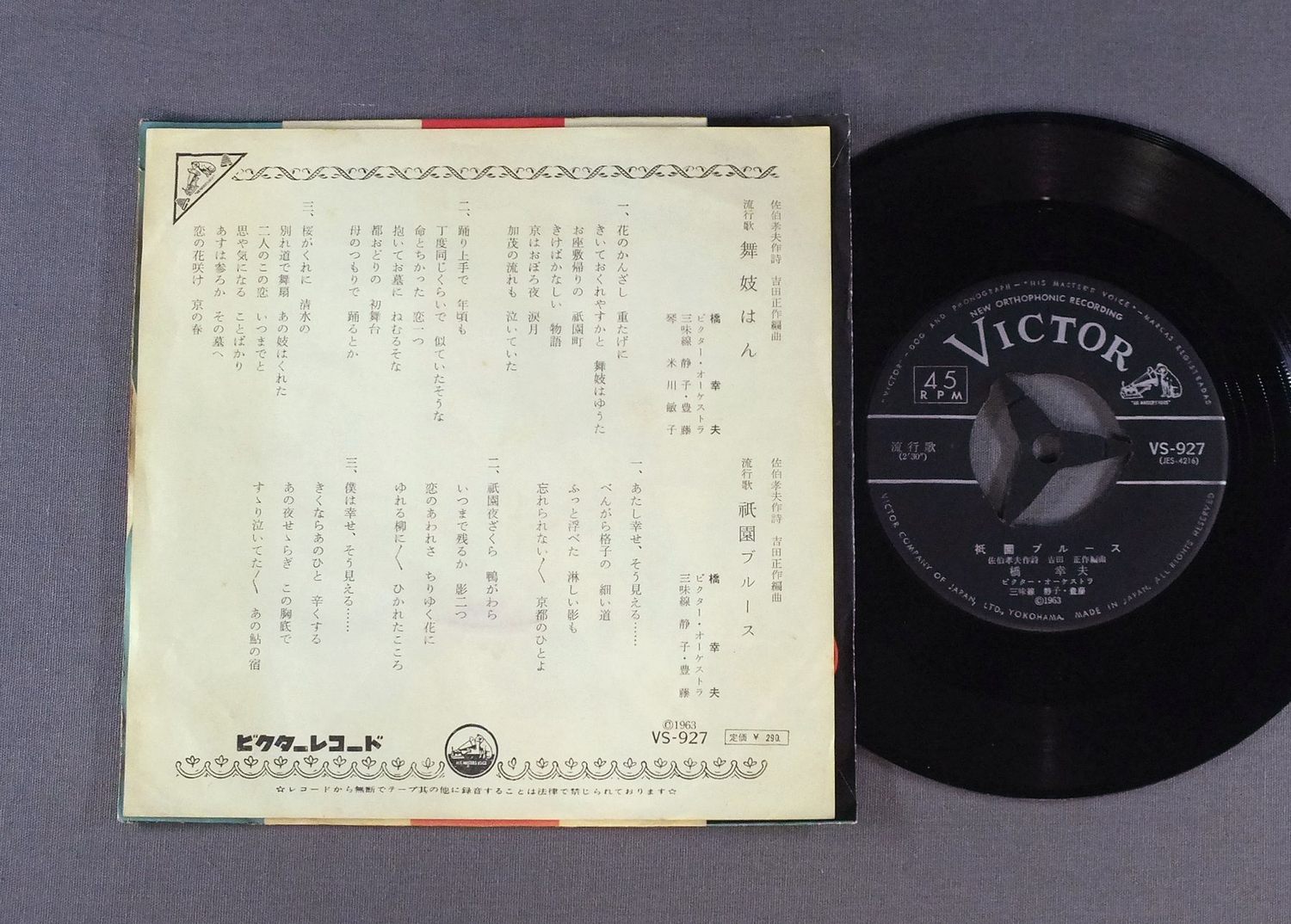 YUKIO HASHI橋幸夫/MAIKOHAN舞妓はん VS927 製造国:日本盤 / Media:7inch外観:EX盤の状態:EX- 価格(税込):¥880 送料 7inch:定形外郵便 360円~LP:定形外郵便 660円~送料は、注文の最終画面で確認頂けます。 > > YUKIO HASHI/MAIKOHAN 外観 (EX)特記事項:よごれやシミ有。外観EXの共通説明:ダメージが限定的。中古品としては保存状態がよい方。シミ、ヨゴレ、スレ 少し~軽度。 盤の状態 (EX-)特記事項:薄いスリキズ・細かい表面スレ多少ある感じ。殆どが軽微なものの様子です。盤EX-の共通説明:盤面のスリキズが多少有り。音に出そうなものは殆ど無いように見える~さほど気にならないぐらいの軽いプチ数カ所程度。 Tweet それぞれの画像をクリックすると、大きい写真が見られます こちらの商品もお勧めです 880円 YUKIO HASHI橋幸夫 / FROM ITAKOGASA TO MUHYO黄金の声/潮来笠から霧氷まで 1,210円 KEIICHIRO AKAGI赤木圭一郎 / EIEN-NO-TONY永遠のトニー 赤木圭一郎絶唱集 770円 YUJIRO ISHIHARA石原裕次郎 / YUJIRO ISHIHARA ORIGINAL BEST石原裕次郎オリジナルベスト 880円 上原敏 / ポリドール(SP原盤)シリーズ -第6集- 哀愁の抒情・マドロス歌謡 990円 YOSHIO TABATA田端義夫 / SHIMA SODACHI島育ち 660円 KOJO TSURUTA鶴田浩二 / RED AND BLACK BLUES赤と黒のブルース 880円 上原敏 / 憶い出の任侠・時代歌謡-ポリドール SP原盤 シリーズ 880円 村田英雄-青山和子-安達明 他 / コロムビア歌のハイライト (第五集)