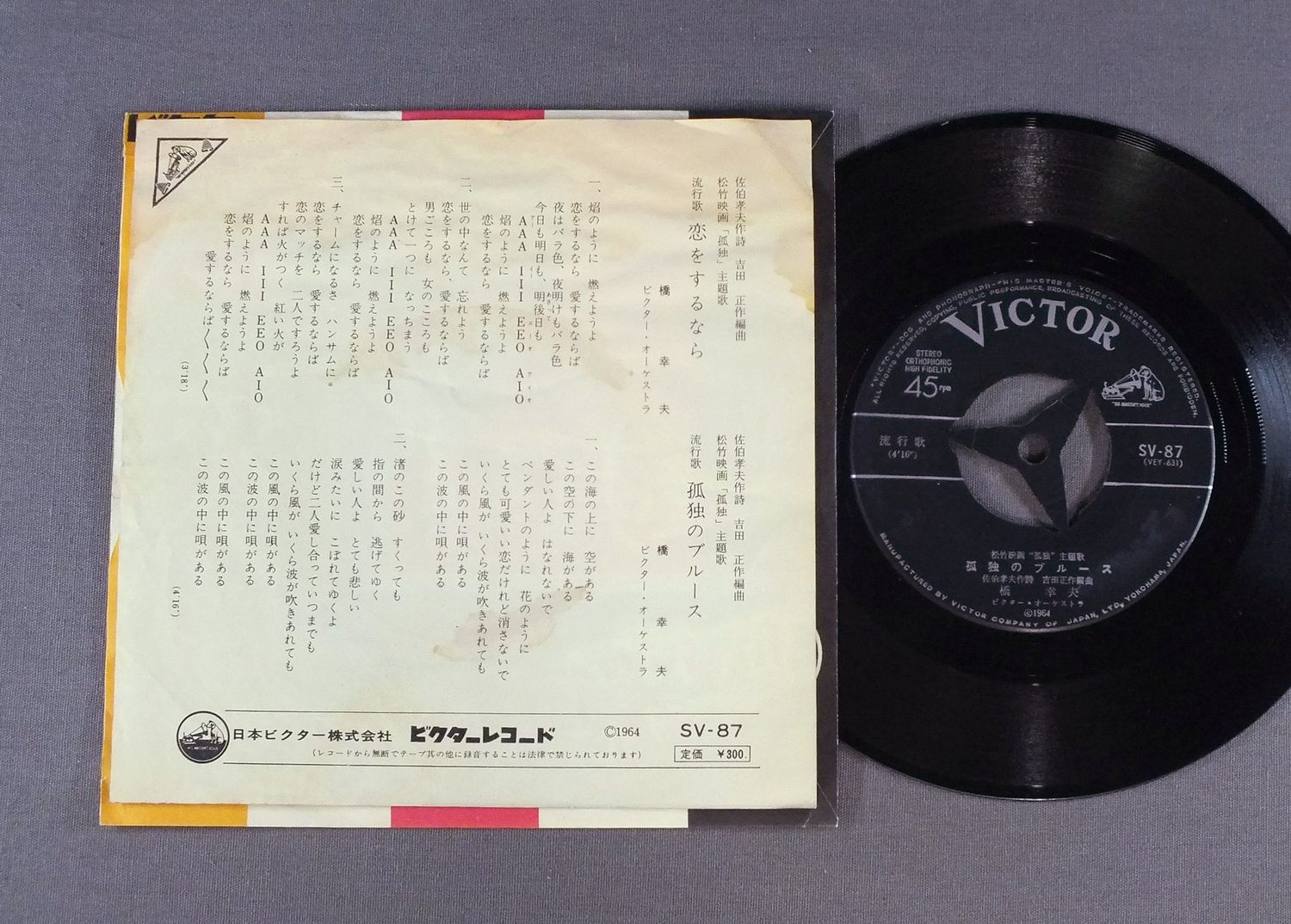 YUKIO HASHI橋幸夫/KOI O SURUNARA恋をするなら SV87 製造国:日本盤 / Media:7inch外観:VG盤の状態:EX- 価格(税込):¥770 送料 7inch:定形外郵便 360円~LP:定形外郵便 660円~送料は、注文の最終画面で確認頂けます。 レコード検索 > J-POP > YUKIO HASHI/KOI O SURUNARA 外観 (VG)特記事項:ウォーターダメージ有。ヨレやシミ有。外観VGの共通説明:ダメージが見るからに多い。 盤の状態 (EX-)特記事項:薄いスリキズ・細かい表面スレ多少ある感じです。プチ出そうな所は少し。軽微なものが中心の様子です。盤EX-の共通説明:盤面のスリキズが多少有り。音に出そうなものは殆ど無いように見える~さほど気にならないぐらいの軽いプチ数カ所程度。 Tweet それぞれの画像をクリックすると、大きい写真が見られます こちらの商品もお勧めです 880円 上原敏 / 憶い出の任侠・時代歌謡-ポリドール SP原盤 シリーズ 990円 YOSHIO TABATA田端義夫 / SHIMA SODACHI島育ち 660円 MISAO MATSUBARA松原操 / COLLECTION VOL2第ニ集-浮草の唄 880円 上原敏 / ポリドール(SP原盤)シリーズ -第6集- 哀愁の抒情・マドロス歌謡 550円 HISAO ITO伊藤久男 / BEST ALBUM懐しの歌声 伊藤久男と共に 880円 TOSHIRO OKAMOTO岡本敦朗 / SHIROI HANA NO SAKUKORO白い花の咲く頃 1,210円 高峰秀子-橋幸夫 他 / 続 日本流行歌史 1,210円 HACHIRO KASUGA春日八郎 / HACHIRO KASUGA HIT ALBUM春日八郎 -魅力のすべて-