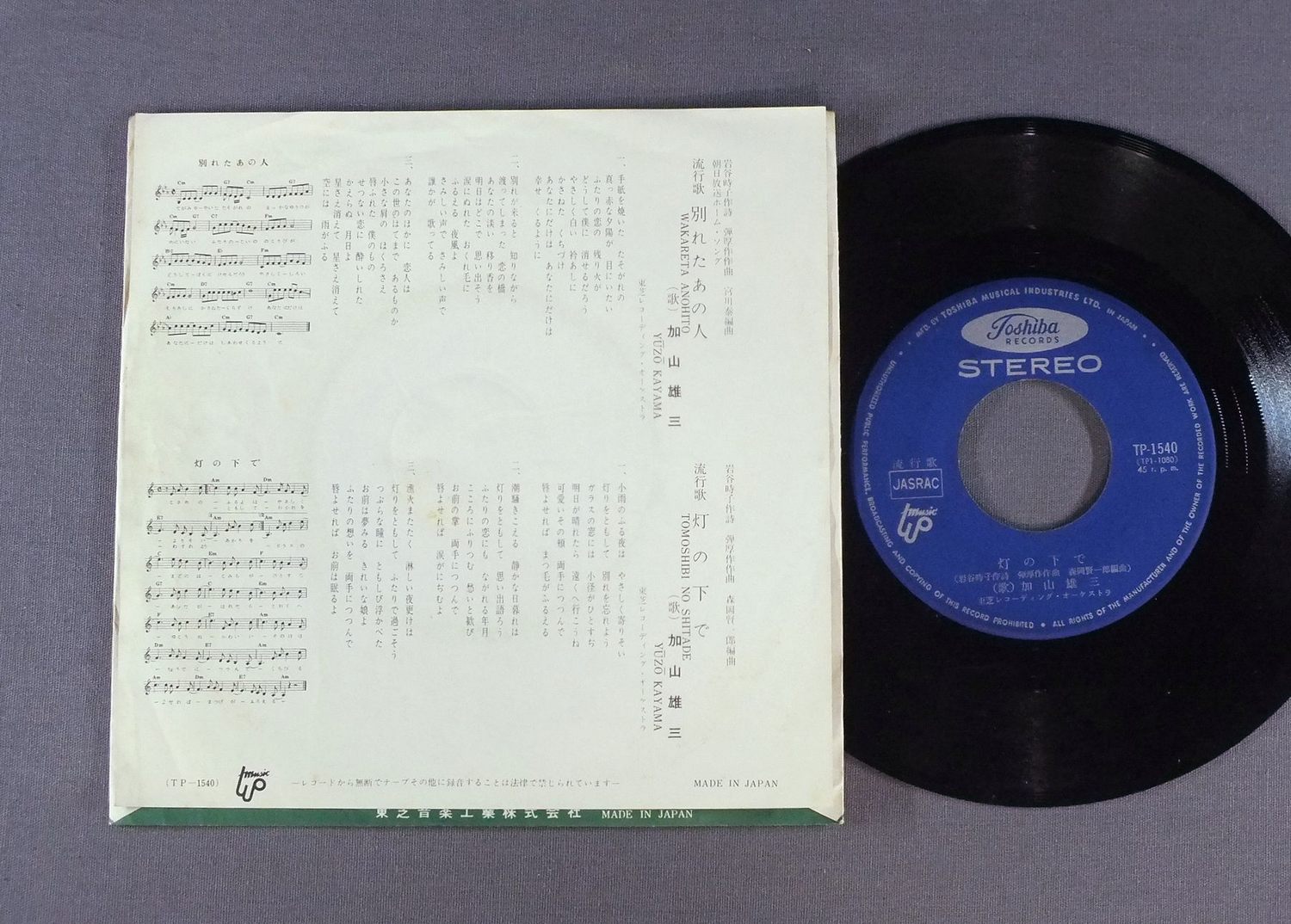 YUZO KAYAMA加山雄三/WAKARETA ANOHITO別れたあの人 TP1540 製造国:日本盤 / Media:7inch外観:EX-盤の状態:VG+ 価格(税込):¥660 送料 7inch:定形外郵便 360円~LP:定形外郵便 660円~送料は、注文の最終画面で確認頂けます。 > > YUZO KAYAMA/WAKARETA ANOHITO 外観 (EX-)特記事項:ヨレ有り。裏側にシミ。外観EX-の共通説明:ダメージ軽度~多少。 中古品としては普通の状態。シミ、ヨゴレ、スレなど軽く~多少。 盤の状態 (VG+)特記事項:薄いスリキズ・細かいスレ多少。周期的にプチ出そうな小キズ、線キズも有ります。少し聴いてみましたが、音自体はしっかりクリアーに鳴っているようでした。盤VG+の共通説明:盤面にスリキズが多少~やや有り、音に出そうなものも多少ある。 Tweet それぞれの画像をクリックすると、大きい写真が見られます こちらの商品もお勧めです 770円 TULIPチューリップ / NEW TUNE 770円 YUMI MATSUTOYA松任谷由実 / DA・DI・DA 1,320円 JUN MAYUZUMI -TOMOKO OGAWA - CHIYO OKUMURA黛ジュン-小川知子-奥村チヨ / VOL2第二集 715円 TAKURO YOSHIDA吉田拓郎 / OHINARU HITO大いなる人 1,210円 HIROMI OHTA太田裕美 / TEDUKURI NO GASHUU手作りの画集 770円 MIYUKI NAKAJIMA中島みゆき / OAKERINASAIおかえりなさい 1,650円 YUMI ARAI etc荒井由実他 / YUMING SUMMER SONG BOOKユーミン・サマー・ソング・ブック 1,320円 TULIPチューリップ / LIVE THE 1000thライブ THE 1000th