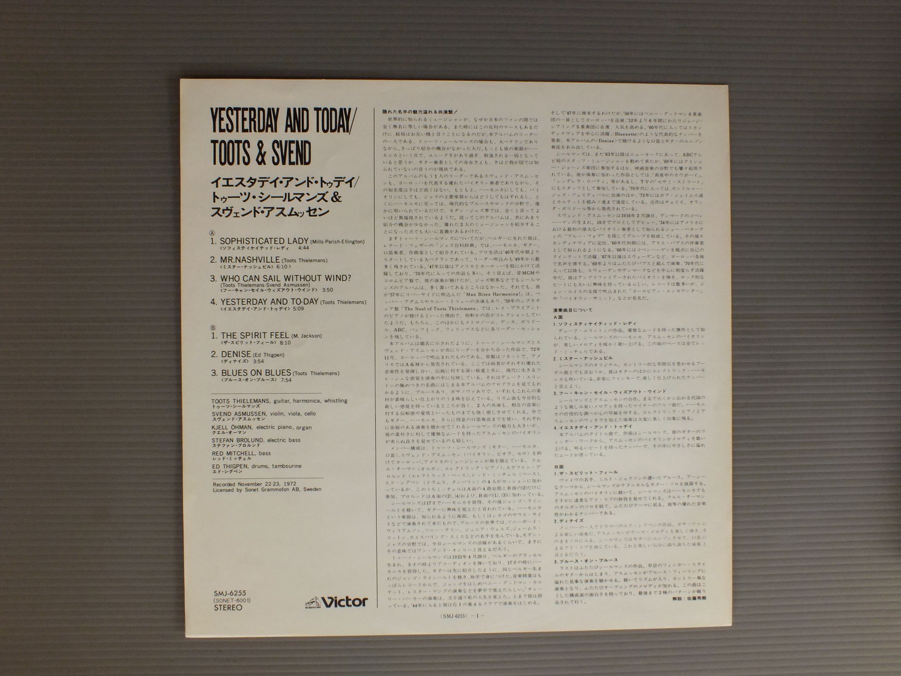 TOOTS THIELEMANS & SVEND ASMUSSENトゥーツ・シールマンズ & スヴェンド・アスムッセン/YESTERDAY & TODAYイエスタディ・アンド・トゥディ SMJ6255 製造国:日本盤 / Media:LP外観:EX-盤の状態:EX+ 価格(税込):¥1,155(売約済) 送料 7inch:定形外郵便 360円~LP:定形外郵便 660円~送料は、注文の最終画面で確認頂けます。 レコード検索 > 全てのジャンル > TOOTS THIELEMANS & SVEND ASMUSSEN/YESTERDAY & TODAY 外観 (EX-)特記事項:表ジャケにシミ有り。外観EX-の共通説明:ダメージ軽度~多少。 中古品としては普通の状態。シミ、ヨゴレ、スレなど軽く~多少。 盤の状態 (EX+)特記事項:薄いスリキズ・スレ少し。一見してきれいな状態です。盤EX+の共通説明:盤面の極薄いスリキズ、スレ少し程度 音に出そうなものは無いように見える(極軽微なソフトティック音は除く)。 Tweet それぞれの画像をクリックすると、大きい写真が見られます こちらの商品もお勧めです 1,210円 ERIC DOLPHYエリック・ドルフィー / AT THE FIVE SPOTアット・ザ・5・スポットVOL2 1,320円 HERBIE MANNハービー・マン楽団 / ST.THOMAS 60s ISSUEセント・トーマス ペラジャケ 1,320円 QUINCY JONESクィンシー・ジョーンズ / THIS IS HOW I FEEL ABOUT JAZZ私の考えるジャズ 770円 MIKE ELLIS / WHAT ELSE IS NEW? 1,210円 FLETCHER HENDERSON & HIS ORCHESTRAフレッチャー・ヘンダーソン / FIRST IMPRESSIONS VOL1 (1924-1931)ファースト・インプレッションズ VOL1 (1924-1931) 1,210円 JOHN KLEMMERジョン・クレマー / MAGNIFICENT MADNESSマグニフィセント・マッドネス 990円 FORCEフォース / SECOND FORCEセカンド・フォース 770円 RON CARTERロン・カーター / ANYTHING GOESエニシング・ゴーズ