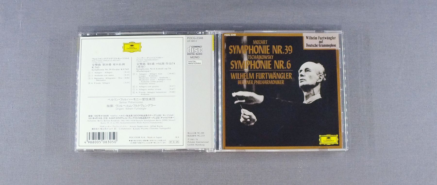 FURTWANGLERフルトヴェングラー/MOZART-SYM. NR39-TCHAIKOWSKY- SYM. NR6モーツァルト-交響曲 第39番-チャイコフスキー-交響曲 第6番 POCG2348 製造国:日本盤 / Media:CD外観:EX盤の状態:EX- 価格(税込):¥880 送料 7inch:定形外郵便 360円~LP:定形外郵便 660円~送料は、注文の最終画面で確認頂けます。 > > FURTWANGLER/MOZART-SYM. NR39-TCHAIKOWSKY- SYM. NR6 外観 (EX)特記事項:ブックレット裏表紙によごれ少し有り。ケース底のカードにシミがすこし。外観EXの共通説明:ダメージが限定的。中古品としては保存状態がよい方。シミ、ヨゴレ、スレ 少し~軽度。 盤の状態 (EX-)特記事項:薄いスリキズが少しありますが、全体的には多くは無いです。微細な感じなものが中心。盤EX-の共通説明:盤面のスリキズが多少有り。音に出そうなものは殆ど無いように見える~さほど気にならないぐらいの軽いプチ数カ所程度。 Tweet それぞれの画像をクリックすると、大きい写真が見られます こちらの商品もお勧めです 1,540円 ASHKENAZY - SOLTI - CHICAGO SYMPHONY ORCHESTRAアシュケナージ - ショルティ - シカゴ交響楽団 / BEETHOVEN - PIANO CONCERTO NO3ベートーヴェン - ピアノ協奏曲第3番 1,540円 WALTER - COLUMBIA SYMPHONY ORCHESTRAワルター - コロンビア交響楽団 / MAHLER - SYMPHONY NO1マーラー交響曲第1番 990円 STERN - ORMANDY - THE PHILADERPHIA ORCH.スターン - オーマンディ - フィラデルフィア管弦楽団 / BRAHMS - VIOLIN CONCERTOブラームス - ヴァイオリン協奏曲 1,760円 FLAMIG - DRESDNER PHILHARMONIEフレーミッヒ - ドレスデン・フィルハーモニー / BACH - MESSEN バッハ - ミサ曲 1,650円 KRAJAN + PHILHARMONIA ORCHESTRA / STEREO SHOWPIECIES FOR ORCHESTRA 3 LP BOX SET 1,760円 RICHTER - KARAJAN - WIENNA PHILHARMONICリヒター - カラヤン - ウィーン・フィル / TCHAIKOVSKY - CONCERT NO1 FOR PIANO AND ORCHESTRAチャイコフスキー - ピアノとオーケストラのための協奏曲第1番 990円 WEISSSENBERG - GIULINI - WIENER SYMPHONYワイセンベルク - ジュリーニ - ウィーン交響楽団 / MOZART - PIANO CINCERTO NO.9モーツァルト - ピアノ協奏曲第9番 990円 WIENNA PHILHARMONIC WIND GROUPウィーン・フィルハーモニー管弦楽団グループ / MOZART - DIVERTOMENTO モーツァルト - 喜遊曲