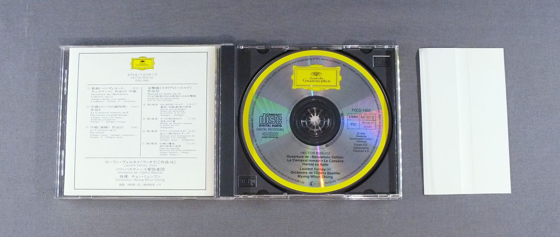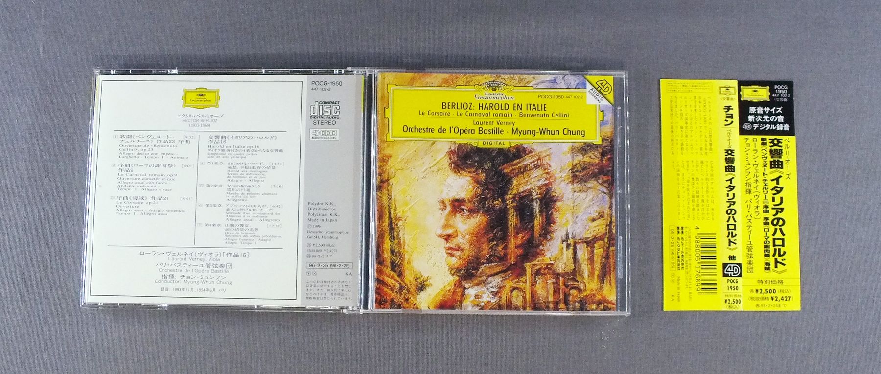 MYUNG-WHUN CHUNG -VERNEYチョン・ミュンフン-ヴェルネイ/BERLIOZ-HAROLD IN ITALY 3 OVERTURESベルリオーズ-イタリアのハロルド -ヴィオラ独奏付き POCG1950 製造国:日本盤 / Media:CD外観:EX+盤の状態:EX+帯:EX+ 価格(税込):¥1,320 送料 7inch:定形外郵便 360円~LP:定形外郵便 660円~送料は、注文の最終画面で確認頂けます。 > > MYUNG-WHUN CHUNG -VERNEY/BERLIOZ-HAROLD IN ITALY 3 OVERTURES 外観 (EX+)特記事項:特記事項無し。コンディションリストを参照下さい。外観EX+の共通説明:中古としては美品、一見してきれいでダメージが軽微。シミ、ヨゴレ、スレ有っても僅か~少し。 盤の状態 (EX+)特記事項:薄いスリキズ・スレ少し。一見してきれいな状態です。盤EX+の共通説明:盤面の極薄いスリキズ、スレ少し程度 音に出そうなものは無いように見える(極軽微なソフトティック音は除く)。 帯の状態 (EX+):特記事項無し。コンディションリストを参照下さい。 Tweet それぞれの画像をクリックすると、大きい写真が見られます こちらの商品もお勧めです 1,540円 ABBADO - VIENER PHILHARMONIKERアバド - ウィーン・フィル / BRAHMS - HANGARIAN DANCESブラームス - ハンガリア舞曲 990円 WIENNA PHILHARMONIC WIND GROUPウィーン・フィルハーモニー管弦楽団グループ / MOZART - DIVERTOMENTO モーツァルト - 喜遊曲 2,420円 HIROYUKI IWAKI - THE NHK SYMPHONY ORCHESTRA岩城宏之 - NHK交響楽団 / TOSHIRO MAYUZUMI - BUGAKU黛 敏郎 - バレエ音楽`舞楽` 1,540円 ASHKENAZY - SOLTI - CHICAGO SYMPHONY ORCHESTRAアシュケナージ - ショルティ - シカゴ交響楽団 / BEETHOVEN - PIANO CONCERTO NO3ベートーヴェン - ピアノ協奏曲第3番 1,100円 BOULT他 / MAHLER 9 SYMPHONIES 12 LP BOX 1,540円 BOHM - BERLINER PHILHARMONIKERベーム - ベルリン・フィル / MOZART - SINFONIE CONCERTANTI KV364&297モーツアルト協奏交響曲KV364&297 990円 STERN - ORMANDY - THE PHILADERPHIA ORCH.スターン - オーマンディ - フィラデルフィア管弦楽団 / BRAHMS - VIOLIN CONCERTOブラームス - ヴァイオリン協奏曲 1,760円 BOHM - WIENER PHILHARMONIKERボーム - ウィーン・フィル / BEETHOVEN - SYMPHONY NO9 2LP BOXベートーヴェン交響曲第9番 2枚組