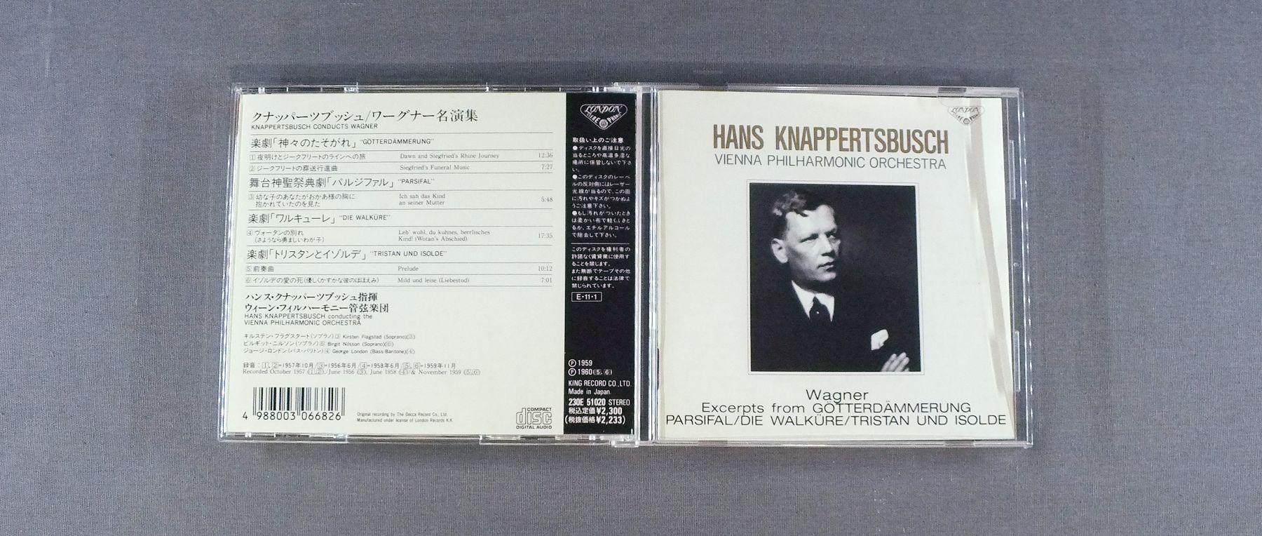 KNAPPERTSBUSCHクナッパーツブッシュ/KNAPPERTSBUSCH CONDUCTS WAGNERクナッパーツブッシュ-ワーグナー名演集 230E51020 製造国:日本盤 / Media:CD外観:EX-盤の状態:EX 価格(税込):¥825 送料 7inch:定形外郵便 360円~LP:定形外郵便 660円~送料は、注文の最終画面で確認頂けます。 > > KNAPPERTSBUSCH/KNAPPERTSBUSCH CONDUCTS WAGNER 外観 (EX-)特記事項:ブックレット裏表紙、中のページにシミ有り。外観EX-の共通説明:ダメージ軽度~多少。 中古品としては普通の状態。シミ、ヨゴレ、スレなど軽く~多少。 盤の状態 (EX)特記事項:薄いスリキズ・スレ軽くある感じ。軽微なものの様子です。盤EXの共通説明:盤面のスリキズが薄いものが少し~軽度 音に出そうなものは無いように見える(軽微なソフトティック音は除く)。 Tweet それぞれの画像をクリックすると、大きい写真が見られます こちらの商品もお勧めです 1,650円 KRAJAN + PHILHARMONIA ORCHESTRA / STEREO SHOWPIECIES FOR ORCHESTRA 3 LP BOX SET 1,760円 BOHM - WIENER PHILHARMONIKERボーム - ウィーン・フィル / BEETHOVEN - SYMPHONY NO9 2LP BOXベートーヴェン交響曲第9番 2枚組 1,540円 BOHM - BERLINER PHILHARMONIKERベーム - ベルリン・フィル / SCHUBERT - SYMPHONIEN NR.5シューベルト交響曲第5番 1,760円 KARAJAN - BERLINER PHILHARMONIKERカラヤン - ベルリン・フィル / HAYDN - THE CREATION 2LP BOXハイドン - 天地創造 2枚組 990円 SCHURICHT - VIENNA PHILHARMONIC ORCHESTRAシューリヒト - ウィーン・フィルハーモニー管弦楽団 / BRUCKNER - SYMPHONY NO9ブルックナー - 交響曲第9番 990円 STERN - ORMANDY - THE PHILADERPHIA ORCH.スターン - オーマンディ - フィラデルフィア管弦楽団 / BRAHMS - VIOLIN CONCERTOブラームス - ヴァイオリン協奏曲 1,540円 ASHKENAZY - SOLTI - CHICAGO SYMPHONY ORCHESTRAアシュケナージ - ショルティ - シカゴ交響楽団 / BEETHOVEN - PIANO CONCERTO NO3ベートーヴェン - ピアノ協奏曲第3番 1,540円 WALTER - COLUMBIA SYMPHONY ORCHESTRAワルター - コロンビア交響楽団 / MAHLER - SYMPHONY NO1マーラー交響曲第1番