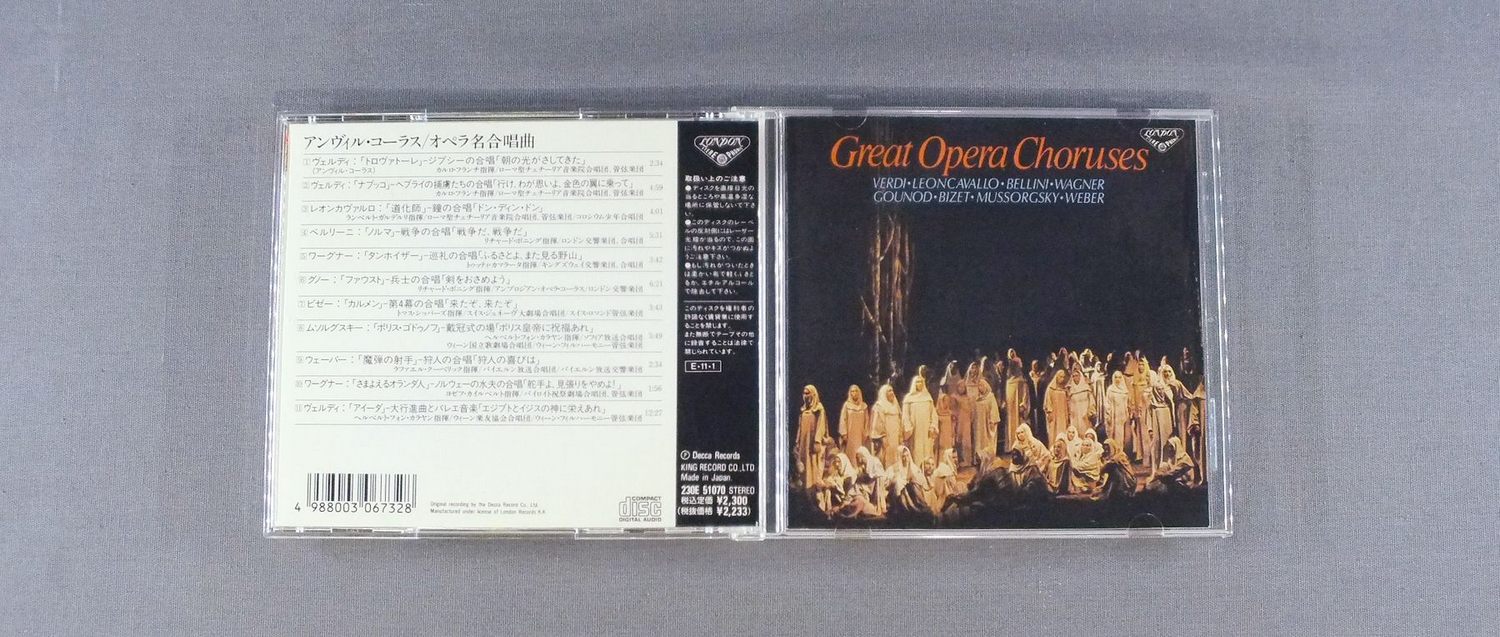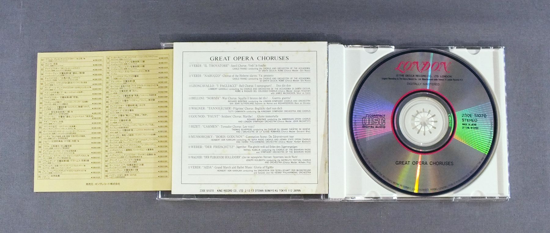 KARAJAN etcカラヤン 他/GREAT OPERA CHORUSESアンヴィル・コーラス-オペラ名合唱曲 230E51070 製造国:日本盤 / Media:CD外観:VG+盤の状態:EX 価格(税込):¥1,045 送料 7inch:定形外郵便 360円~LP:定形外郵便 660円~送料は、注文の最終画面で確認頂けます。 > > KARAJAN etc/GREAT OPERA CHORUSES 外観 (VG+)特記事項:ブックレット裏表紙、中のページにシミ有り。外観VG+の共通説明:ダメージやや有り。シミ、ヨゴレ、スレなど多少~やや多め。 盤の状態 (EX)特記事項:薄いスリキズ・スレ少しある感じ。一見してきれいな感じです。盤EXの共通説明:盤面のスリキズが薄いものが少し~軽度 音に出そうなものは無いように見える(軽微なソフトティック音は除く)。 Tweet それぞれの画像をクリックすると、大きい写真が見られます こちらの商品もお勧めです 1,540円 FISCHER DIESKAU - ESCHENBACHフィッシャーディスカウ - エッシェンバッハ / SCHUMANN - LIEDERシューマン歌曲集 1,320円 KUNZ - PAULIK - WIENNA STATE OPERA ORCHESTRA & CHORUSクンツ - パウリク - ウィーン国立歌劇場管弦楽団・合唱団 / ERICH KUNZ SINGS GERMAN UNIVERSITY SONGSドイツ学生の歌 1,320円 BRUNO TURNER - ENSEMBLE PRO CANTIONE ANTIQUA LONDONブルーニ・ターナー - プロ・カンツォーネ・アンティカ / ORLANDO DI LASSO - REQUIEMオルランド・ディ・ラッソ - レクイエム 1,540円 HERMANN PREY - BERNHARD KLEEヘルマン・プレイ&ベルナルト・クレー / MOZART - LIEDERモーツアルト歌曲集 2,420円 LILY PONSリリー・ポンス / LILY PONS GALA 1,540円 CHIHIRO BAMBA - MARCELLE DEDIEU VIDAL番場ちひろ - マルセル・ドデュー=ヴィダル / LE BEL CANTO EN ITALIE AU TEMPS DE STENDHAL 990円 BORIS CHRISTOFF - FEODOR POTORJINSKI RUSSIAN CHOIRボリス・クリストフ - ポトルジンスキー・ロシア合唱団 / RUSSIAN FOLK SONGS AND SACRED MUSICロシア民謡集 2,090円 DIESKAU - SAWALLISCHディースカウ - サヴァリッシュ / R.STRAUSS - LIEDER 3LP BOXR.シュトラウス - 歌曲集 3枚組