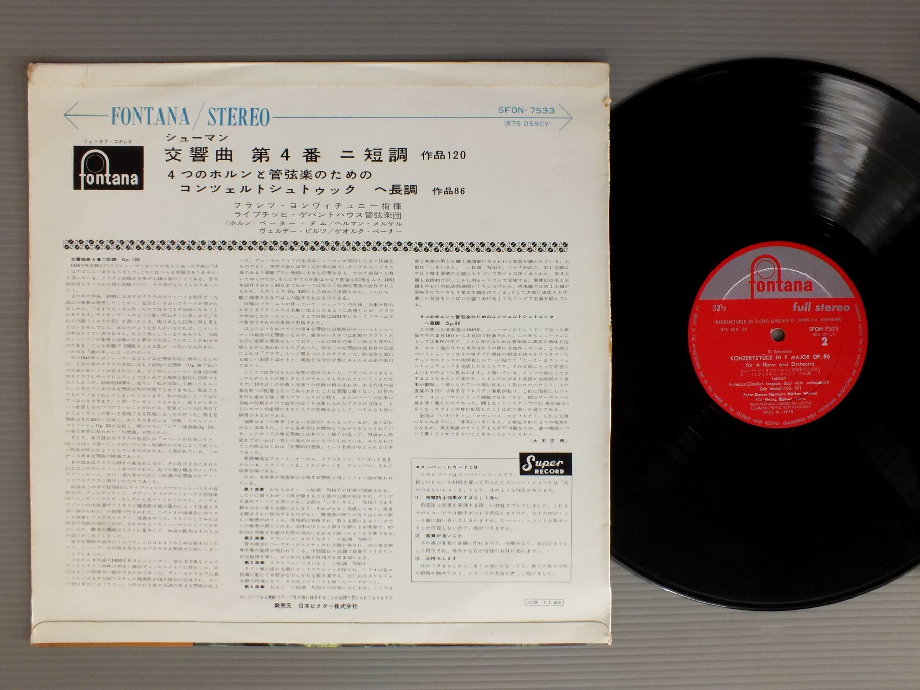 FRANZ KONWITSCHNYフランツ・コンヴィチュニー/SCHUMANN-SYM. NO4-KONZERTSTUCK OP86シューマン-交響曲 第4番-4つのホルンと管弦楽のためのコンツェルトシュトゥック SFON7533 製造国:日本盤 / Media:LP盤の状態:EX- 価格(税込):¥792(売約済) 送料 7inch:定形外郵便 360円~LP:定形外郵便 660円~送料は、注文の最終画面で確認頂けます。 > > FRANZ KONWITSCHNY/SCHUMANN-SYM. NO4-KONZERTSTUCK OP86 盤の状態 (EX-)特記事項:薄いスリキズ・細かい表面スレ軽くある感じ。全体的には殆どが軽微なものの様子です。盤EX-の共通説明:盤面のスリキズが多少有り。音に出そうなものは殆ど無いように見える~さほど気にならないぐらいの軽いプチ数カ所程度。 その他:ペラジャケ Tweet それぞれの画像をクリックすると、大きい写真が見られます こちらの商品もお勧めです 990円 KARAJAN - BERLINER PHIL.カラヤン - ベルリン・フィル / BEETHOVEN - SYM. NO3 EROICAベートーヴェン - 交響曲第3番 1,320円 BOHMベーム / BRAHMS SYM.ブラームス 交響曲第1番 990円 KARAJAN-BOHM etcカラヤン-ベーム 他 / R.STRAUSS-EIN HELDEN LEBENR.シュトラウス-交響詩 英雄の生涯-交響詩 ツァラトゥストラはかく語りき 990円 GRUMIAUX - ROSENTHAL - CONCERTS LAMOUREUX ORCHグリュミオー - ロザンタール - コンセール・ラムール管弦楽団 / SAINT-SAENS - VIOLIN CONC.サン・サース - ヴァイオリン協奏曲他 990円 ROSTROPOVICH - ROZHDESTVENSKY - LENINGRAD PHIL.ロストロポーヴィチ / SCHUMANN - CELLO CONCERTOシューマン 協奏曲イ短調 990円 BOHMベーム / BEETHOVEN-SCHUBERT-SYM.S NOS8ベートーヴェン-交響曲 第8番 -シューベルト-交響曲第8番 1,320円 SOLTI - CHICAGO SYMPHONYショルティ - シカゴ交響楽団 / BEETHOVEN -SYMPHONY NO5ベルリオーズ交響曲第5番 990円 KARAJAN-GERD SEIFERTカラヤン-ザイフェルト / MOZART-CONC. FOR HORN&ORCH.モーツァルト-ホルン協奏曲集