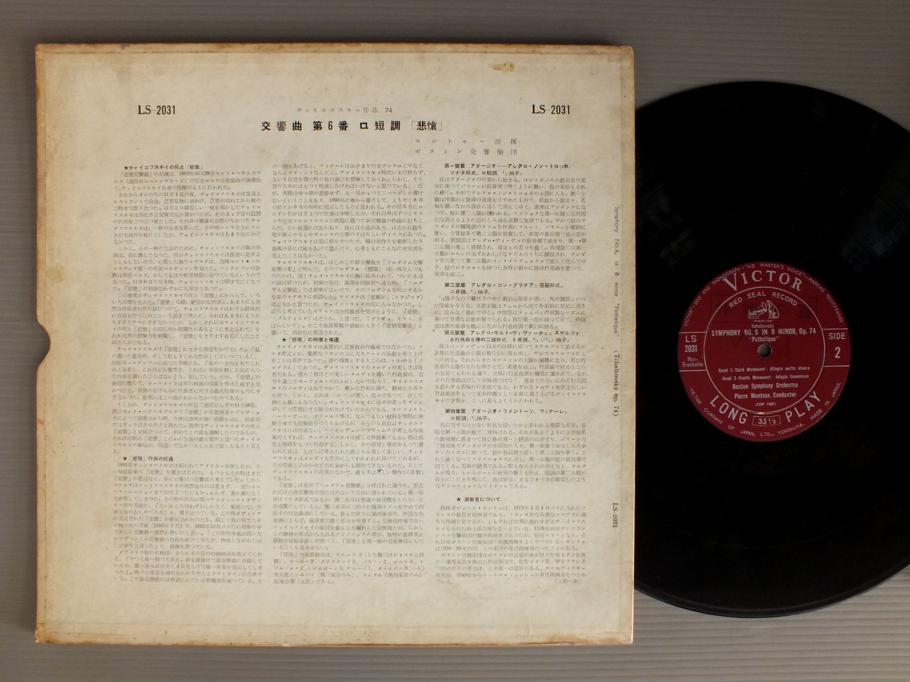 PIERRE MONTUXモントゥー/TCHAIKOVSKY-SYM. NO6 OP74 PATHETIQUEチャイコフスキー-交響曲 第6番 悲愴 LS2031 製造国:日本盤 / Media:LP外観:EX-盤の状態:EX- 価格(税込):¥856(売約済) 送料 7inch:定形外郵便 360円~LP:定形外郵便 660円~送料は、注文の最終画面で確認頂けます。 > > PIERRE MONTUX/TCHAIKOVSKY-SYM. NO6 OP74 PATHETIQUE 外観 (EX-)特記事項:背やヘリにテープ。ジャケ表面によごれやシミ有。外観EX-の共通説明:ダメージ軽度~多少。 中古品としては普通の状態。シミ、ヨゴレ、スレなど軽く~多少。 盤の状態 (EX-)特記事項:薄いスリキズ・細かい表面スレ多少ある感じです。プチ出そうな所は少し。軽微なものが中心の様子です。盤EX-の共通説明:盤面のスリキズが多少有り。音に出そうなものは殆ど無いように見える~さほど気にならないぐらいの軽いプチ数カ所程度。 Tweet それぞれの画像をクリックすると、大きい写真が見られます こちらの商品もお勧めです 1,386円 BACKHAUSバックハウス / CHOPIN - PIANO SONATA NO2ショパン - ピアノ奏鳴曲第2番 990円 JAMES GALWAY-RUDOLF BAUMGARTNERジェイムズ・ゴールウェイ-ルドルフ・バウムガルトナー / MOZART-DIE NKONZERTE KV 313-314-ANDANTEモーツァルト-フルート協奏曲 第1番-第2番-アンダンテ 990円 FRANZJOSEF MAIERフランツヨーゼフ・マイアー / MOZART-SYM. KV 550-KV319モーツァルト-交響曲第40・33番 990円 MUNCHシャルル・ミュンシュ / DEBUSSY-IBERIA-ALBENIZ-IBERIAドビュッシー-イベリア-アルベニス-イベリア 990円 MARTIONマルティノン / ADAM GIELLEアダム バレエ音楽 `ジゼル` 全曲 990円 ORMANDYオーマンディ / R. STRAUSS ALSO SPRACH ZARATHUSTRAR・シュトラウス 交響詩 `ツァラトゥストラはかく語りき` 1,540円 KARAJAN - BERLIN PHILHARMONICカラヤン - ベルリン・フィル / BALLET FROM OPERASオペラのバレエ音楽 990円 SLATKIN-SIEGELスラットキン-シーゲル / GERSHWIN ALL THE WORKS FOR ORCH.ガーシュウィン・協奏・管弦楽作品集 第1集