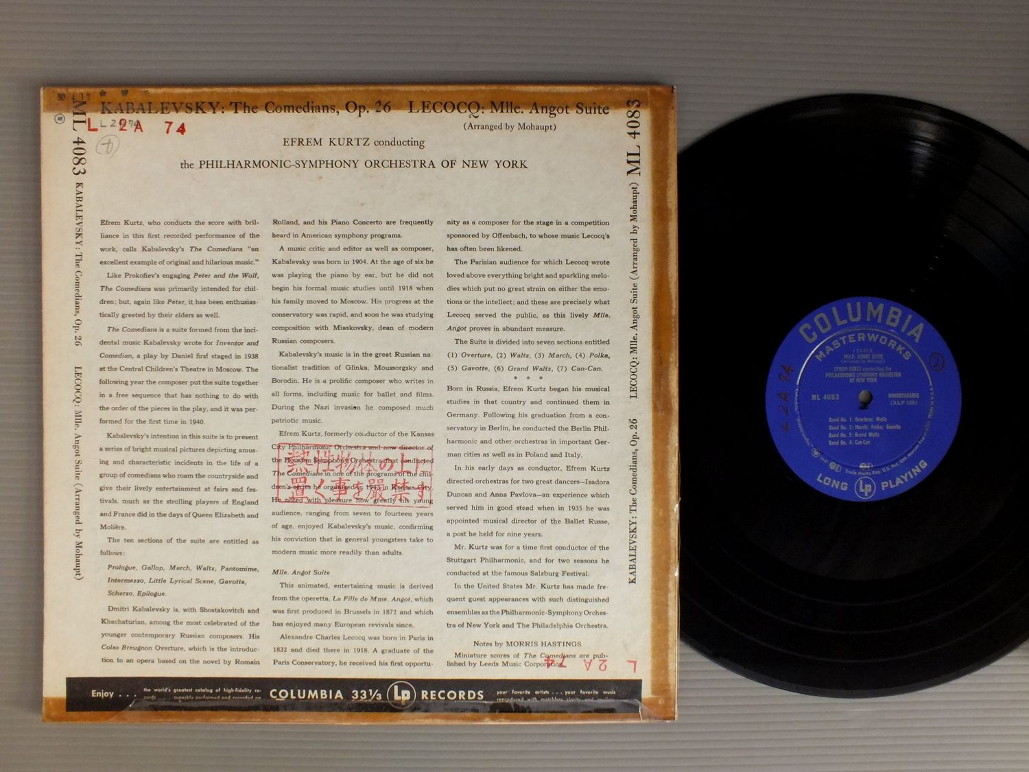EFREM KURTZ/KABALEVSKY-THE COMEDIANS OP26 ML4083 製造国:米国盤 / Media:LP外観:VG盤の状態:EX- 価格(税込):¥924(売約済) 送料 7inch:定形外郵便 360円~LP:定形外郵便 660円~送料は、注文の最終画面で確認頂けます。 > > EFREM KURTZ/KABALEVSKY-THE COMEDIANS OP26 外観 (VG)特記事項:背やヘリにテープ。ステッカーやスタンプ有り。外観VGの共通説明:ダメージが見るからに多い。 盤の状態 (EX-)特記事項:薄いスリキズ・細かい表面スレ多少ある感じです。プチ出そうな所は少し。軽微なものが中心の様子です。盤EX-の共通説明:盤面のスリキズが多少有り。音に出そうなものは殆ど無いように見える~さほど気にならないぐらいの軽いプチ数カ所程度。 Tweet それぞれの画像をクリックすると、大きい写真が見られます こちらの商品もお勧めです 990円 COLIN DAVIS / TIPPETT-SYM. NO3 990円 HELMUTH RILLING / DIE HIMMEL ERZAHLEN DIE EHRE GOTTES 1,430円 HORENSTEIN / STRAUSS -STRAVINSKY 990円 BERNSTEIN / NO13 COPLAND`S GREATEST HITS 990円 BAUMGARTNER / MOZART JUBILEE EDITION 1,650円 KEMPFF-KARL MUNCHINGER / MOZART-CONC. NO9-CONC. NO15 990円 OISTRAKH - MATACIC - LONDON SYM. ORCH / BRUCH - CONC. PER VIOLINO 990円 TIBOR SZOKE / SUPPE-OVERTURES