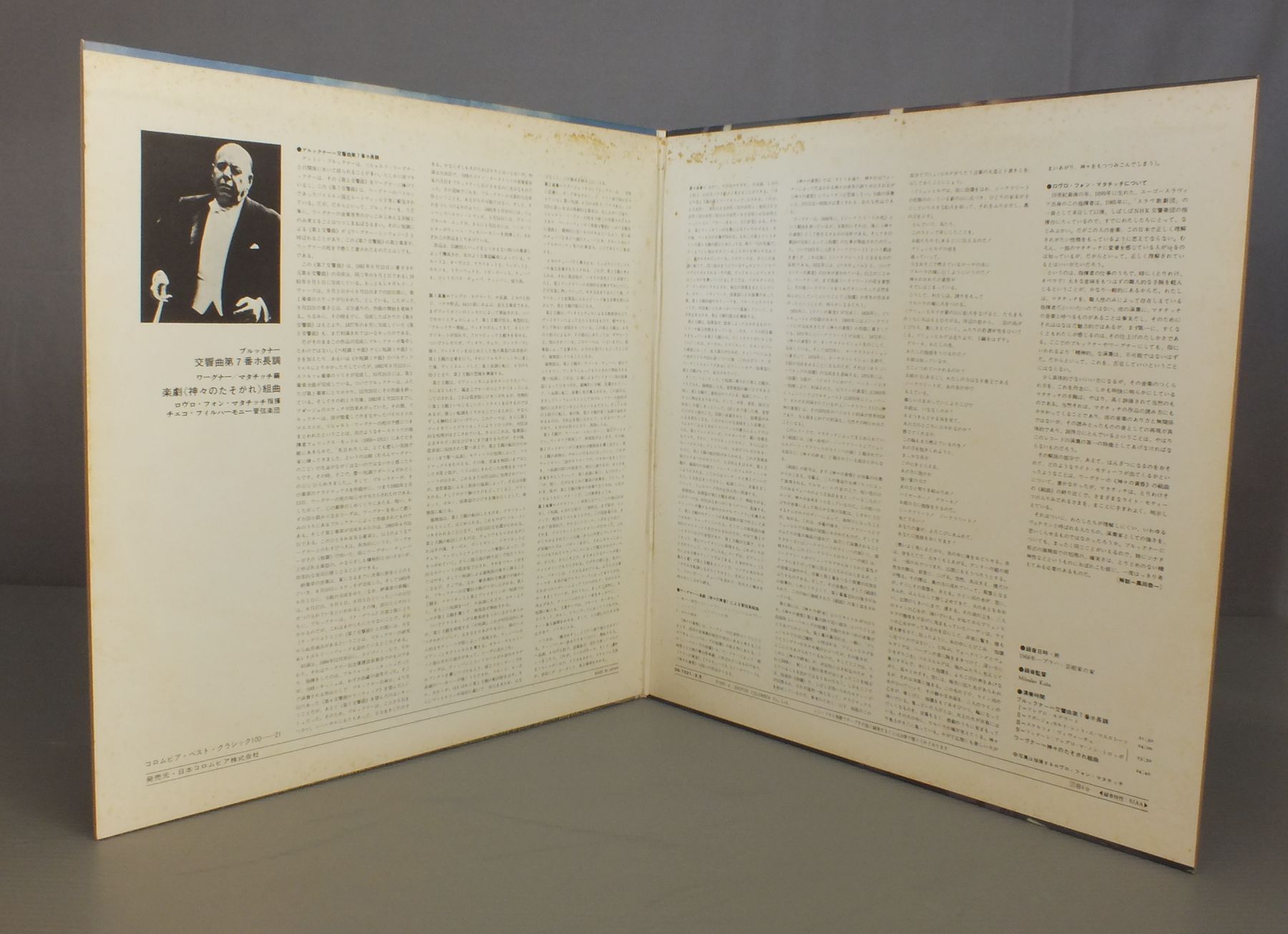 MATACICマタチッチ/BRUCKNER-SYM. NO7 etcブルックナー-交響曲第7番 他 OQ7021-22S 製造国:日本盤 / Media:LP外観:EX-盤の状態:EX 価格(税込):¥832(売約済) 送料 7inch:定形外郵便 360円~LP:定形外郵便 660円~送料は、注文の最終画面で確認頂けます。 > > MATACIC/BRUCKNER-SYM. NO7 etc 外観 (EX-)特記事項:見開きにシミ。外観EX-の共通説明:ダメージ軽度~多少。 中古品としては普通の状態。シミ、ヨゴレ、スレなど軽く~多少。 盤の状態 (EX)特記事項:薄いスリキズ・スレ軽くある感じ。軽微なものの様子です。盤EXの共通説明:盤面のスリキズが薄いものが少し~軽度 音に出そうなものは無いように見える(軽微なソフトティック音は除く)。 Tweet それぞれの画像をクリックすると、大きい写真が見られます こちらの商品もお勧めです 770円 KARAJAN - BERLIN PHIL.カラヤン - ベルリン・フィル / KARAJAN CONDUCTS MUSIC OF JOHANN STRAUSS美しき青きドナウ 990円 TOSCANINI - NBC SYMPHONY ORCH.スカニーニ - NBC交響楽団 / MOZART - SYMPHONY No40&No42モーツァルト - 交響曲第40番第41番 990円 KARAJAN - BERLIN PHILHARMONIC ORCHESTRAカラヤン - ベルリン・フィル / BRUCKNER - SYMPHONY No.9ブルックナー交響曲第9番 990円 JOSEF KRIPSジョセフ・クリップス / MOZART-OVERTURESモーツァルト-オペラ序曲集 3,850円 FURTWANGLERフルトヴェングラー / FURTWANGLER- EIN DEUTSCHES REQUIEM-VOCAL ALBUMフルトヴェングラーの芸術 第7巻ドイツ・レクイエム(声楽曲集) 990円 MEHTAメータ / STRAVINSKY-THE RITE OF SPRINGストラヴィンスキー-春の祭典 1,320円 BOHM - SAXON STATE ORCH. DRESDENベーム - ザクセン国立管弦楽団 / R. STRAUSS - ALPINE SYM.シュトラウス - アルプス交響曲 1,320円 MAAZEL - THE CLEVELAND ORCHESTRAマゼール - クリーヴランド管弦楽団 / BERLIOZ - SYMPHONIE FANTASTIQUEベルリオーズ - 幻想交響曲
