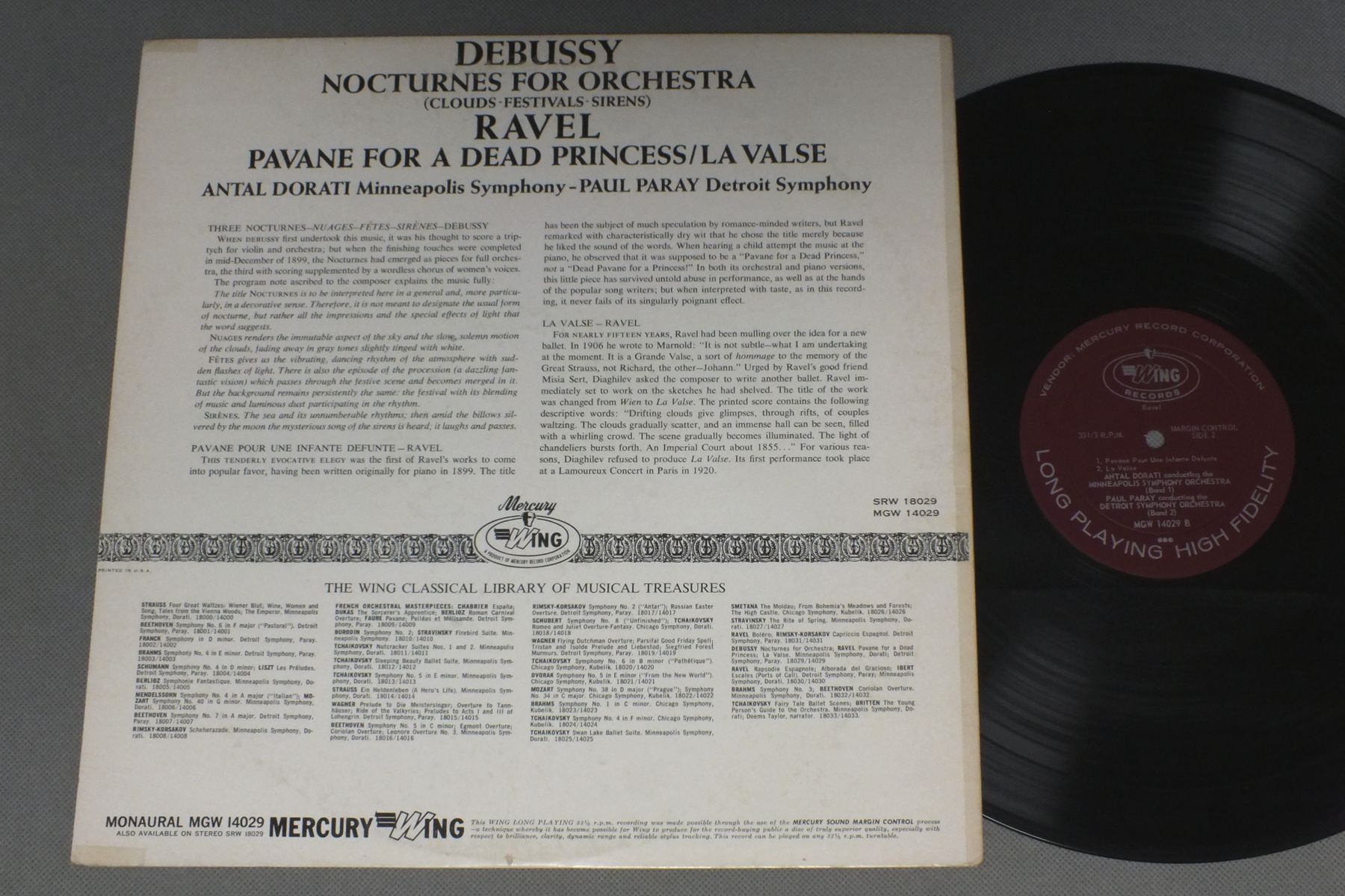 DORATI/DEBUSSY NOCTURNES FOR ORCH. `CLOUDS-FESTIVALS-SIRENS` MGW 14029 製造国:米国盤 / Media:LP外観:EX-盤の状態:EX- 価格(税込):¥924(売約済) 送料 7inch:定形外郵便 360円~LP:定形外郵便 660円~送料は、注文の最終画面で確認頂けます。 > > DORATI/DEBUSSY NOCTURNES FOR ORCH. `CLOUDS-FESTIVALS-SIRENS` 外観 (EX-)特記事項:レコードリングスレあリ。上下ヘリにテープ。外観EX-の共通説明:ダメージ軽度~多少。 中古品としては普通の状態。シミ、ヨゴレ、スレなど軽く~多少。 盤の状態 (EX-)特記事項:プレスミスか、盤に薄いくもり有り。スクラッチ系のノイズは静かな所で有る様子。音はクリアーです。盤EX-の共通説明:盤面のスリキズが多少有り。音に出そうなものは殆ど無いように見える~さほど気にならないぐらいの軽いプチ数カ所程度。 Tweet それぞれの画像をクリックすると、大きい写真が見られます こちらの商品もお勧めです 990円 IGOR STRAVINSKY / IGOR STRAVINSKY 990円 ORMANDY&PHILADELPHIA ORCH. / CHRISTMAS FESTIVAL 990円 DIE WIENER SOLISTEN / MENDELSSOHN-BARTHOLDY-SYM. 770円 ANSERMET -SUISSE ROMANDE / THAIKOVSKY - SUITE NO4 FOR ORCH. 1,430円 BOULT / TCHAIKOVSKY-SYM. NO3 1,430円 PETER KATIN / GRIEG-PIANO CONC.-PEER GYN 990円 BEINUM / BRUCKNER SYM. NO7 1,430円 BOULEZ / HANDEL-WATER MUSIC
