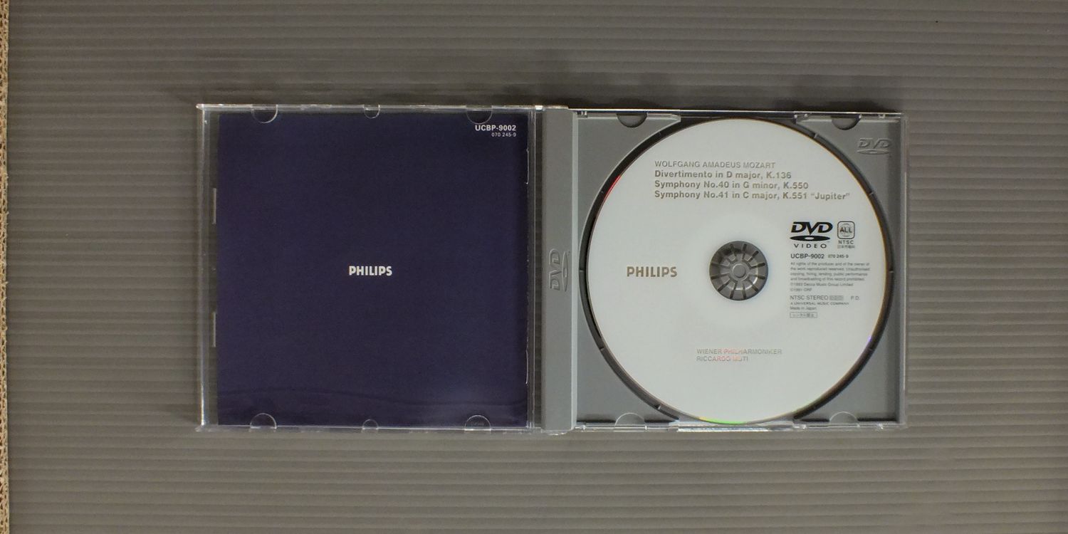 MUTIムーティ/MOZART-SYM. NOS40 & 41etcモーツァルト-交響曲第40番-第41番 他 UCBP9002 製造国:日本盤 / Media:DVD外観:EX盤の状態:EX+ 価格(税込):¥1,980 送料 7inch:定形外郵便 360円~LP:定形外郵便 660円~送料は、注文の最終画面で確認頂けます。 > > MUTI/MOZART-SYM. NOS40 & 41etc 外観 (EX)特記事項:ケースにスリキズ多少有。外観EXの共通説明:ダメージが限定的。中古品としては保存状態がよい方。シミ、ヨゴレ、スレ 少し~軽度。 盤の状態 (EX+)特記事項:薄いスリキズ・スレ少し。一見してきれいな状態です。盤EX+の共通説明:盤面の極薄いスリキズ、スレ少し程度 音に出そうなものは無いように見える(極軽微なソフトティック音は除く)。 Tweet それぞれの画像をクリックすると、大きい写真が見られます こちらの商品もお勧めです 1,760円 BOHM - WIENER PHILHARMONIKERボーム - ウィーン・フィル / BEETHOVEN - SYMPHONY NO9 2LP BOXベートーヴェン交響曲第9番 2枚組 1,650円 KRAJAN + PHILHARMONIA ORCHESTRA / STEREO SHOWPIECIES FOR ORCHESTRA 3 LP BOX SET 990円 JOCHUM - CONCERTGEBOUW ORCHESTRAヨッフム - アムステルダム・コンセルトヘボウ管弦楽団 / BEETHOVEN - SYMPHONY NO5ベートーヴェン - 交響曲第5番 運命 1,760円 RICHTER - KARAJAN - WIENNA PHILHARMONICリヒター - カラヤン - ウィーン・フィル / TCHAIKOVSKY - CONCERT NO1 FOR PIANO AND ORCHESTRAチャイコフスキー - ピアノとオーケストラのための協奏曲第1番 990円 PREVIN - LONDON SYMPHONY ORCHESTRAプレヴィン - ロンドン交響楽団 / BEETHOVEN - SYMPHONY NO5ベートーヴェン - 交響曲第5番 1,540円 BOHM - BERLINER PHILHARMONIKERベーム - ベルリン・フィル / MOZART - SINFONIE CONCERTANTI KV364&297モーツアルト協奏交響曲KV364&297 990円 STOKOVSKI - RCA SYMPHONY ORCHESTRAストコフスキー - RCA交響楽団 / LISZT - HUNGARIAN RHAPSODYリスト - ハンガリー狂詩曲 1,760円 FLAMIG - DRESDNER PHILHARMONIEフレーミッヒ - ドレスデン・フィルハーモニー / BACH - MESSEN バッハ - ミサ曲