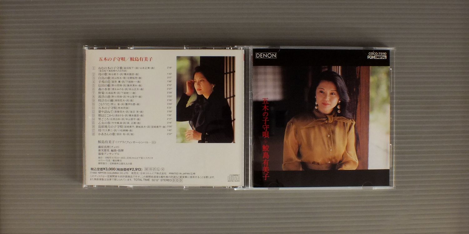 YUMIKO SAMAJIMA鮫島有美子/JAPANESE SONGS VOL4 - ITUKI LULLABY五木の子守唄 COCO75110 製造国:日本盤 / Media:CD外観:VG+盤の状態:EX+ 価格(税込):¥825 送料 7inch:定形外郵便 360円~LP:定形外郵便 660円~送料は、注文の最終画面で確認頂けます。 > > YUMIKO SAMAJIMA/JAPANESE SONGS VOL4 - ITUKI LULLABY 外観 (VG+)特記事項:ブックレット裏表紙にシミ。最後の方のページに書き込み。外観VG+の共通説明:ダメージやや有り。シミ、ヨゴレ、スレなど多少~やや多め。 盤の状態 (EX+)特記事項:薄いスリキズ・スレ少し。一見してきれいな状態です。盤EX+の共通説明:盤面の極薄いスリキズ、スレ少し程度 音に出そうなものは無いように見える(極軽微なソフトティック音は除く)。 Tweet それぞれの画像をクリックすると、大きい写真が見られます こちらの商品もお勧めです 990円 ENRICO CARUSOエンリコ・カルーソ / ENRICO CARUSO VOL.2 990円 JANET BAKER - BARBIROLLI - NEW PHILHARMONIA ORCHESTRAジャネット・ベイカー - バルビローリ - ニュウ・フィルハーモニア / RAVEL - SHEHERAZADEラヴェル - シェヘラザード 1,650円 KARAJAN + CALLAS / LUCIA LAMMERMOOR SEPT22 1955 3LP BOX 1,320円 SCHWARZKOPF - LUDWIG - SYMPHONY ORCH. OF RADIO BERLINシュワルツコフ - ベルリン放送交響楽団 / WEBER - ABU HASSANウェーバー歌劇アブ・ハッサン 1,540円 FISCHER DIESKAU - ESCHENBACHフィッシャーディスカウ - エッシェンバッハ / SCHUMANN - LIEDERシューマン歌曲集 2,090円 BOHM - WIENER PHILHARMONIKERボーム - ウィーン・フィル / MOZART - COSI FAN TUTTE 3LP BOXモーツアルト - コジ・ファン・トゥッテ 3枚組 1,540円 HELENE MANE (SOPRANO) & ZUZANA RUZICKOVA(HARPSICHORD)ヘレン・マネ(ソプラノ)&ズザナ・ルージチコヴァー(チェンバロ) / BACH - HANDEL etc 1,320円 BRUNO TURNER - ENSEMBLE PRO CANTIONE ANTIQUA LONDONブルーニ・ターナー - プロ・カンツォーネ・アンティカ / ORLANDO DI LASSO - REQUIEMオルランド・ディ・ラッソ - レクイエム