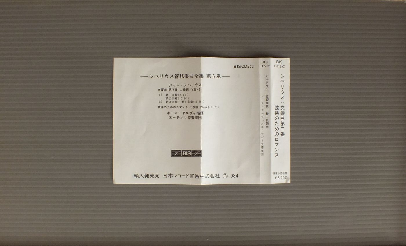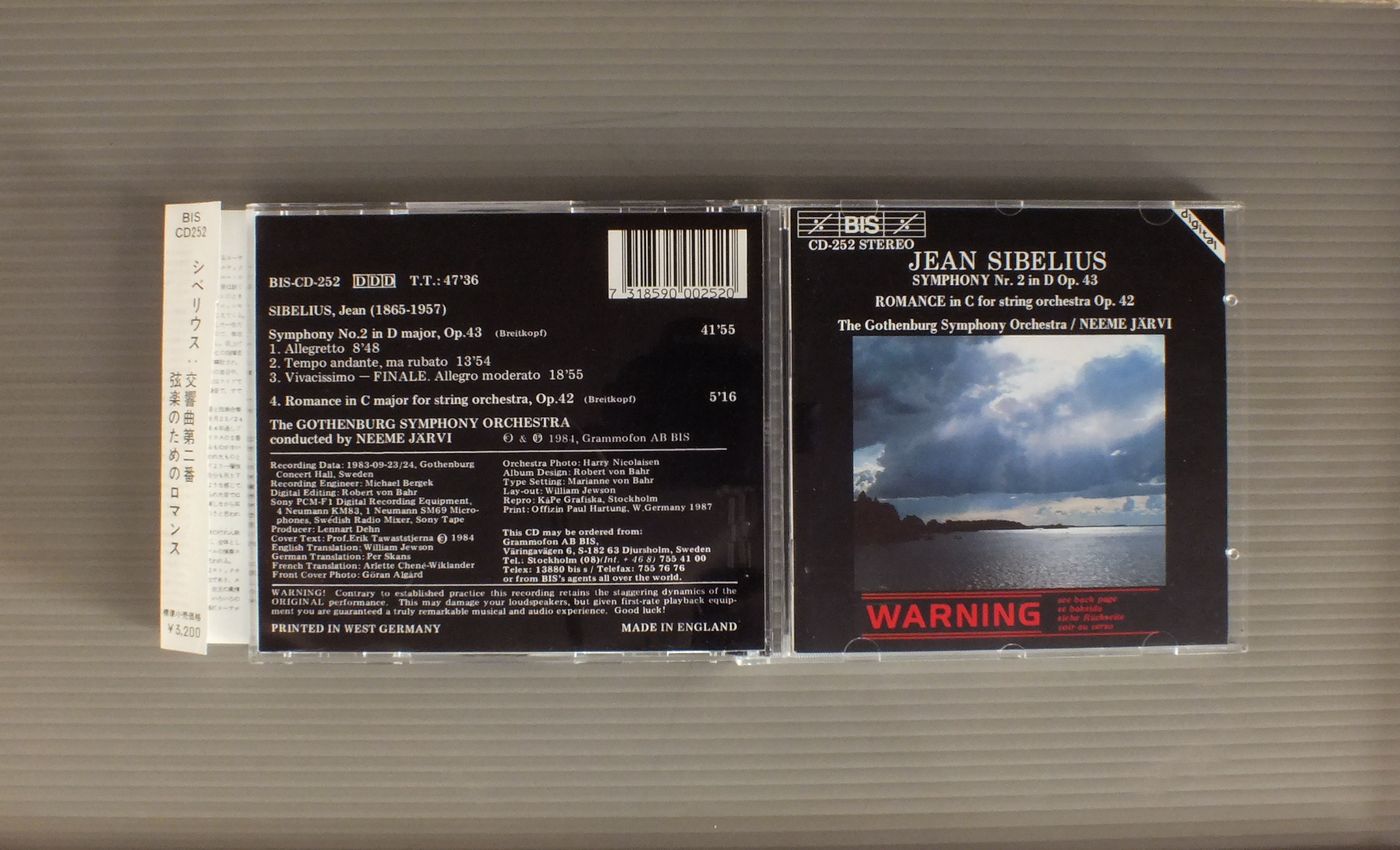 JARVIヤルヴィ/SIBELIUS-SYM. NO2-ROMANCE IN Cシベリウス-交響曲第2番-弦楽のためのロマンス CD252 製造国:英国盤 / Media:CD外観:EX盤の状態:EX+ 価格(税込):¥880 送料 7inch:定形外郵便 360円~LP:定形外郵便 660円~送料は、注文の最終画面で確認頂けます。 > > JARVI/SIBELIUS-SYM. NO2-ROMANCE IN C 外観 (EX)特記事項:ブックレット最後のページに書き込み。外観EXの共通説明:ダメージが限定的。中古品としては保存状態がよい方。シミ、ヨゴレ、スレ 少し~軽度。 盤の状態 (EX+)特記事項:薄いスリキズ・スレ少し。一見してきれいな状態です。盤EX+の共通説明:盤面の極薄いスリキズ、スレ少し程度 音に出そうなものは無いように見える(極軽微なソフトティック音は除く)。 Tweet それぞれの画像をクリックすると、大きい写真が見られます こちらの商品もお勧めです 1,540円 1CLAUDIO SCIMONE - I SOLISTI VENETIクラウディオ シモーネ - イ・ソリスティ・ヴェネティ / PROMO ONLY特別試聴盤 (見本盤) 1,760円 KARAJAN - BERLINER PHILHARMONIKERカラヤン - ベルリン・フィル / HAYDN - THE CREATION 2LP BOXハイドン - 天地創造 2枚組 990円 MARRINER - ACADEMY OF ST.MARTIN IN THE FIELDSマリナー - アカデミー室内管弦楽団 / SCHONBERG - VERKLARTE NACHETシェーンベルク - 浄夜 2,200円 SOLTI + CHICAGO SYMPHONY / BEETHOVEN NINE SYMPHONIES 9LP BOX 1,540円 BOHM - BERLINER PHILHARMONIKERベーム - ベルリン・フィル / MOZART - SINFONIE CONCERTANTI KV364&297モーツアルト協奏交響曲KV364&297 2,750円 FURTWANGLER / WARGNER 5枚組 990円 BRENDEL - MARRTNER - ACADEMY OF ST.MARTIN IN THE FIELDSブレンデル - マリナー - アカデミー室内管弦楽団 / MOZRT - PIANO CONCERTOS NO19 NO23モーツァルト - ピアノ協奏曲第19番23番 990円 PREVIN - LONDON SYMPHONY ORCHESTRAプレヴィン - ロンドン交響楽団 / BEETHOVEN - SYMPHONY NO5ベートーヴェン - 交響曲第5番
