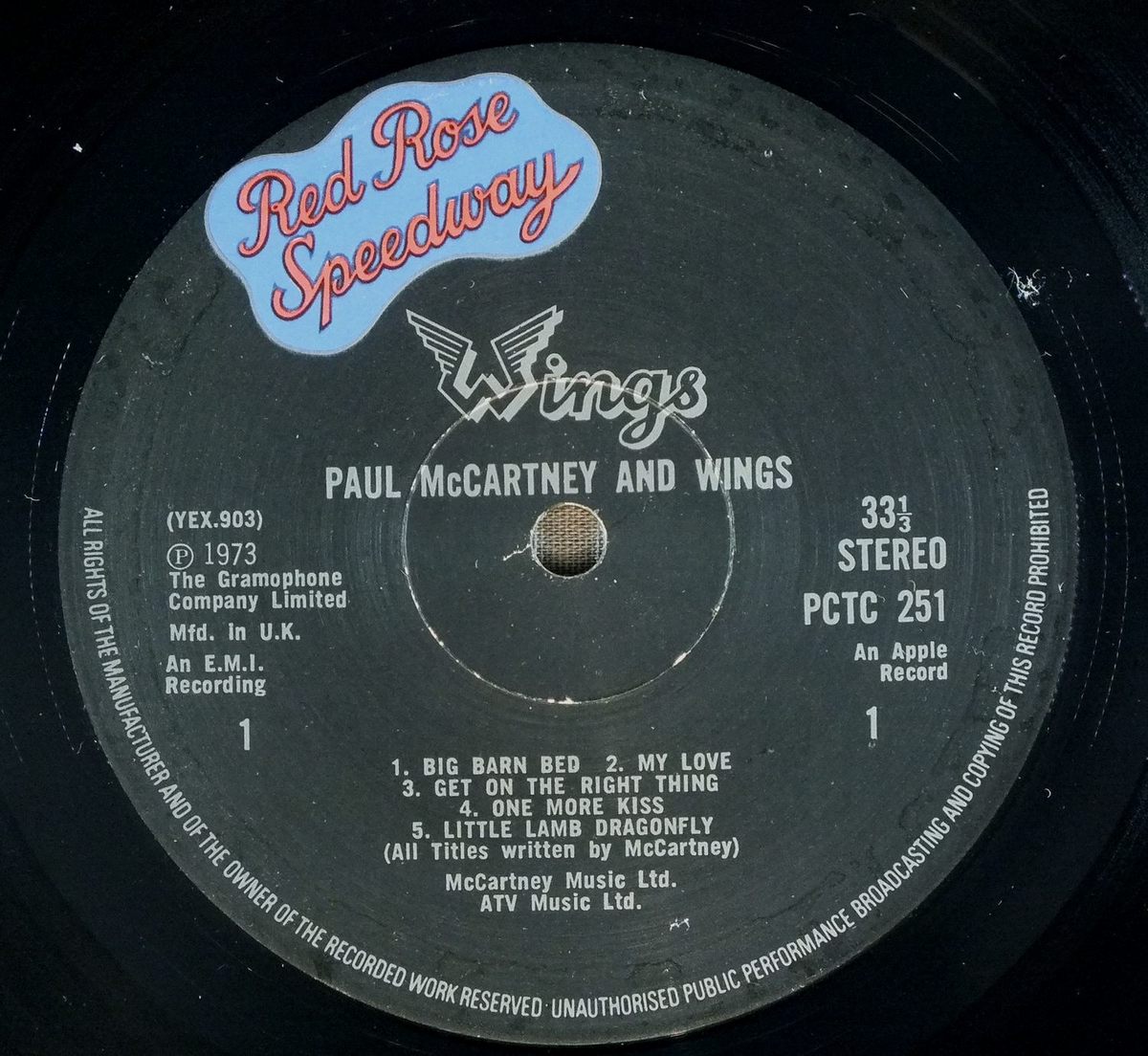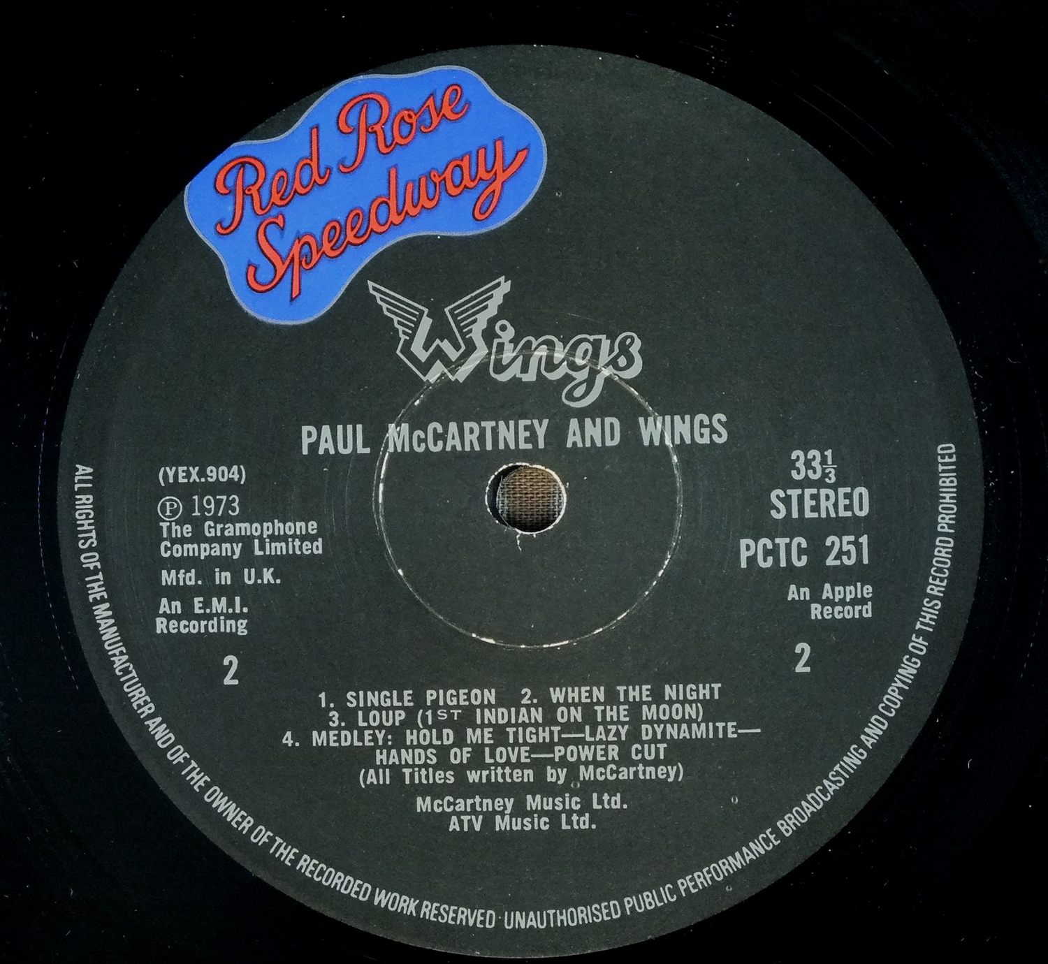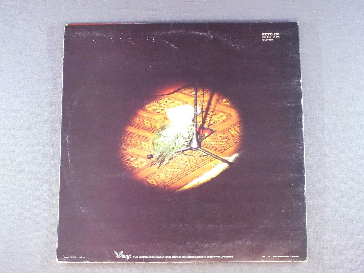 WINGS/RED ROSE SPEEDWAY PCTC251 製造国:英国盤 / Media:LPMatrix: -3 -3外観:EX-盤の状態:EX 価格(税込):¥5,401(売約済) 送料 7inch:定形外郵便 360円~LP:定形外郵便 660円~送料は、注文の最終画面で確認頂けます。 > > WINGS/RED ROSE SPEEDWAY 外観 (EX-)特記事項:裏ジャケ底スレ多め。背や表ジャケ上ヘリにスレ多少有。角スレ多少有。表ジャケ上下ヘリ付近にヨレシワや横スレ、裏ジャケにレコードリングスレ。表裏ジャケ共にスリキズやよごれは少な目。見開きはスレやよごれは少なくきれいな感じですが、ブックは脱落。裏ジャケに点字の有る初期タイプ。ブックレットは背スレ有り。めくりヨレやよごれ等は少ない方だと思います。外観EX-の共通説明:ダメージ軽度~多少。 中古品としては普通の状態。シミ、ヨゴレ、スレなど軽く~多少。 盤の状態 (EX)特記事項:薄いスリキズ・スレ少しある程度。音に出そうなものもなく一見してきれいな状態です。曲間など、静かなところを中心に聴いて見ましたが、チリノイズ少ないきれいな再生具合でした。盤EXの共通説明:盤面のスリキズが薄いものが少し~軽度 音に出そうなものは無いように見える(軽微なソフトティック音は除く)。 Tweet それぞれの画像をクリックすると、大きい写真が見られます こちらの商品もお勧めです 5,500円 JOHN LENNON / SHAVED FISH 5,500円 BEATLES / AT THE HOLLYWOOD BOWL 5,500円 GEORGE HARRISON / LIVING IN THE MATERIAL WORLD 4,950円 JOHN & YOKO - PLASTIC ONO BANDF / SOME TIME IN NEW YORK CITY 5,500円 GEORGE HARRISON / THIRTY THREE & 1/3