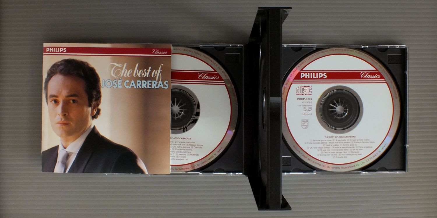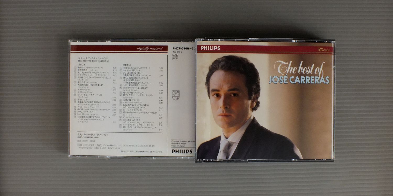 JOSE CARRERASホセ・カレーラス/OPERA ARIAS&SONGS-BEST OF JOSE CARRERASカタリ. 星は光りぬ-ベスト・オブ・ホセ・カレーラス PHCP3148-9 製造国:日本盤 / Media:CD外観:EX+盤の状態:EX 価格(税込):¥880 送料 7inch:定形外郵便 360円~LP:定形外郵便 660円~送料は、注文の最終画面で確認頂けます。 > > JOSE CARRERAS/OPERA ARIAS&SONGS-BEST OF JOSE CARRERAS 外観 (EX+)特記事項:特記事項無し。コンディションリストを参照。外観EX+の共通説明:中古としては美品、一見してきれいでダメージが軽微。シミ、ヨゴレ、スレ有っても僅か~少し。 盤の状態 (EX)特記事項:薄いスリキズ・スレ軽くある感じ。軽微なものの様子です。盤EXの共通説明:盤面のスリキズが薄いものが少し~軽度 音に出そうなものは無いように見える(軽微なソフトティック音は除く)。 その他:2枚組 Tweet それぞれの画像をクリックすると、大きい写真が見られます こちらの商品もお勧めです 990円 BORIS CHRISTOFF - FEODOR POTORJINSKI RUSSIAN CHOIRボリス・クリストフ - ポトルジンスキー・ロシア合唱団 / RUSSIAN FOLK SONGS AND SACRED MUSICロシア民謡集 1,320円 KUNZ - PAULIK - WIENNA STATE OPERA ORCHESTRA & CHORUSクンツ - パウリク - ウィーン国立歌劇場管弦楽団・合唱団 / ERICH KUNZ SINGS GERMAN UNIVERSITY SONGSドイツ学生の歌 1,320円 SCHWARZKOPF - LUDWIG - SYMPHONY ORCH. OF RADIO BERLINシュワルツコフ - ベルリン放送交響楽団 / WEBER - ABU HASSANウェーバー歌劇アブ・ハッサン 1,540円 JANET BATER - MENUHIN - BACH FESTIVAL ORCHESTRAジャネット・ベイカー - メニューイン - バッハ祝祭管弦楽団 / BACH - CANTATA NO.82バッハ・カンタータ第82番169番 2,860円 RICHTER - MUNICH BACH CHOIR & ORCHESTRAリヒテル - ミュンヘン・バッハ合唱団&管弦楽団 / BACH - MASS IN B MINORバッハ- ミサ曲ロ短調 990円 MARIA CALLASマリア・カラス / BIZET - CARMEN HIGHLIGHTSビゼー - 歌劇カルメン ハイライト 1,540円 CHIHIRO BAMBA - MARCELLE DEDIEU VIDAL番場ちひろ - マルセル・ドデュー=ヴィダル / LE BEL CANTO EN ITALIE AU TEMPS DE STENDHAL 2,420円 LILY PONSリリー・ポンス / LILY PONS GALA
