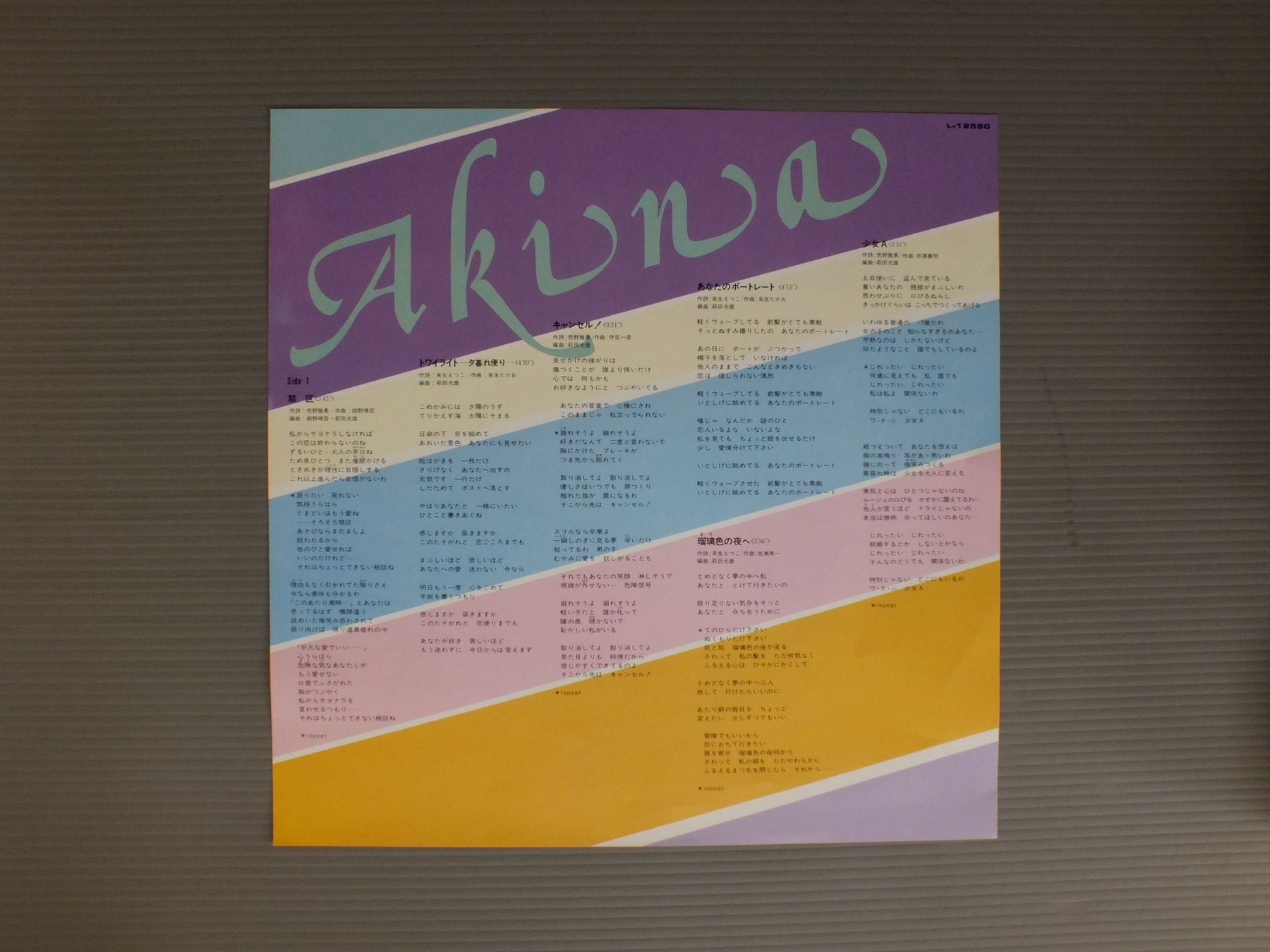 AKINA NAKAMORI中森明菜/BEST AKINAメモワール L12590 製造国:日本盤 / Media:LP外観:EX+盤の状態:EX帯:EX+ 価格(税込):¥825(売約済) 送料 7inch:定形外郵便 360円~LP:定形外郵便 660円~送料は、注文の最終画面で確認頂けます。 > > AKINA NAKAMORI/BEST AKINA 外観 (EX+)特記事項:特記なし。外観EX+の共通説明:中古としては美品、一見してきれいでダメージが軽微。シミ、ヨゴレ、スレ有っても僅か~少し。 盤の状態 (EX)特記事項:薄いスリキズ・スレ軽くある感じ。軽微なものの様子です。盤EXの共通説明:盤面のスリキズが薄いものが少し~軽度 音に出そうなものは無いように見える(軽微なソフトティック音は除く)。 帯の状態 (EX+):特記なし。 Tweet それぞれの画像をクリックすると、大きい写真が見られます こちらの商品もお勧めです 880円 MOMOE YAMAGUCHI山口百恵 / BEST HITS山口百恵ヒット全曲集 990円 TOMOKO TAKABE高部知子 / AMEAGARI雨・ア・ガ・リ 770円 ERI NITTA新田恵利 / ERI 1,870円 ATSUMI KURASAWA倉沢敦美 / MESSAGEメッセージ 880円 MOMOE YAMAGUCHI山口百恵 / 16s THEME16才のテーマ 990円 YOSHIMI IWASAKI岩崎良美 / SAISONS (2nd ALBUM)セゾン(2nd ALBUM) 1,320円 ONYANKO CLUBおニャン子クラブ / MERRY X`MAS FOR YOU PIC DISCメリー・クリスマス・フォー・ユー 1,210円 ERI NITTA新田恵利 / ERI