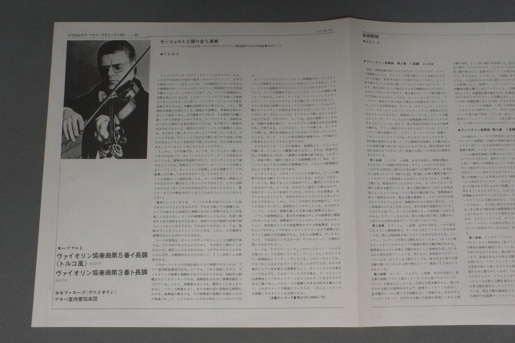 JOSEF SUKヨセフ・スーク/MOZART VIOLIN CONC. NOS5 KV219 & 3 KV216モーツァルト`トルコ風` OQ-7033-N 製造国:日本盤 / Media:LP外観:EX+盤の状態:EX+帯:EX+ 価格(税込):¥3,548(売約済) 送料 7inch:定形外郵便 360円~LP:定形外郵便 660円~送料は、注文の最終画面で確認頂けます。 > > JOSEF SUK/MOZART VIOLIN CONC. NOS5 KV219 & 3 KV216 外観 (EX+)特記事項:特記なし。外観EX+の共通説明:中古としては美品、一見してきれいでダメージが軽微。シミ、ヨゴレ、スレ有っても僅か~少し。 盤の状態 (EX+)特記事項:薄いスリキズ・スレ少し。一見してきれいな状態です。盤EX+の共通説明:盤面の極薄いスリキズ、スレ少し程度 音に出そうなものは無いように見える(極軽微なソフトティック音は除く)。 帯の状態 (EX+):特記なし。 Tweet それぞれの画像をクリックすると、大きい写真が見られます こちらの商品もお勧めです 990円 BAUMGARTNERバウムガルトナー / BACH ORCHESTERSUITEN 2 & 3バッハ 管弦楽組曲第2・3番 990円 ALFRED CORTOT & JACQUES THIBAUDアルフレッド・コルトー - ジャック・ティポー他 / CHAUSSON - CONCERTO FOR VIOLIN PIANO & STRING QUATETショーソン - ピアノとヴァイオリンと弦楽四重奏のための協奏曲 990円 I MUSICI - CARMIRELLIイ・ムジチ & カルミレッリ / VIVALDI - QUATTRO STAGIONIヴィヴァルディ - 四季 1,870円 FRANS BRUGGENフランス・ブリュッヘン / BLOCKFLOTENWERKE DES BAROCK 2ブロックフレーテの魅力 990円 JOCHUMヨッフム / MOZART SERENADE FOR 13 WINDSモーツァルト 13管楽器のためのセレナーデ 1,320円 PAUMGARTNER - CAMERATA ACADEMICA THE SALZBURG MOZARTEUMパウムガルトナー - ザルツブルグ・モーツアルトテウム音楽院管弦楽団 / HANDEL - THE WATER MUSICヘンデル 水上の音楽 1,320円 NICOLET - SUK - JACCOTTET - GERINGASニコレ+スーク / TRIO SONATENトリオ・ソナタ集 1,320円 KIYOSHI SHOMURA荘村清志 / ROMANCE D`AMOUR愛のロマンス
