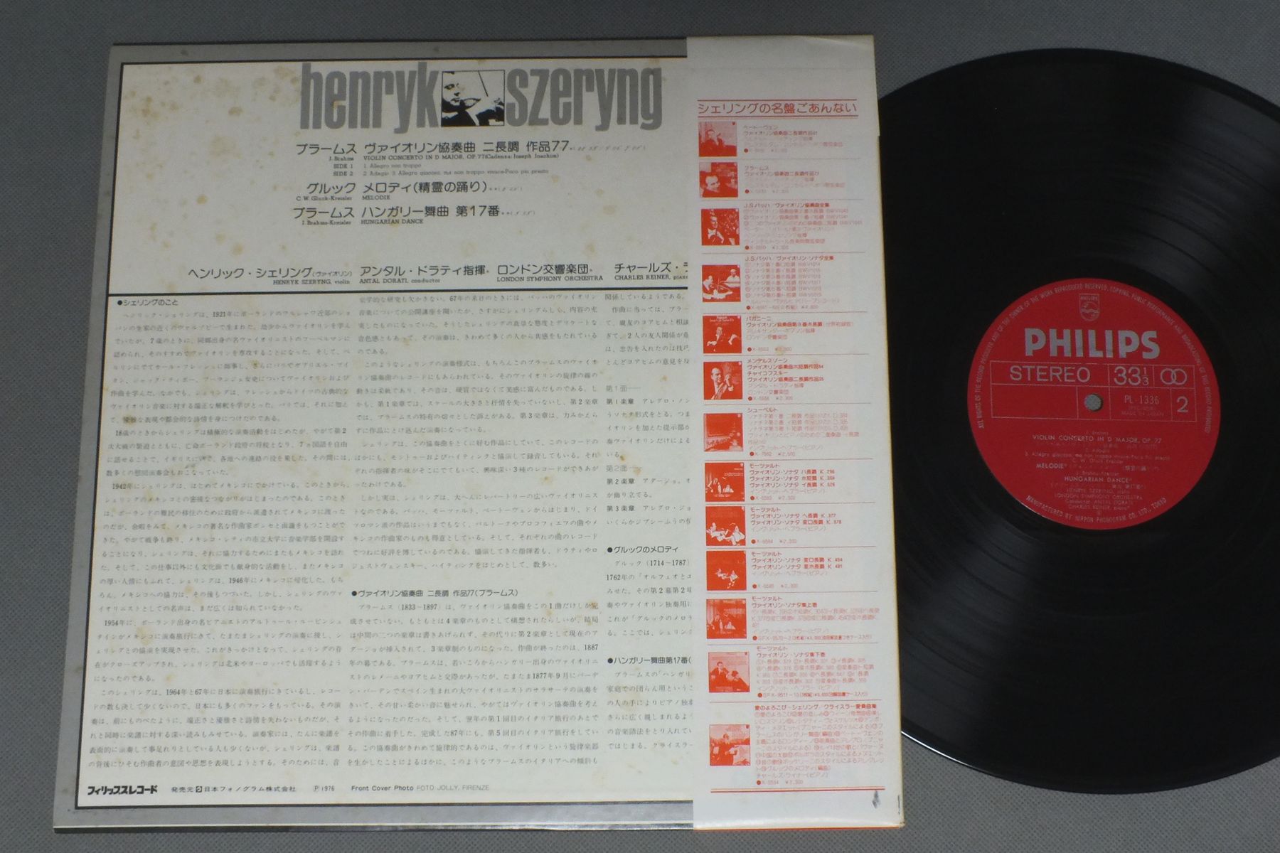 SZERYNG-DORATIシェリング-ドラティ/SZERYNG PLAYS BRAHMSシェリングのブラームス PL-1336 製造国:日本盤 / Media:LP外観:VG+盤の状態:EX+帯:EX 価格(税込):¥567(売約済) 送料 7inch:定形外郵便 360円~LP:定形外郵便 660円~送料は、注文の最終画面で確認頂けます。 > > SZERYNG-DORATI/SZERYNG PLAYS BRAHMS 外観 (VG+)特記事項:裏ジャケにシミやよごれ有り。外観VG+の共通説明:ダメージやや有り。シミ、ヨゴレ、スレなど多少~やや多め。 盤の状態 (EX+)特記事項:薄いスリキズ・スレ少し。一見してきれいな状態です。盤EX+の共通説明:盤面の極薄いスリキズ、スレ少し程度 音に出そうなものは無いように見える(極軽微なソフトティック音は除く)。 帯の状態 (EX):特記なし。 Tweet それぞれの画像をクリックすると、大きい写真が見られます こちらの商品もお勧めです 990円 MAURICE HEWITT - HEWITT CHAMBER ORCHモーリス・エウイット - エウイット室内管弦楽団 / FANTES ET DIVERTISSE MENTS DE VERSAILLES VOL2ヴェルサイユの栄光VOL1(音楽とサロン) 1,320円 I MUSICIイ・ムジチ合奏団 / RESPIGHI - ANTICHE ANZE ED ARIE PER LIUTO`SUITE 3リュートのための古代舞曲とアリア 1,320円 AMADEUS QUARTETアマデウス弦楽四重奏団 / BRAHMS - STRING QUARTET NO3ブラームス 弦楽四重奏第3番 990円 CASALSカザルス / BACH-ORCH.L SUITE NOS 2&3バッハ-管弦楽組曲第2番 & 第3番 770円 HUNGARIAN STRING QUARTETハンガリー弦楽四重奏団 / BARTOK - STRING QUARTETS NO5&6バルトーク - 弦楽四重奏曲第5番6番 1,650円 BRUGGEN-ANNER BYLSMA-LEONHARDT-HARNONCOURTブリュッヘン-アンナー・ビルスマ-レオンハルト-ニコラウス・ハルノンクール / BROCKNWERKE DES BAROCK涙のパヴァーヌ-ブロックフレーテの魅力 ブリュッヘン・ブロックフレーテ名演集 990円 SMETANA QUARTETスメタナ四重奏団 / SMETANA-TWO SQSスメタナ-第1番&第2番 1,320円 COLLEGIUM AUREUM AUF ORIGINALINSTRUMENTENコレギウム・アウレウム合唱団 / MOZART - SERENADE GRAN PARTITAモーツァルト - セレナード第10番 グラン・パルティータ