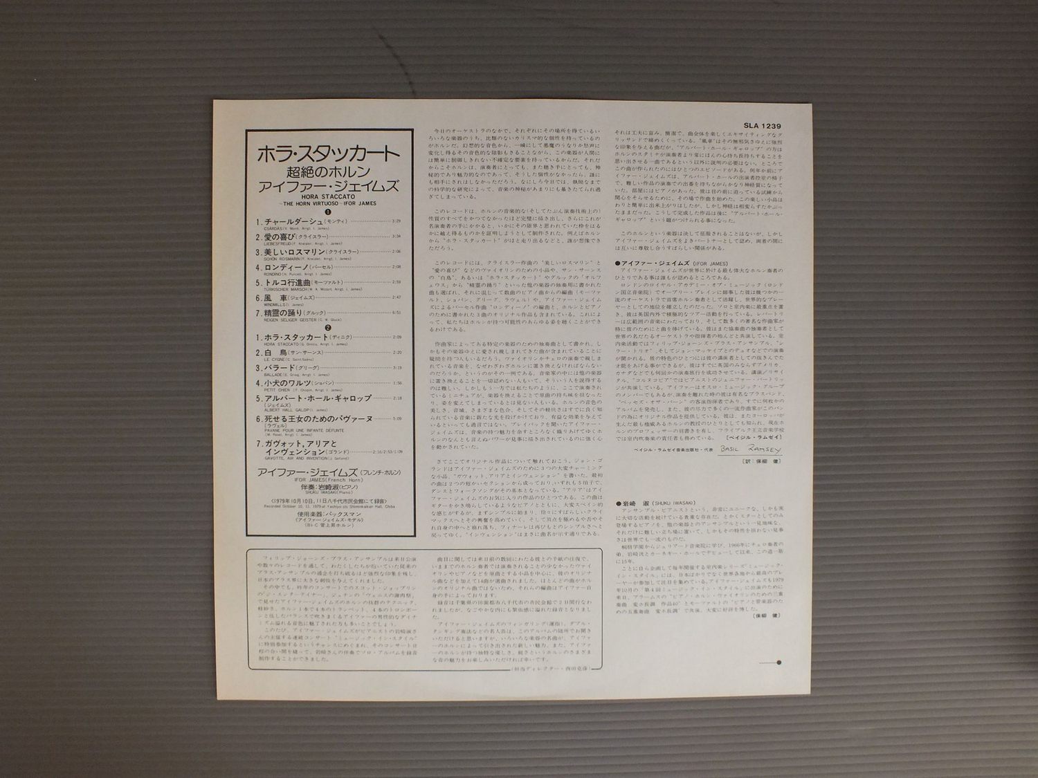 IFOR JAMESアイファー・ジェイムズ/HORA STACCATO -THE HORN VIRTUOSO- IFOR JAMESホラ・スタッカート-超絶のホルン SLA1239 製造国:日本盤 / Media:LP外観:EX盤の状態:EX帯:EX 価格(税込):¥1,134(売約済) 送料 7inch:定形外郵便 360円~LP:定形外郵便 660円~送料は、注文の最終画面で確認頂けます。 > > IFOR JAMES/HORA STACCATO -THE HORN VIRTUOSO- IFOR JAMES 外観 (EX)特記事項:表ジャケにレコードリングスレ有り。外観EXの共通説明:ダメージが限定的。中古品としては保存状態がよい方。シミ、ヨゴレ、スレ 少し~軽度。 盤の状態 (EX)特記事項:薄いスリキズ・スレ軽くある感じ。軽微なものの様子です。盤EXの共通説明:盤面のスリキズが薄いものが少し~軽度 音に出そうなものは無いように見える(軽微なソフトティック音は除く)。 帯の状態 (EX):裏側によごれと短い切れ。 Tweet それぞれの画像をクリックすると、大きい写真が見られます こちらの商品もお勧めです 990円 12 CELLISTS OF BERLIN PHILHARMONIC ORCHESTRAベルリン・フィルの12人のチェロ奏者たち / VILLA=LOBOS - BACHIANAS BASILEIRAS NO5 etc超絶 スーパーチェロ軍団 990円 I MUSICI-SEVERINO GAZZELLONIイ・ムジチ合奏団-セヴェリーノ・ガッツェルローニ / VIVALDI-LA TEMPESTA DI MARE-FLUTE CONCERTI OP10海の嵐-ヴィヴァルディ-フルート協奏曲集 990円 MARRINER - ACADEMY OF ST. MARTIN-IN-THE-FIELDマリナー -アカデミー室内管弦楽団 / BACH - MUSICAL OFFERINGバッハ - 音楽の捧げもの 990円 AURELE NICOLET - RUDOLF BAUMGARTNERオーレル・ニコル- バウムガルトナー - ルツェルン祝祭管弦合奏団 / VIRTUOSO FLUTE CONCERTOSヴィルトォーソ・フルート・コンチェルト 1,430円 LUPU - SEGAL - ENGLISH CEMBER ORCHESTRAルプー - シーガル - イギリス室内管弦楽団 / MOZART - PIANO CONCERT NO.21&NO.12モーツァルト - ピアノ協奏曲第21番、12番 990円 MAKSYMIUK - POLISH CHAMBER ORCHESTRAマクシウク - ポーランド室内管弦楽団 / MOZART - 2 DIVERTIMENTI FOR STRINGSモーツァルト - ディヴェルティメント 990円 ISAAC STERN - EUGENE ISTOMINアイザック・スターン - ユージン・イストミン / BEETHOVEN - VIOLIN SONATASベートーヴェン - ヴァイオリン・ソナタ第4番-第9番 クロイツェル 2,200円 DOMBRECHT-KUIJKEN-KOHNENドンブレヒト-クイケン-コーネン / OBOE SONATAS BETWEEN 1700-175018世紀前半のオーボエ・ソナタ集