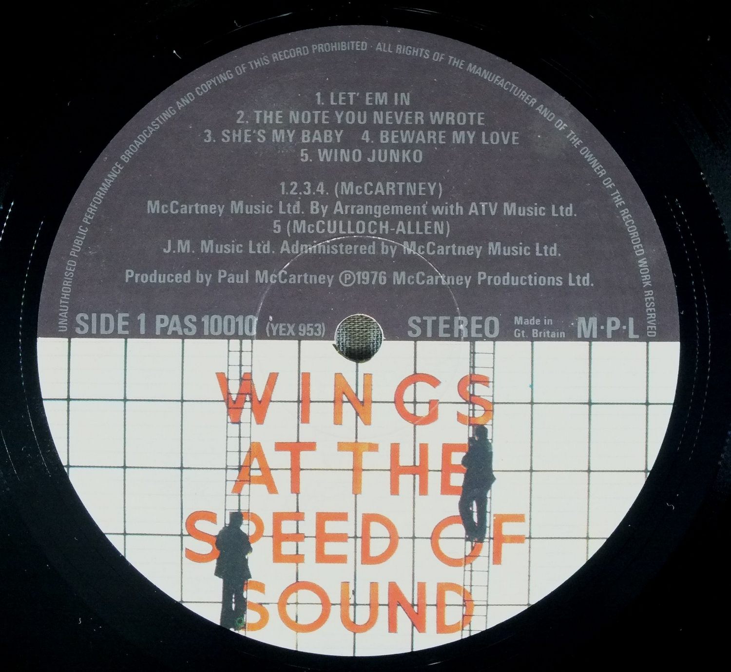 WINGS/AT THE SPEED OF THE SOUND PAS10010 製造国:英国盤 / Media:LPMatrix: -5U -5U外観:EX盤の状態:EX+ 価格(税込):¥5,500(売約済) 送料 7inch:定形外郵便 360円~LP:定形外郵便 660円~送料は、注文の最終画面で確認頂けます。 > > WINGS/AT THE SPEED OF THE SOUND 外観 (EX)特記事項:裏ジャケ上に横スレが少し。ジャケ表面は全体的にスレやスリキズ、よごれ等は少な目。オリジナルインナーは角がカットされたタイプ。ヨレ感の無いしっかりした状態でよごれも少な目。抜けも無いです。外観EXの共通説明:ダメージが限定的。中古品としては保存状態がよい方。シミ、ヨゴレ、スレ 少し~軽度。 盤の状態 (EX+)特記事項:薄いスリキズ・スレ少しある程度。音に出そうなものもなく一見してきれいな状態です。曲間など、静かなところを中心に聴いて見ましたが、チリノイズ少ないきれいな再生具合でした。盤EX+の共通説明:盤面の極薄いスリキズ、スレ少し程度 音に出そうなものは無いように見える(極軽微なソフトティック音は除く)。 Tweet それぞれの画像をクリックすると、大きい写真が見られます こちらの商品もお勧めです 5,500円 BEATLES / AT THE HOLLYWOOD BOWL 5,500円 GEORGE HARRISON / LIVING IN THE MATERIAL WORLD 5,500円 JOHN LENNON / SHAVED FISH 5,500円 GEORGE HARRISON / THIRTY THREE & 1/3 4,950円 JOHN & YOKO - PLASTIC ONO BANDF / SOME TIME IN NEW YORK CITY