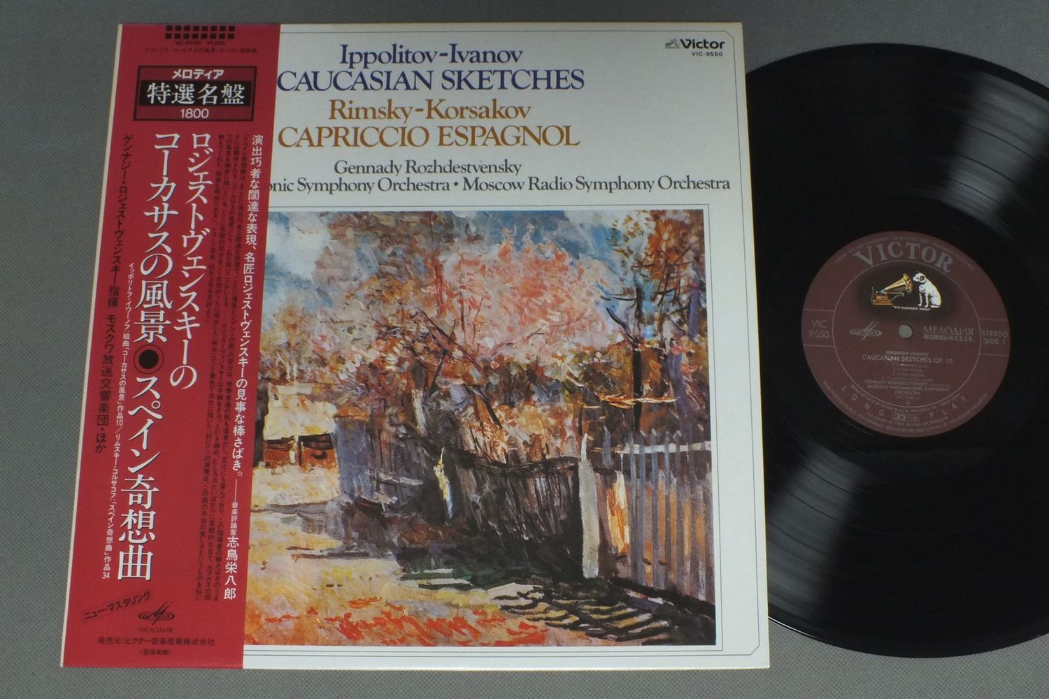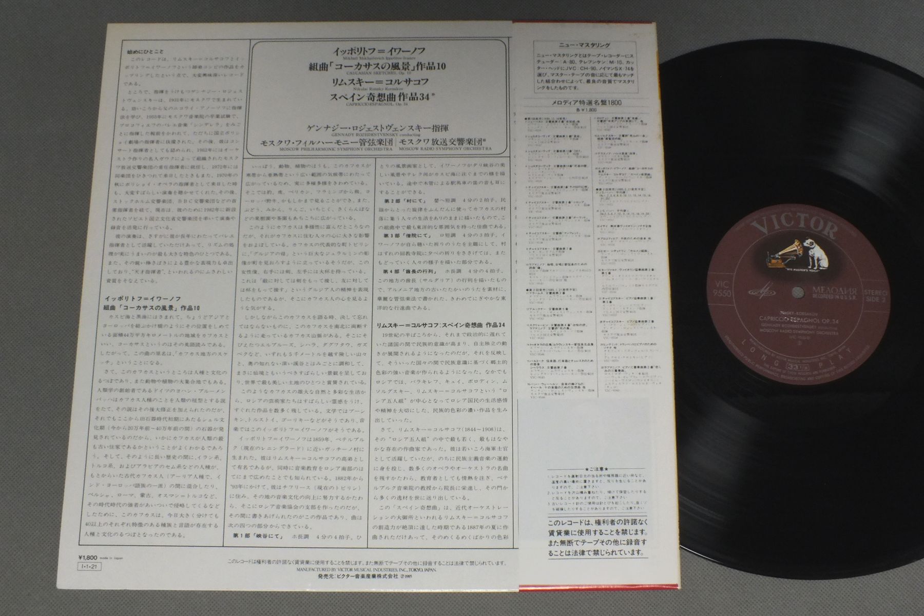 ROZHDESTVENSKYロジェストヴェンスキー/IPPOLITOV-IVANOV CAUCASIAN SKETCHES イワーノフ 組曲`コーカサスの風景` リムスキー-コルサコフ スペイン奇想曲 VIC-9550 製造国:日本盤 / Media:LP外観:EX盤の状態:EX+帯:EX 価格(税込):¥1,386(売約済) 送料 7inch:定形外郵便 360円~LP:定形外郵便 660円~送料は、注文の最終画面で確認頂けます。 > > ROZHDESTVENSKY/IPPOLITOV-IVANOV CAUCASIAN SKETCHES 外観 (EX)特記事項:上ヘリに日焼けシミ。外観EXの共通説明:ダメージが限定的。中古品としては保存状態がよい方。シミ、ヨゴレ、スレ 少し~軽度。 盤の状態 (EX+)特記事項:薄いスリキズ・スレ少し。一見してきれいな状態です。盤EX+の共通説明:盤面の極薄いスリキズ、スレ少し程度 音に出そうなものは無いように見える(極軽微なソフトティック音は除く)。 帯の状態 (EX):裏側にシミ。 Tweet それぞれの画像をクリックすると、大きい写真が見られます こちらの商品もお勧めです 990円 FURTWANGLERウィルヘルム・フルトヴェングラー / BEETHOVEN-SYM. NO3 EROICA etcベートーヴェン-交響曲第3番 英雄 他 990円 CLEMENS KRAUSSクレメンス・クラウス / GREAT-MASTERS OF THE CENTURY CLEMENS KRAUSS VOL3世紀の音楽家たち クレメンス・クラウス 第3集 770円 WALTERワルター / HAYDN/SYM.S NOS96 MIRACLE & 102ハイドン/交響曲 96番 1,320円 POLLINI - ABBADO - CHICAGO SYMPHONY ORCHESTRAポリーニ - アバド - シカゴ交響楽団 / BARTOK - CONCERTO FOR PIANO AND ORCHESTRAバルトーク - ピアノ協奏曲 990円 FRANZJOSEF MAIERフランツヨーゼフ・マイアー / HAYDN-SYM. LA POULE-L`OURSハイドン-交響曲 めんどり-くま 770円 WALTER * COLUMBIA SYM. ORCH.ワルター - コロンビ交響楽団 / BEETHOVEN - SYM. NO6 PASTORALEベートーヴェン - 田園 1,320円 SOLTI - CHICAGO SYMPHONYショルティ - シカゴ交響楽団 / BEETHOVEN -SYMPHONY NO5ベルリオーズ交響曲第5番 1,320円 GITLISギトリス / PAGANINI - VIOLIN CONCERTO NO1 & 2パガニーニ - ヴァイオリン協奏曲第1番2番