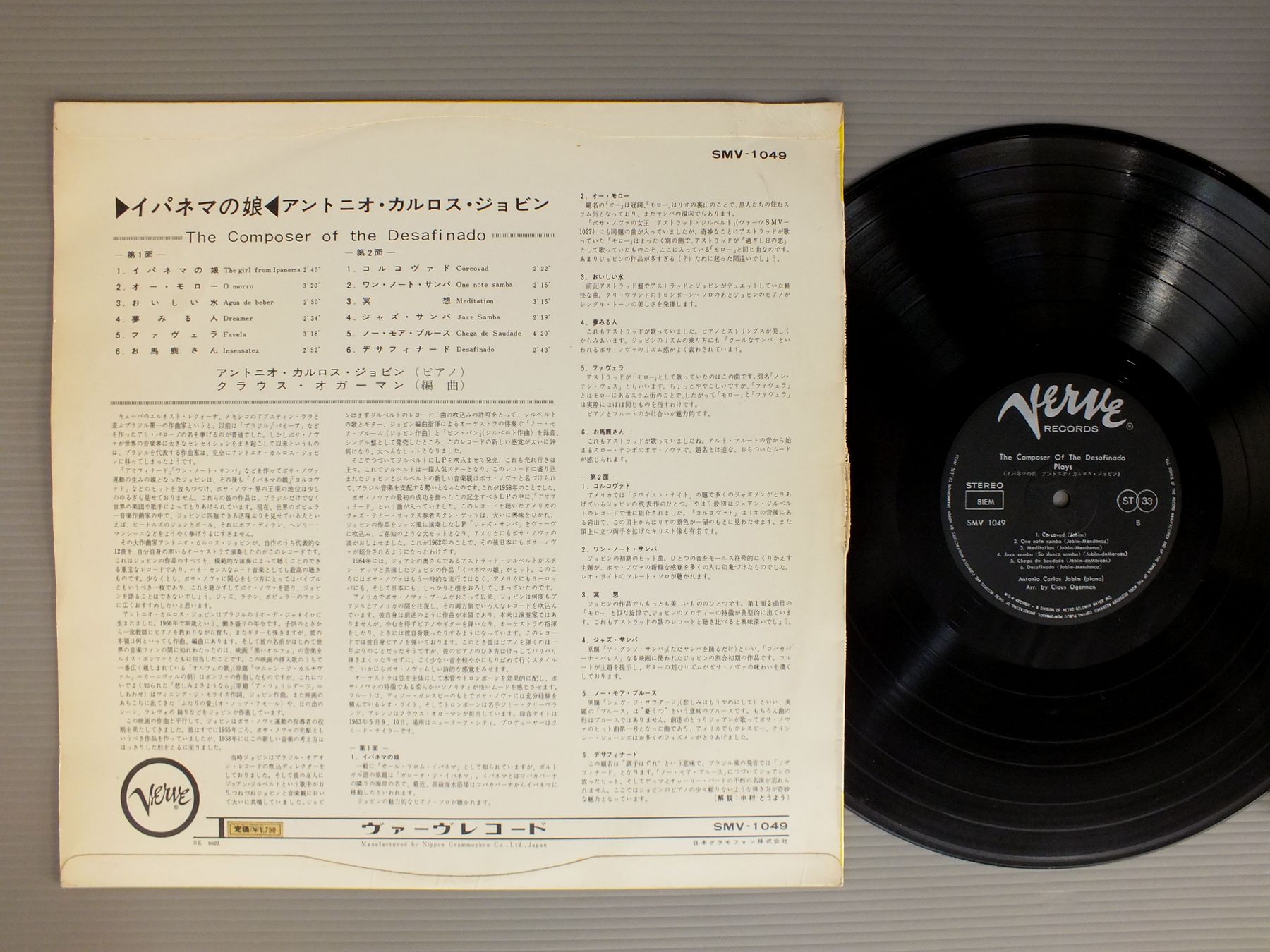 ANTONIO CARLOS JOBIMアントニオ・カルロス・ジョビン/COMPOSER OF DESAFINADO PLAYSイパネマの娘 SMV1049 製造国:日本盤 / Media:LP外観:VG+盤の状態:EX- 価格(税込):¥550(売約済) 送料 7inch:定形外郵便 360円~LP:定形外郵便 660円~送料は、注文の最終画面で確認頂けます。 レコード検索 > CLASSIC ORCH. > ANTONIO CARLOS JOBIM/COMPOSER OF DESAFINADO PLAYS 外観 (VG+)特記事項:ヨレ有り。裏ジャケに日焼け感有り。背抜け有り。外観VG+の共通説明:ダメージやや有り。シミ、ヨゴレ、スレなど多少~やや多め。 盤の状態 (EX-)特記事項:薄いスリキズ・細かい表面スレ軽くある感じ。全体的には殆どが軽微なものの様子です。盤EX-の共通説明:盤面のスリキズが多少有り。音に出そうなものは殆ど無いように見える~さほど気にならないぐらいの軽いプチ数カ所程度。 その他:ぺらジャケ Tweet それぞれの画像をクリックすると、大きい写真が見られます こちらの商品もお勧めです 1,210円 JOHN KLEMMERジョン・クレマー / MAGNIFICENT MADNESSマグニフィセント・マッドネス 880円 EUGENE CICEROオイゲン・キケロ / 3 GREAT ARTISTSスリー・グレイト・アーティスト 1,210円 MODERN JAZZ QUARTETMJQ / ART OF THE MODERN JAZZ QUARTETアート・オブ・MJQ 770円 ART TATUM&HIS BANDアート・テイタム楽団 / ART TATUM & HIS SWINGSTERSアート・テイタム・オール・スター・セッション 660円 EDDIE CONDONエディ・コンドン / CONDON A LA CARTEコンドン・ア・ラ・カルト 660円 LALO SCHIFRINラロ・シフリン / BLACK WIDOWブラック・ウィンドウ 990円 DAVE GRUSINデイヴ・グルーシン / ONE OF A KINDデイヴ・グルーシン・ジェントル・サウンド 1,650円 TATSUYA TAKAHASHI&TOKYO UNION ORCH.高橋達也と東京ユニオン / SWING ON SWINGスイング・オン・スイング
