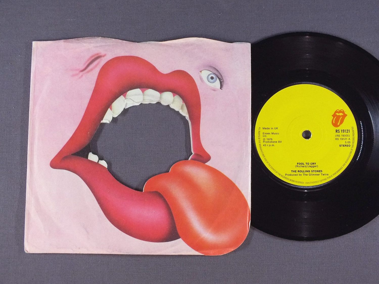 ROLLING STONES/FOOL TO CRY RS19121 製造国:英国盤 / Media:7inchMatrix:A2 B1外観:EX盤の状態:EX 価格(税込):¥2,640(売約済) 送料 7inch:定形外郵便 360円~LP:定形外郵便 660円~送料は、注文の最終画面で確認頂けます。 > > ROLLING STONES/FOOL TO CRY 外観 (EX)特記事項:STONESレーベルのカンパニースリーブ付。歯の部分やレコード取り出し口に多少ヨレ有りますが、全体的にしっかりした状態で抜けも無いです。外観EXの共通説明:ダメージが限定的。中古品としては保存状態がよい方。シミ、ヨゴレ、スレ 少し~軽度。 盤の状態 (EX)特記事項:薄いスリキズ・スレ軽く有る感じ。B面に15回程度軽くプチ出る線キズ有りますが、他は殆どが軽微なものの様子で、きれいな印象。曲間など、静かなところを中心に聴いて見ましたが、チリノイズ少ないきれいな再生具合でした。盤EXの共通説明:盤面のスリキズが薄いものが少し~軽度 音に出そうなものは無いように見える(軽微なソフトティック音は除く)。 Tweet それぞれの画像をクリックすると、大きい写真が見られます こちらの商品もお勧めです 2,750円 ROLLING STONES / EMOTIONAL RESCUE + POSTEREMOTIONAL RESCUE ポスター付