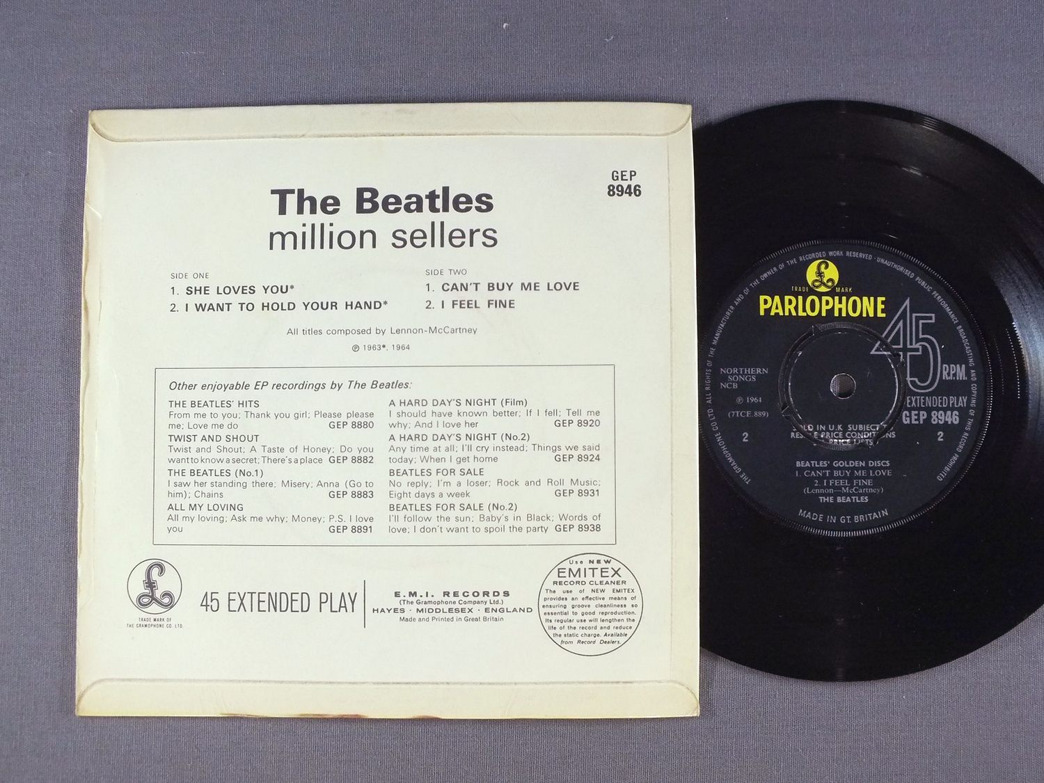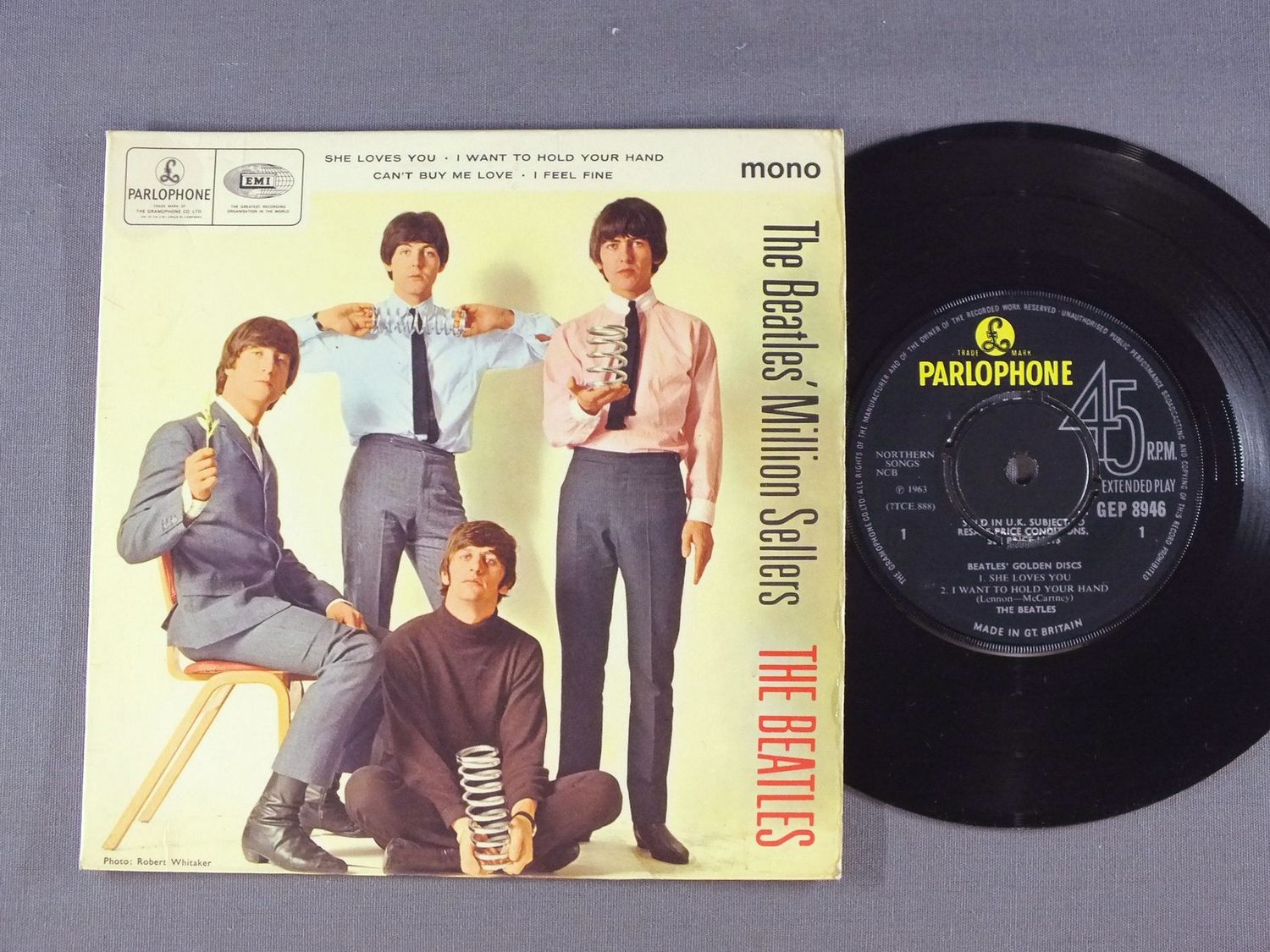 BEATLES/BEATLES` MILLION SELLERS EP GEP8946 製造国:英国盤 / Media:7inchMatrix: -1/2/GG -1/3/RG外観:EX盤の状態:EX 価格(税込):¥7,700(売約済) 送料 7inch:定形外郵便 360円~LP:定形外郵便 660円~送料は、注文の最終画面で確認頂けます。 > > BEATLES/BEATLES` MILLION SELLERS EP 外観 (EX)特記事項:表ジャケは厚手のコーティング仕様。表ジャケはレコードリングスレも少なめでヨレ感も少ない印象。裏ジャケ側もよごれは少ない感じです。抜けは有りません。外観EXの共通説明:ダメージが限定的。中古品としては保存状態がよい方。シミ、ヨゴレ、スレ 少し~軽度。 盤の状態 (EX)特記事項:薄いスリキズ・スレ軽く有る感じ。殆どが軽微なものの様子で、きれいな印象。曲間など、静かなところを中心に聴いて見ましたが、チリノイズ少ないきれいな再生具合でした。盤EXの共通説明:盤面のスリキズが薄いものが少し~軽度 音に出そうなものは無いように見える(軽微なソフトティック音は除く)。 Tweet それぞれの画像をクリックすると、大きい写真が見られます こちらの商品もお勧めです 5,500円 GEORGE HARRISON / LIVING IN THE MATERIAL WORLD 5,500円 JOHN LENNON / SHAVED FISH 4,950円 JOHN & YOKO - PLASTIC ONO BANDF / SOME TIME IN NEW YORK CITY 5,500円 GEORGE HARRISON / THIRTY THREE & 1/3 5,500円 BEATLES / AT THE HOLLYWOOD BOWL