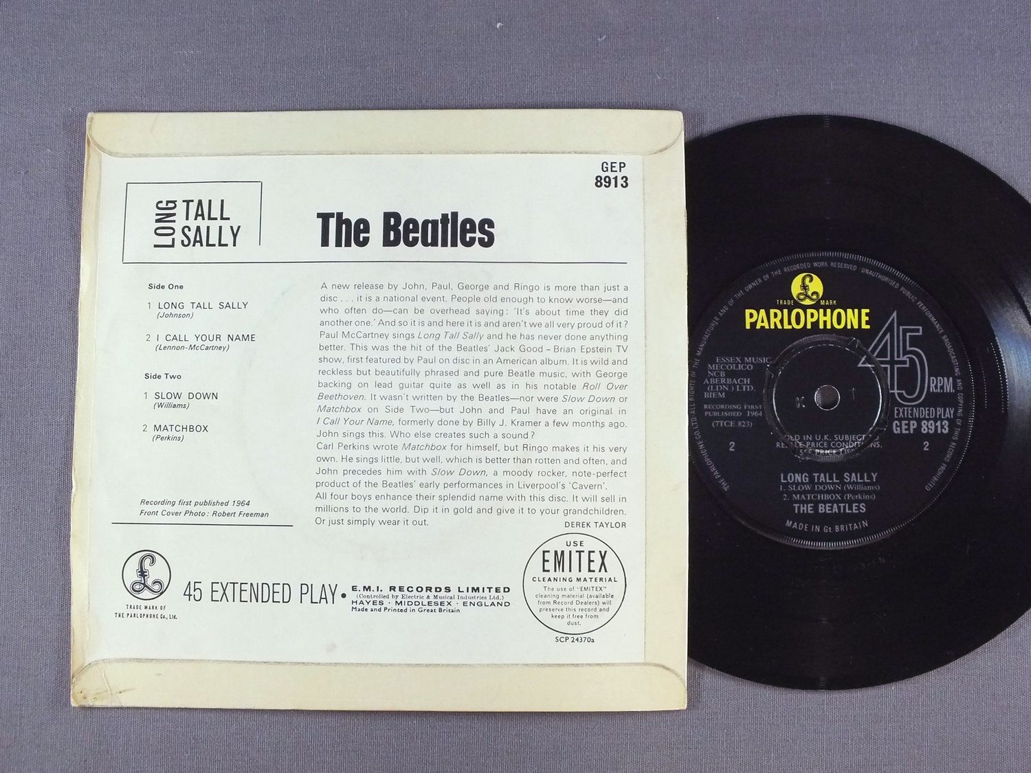 BEATLES/LONG TALL SALLY EP GEP8913 製造国:英国盤 / Media:7inchMatrix:1N/6/HR 1N/6/HG外観:EX盤の状態:EX 価格(税込):¥6,600(売約済) 送料 7inch:定形外郵便 360円~LP:定形外郵便 660円~送料は、注文の最終画面で確認頂けます。 > > BEATLES/LONG TALL SALLY EP 外観 (EX)特記事項:表ジャケは厚手のコーティング仕様。背スレやレコード取り出し口縁のヨレは多少ある感じ。表ジャケはレコードリングスレ等スレや日焼けシミ等多少有り。裏ジャケはスレよごれ等多少有り。外観EXの共通説明:ダメージが限定的。中古品としては保存状態がよい方。シミ、ヨゴレ、スレ 少し~軽度。 盤の状態 (EX)特記事項:薄いスリキズ・スレ少しある程度。音に出そうなものもなく一見してきれいな状態です。曲間など、静かなところを中心に聴いて見ましたが、チリノイズ少ないきれいな再生具合でした。盤EXの共通説明:盤面のスリキズが薄いものが少し~軽度 音に出そうなものは無いように見える(軽微なソフトティック音は除く)。 Tweet それぞれの画像をクリックすると、大きい写真が見られます こちらの商品もお勧めです 5,500円 JOHN LENNON / SHAVED FISH 5,500円 BEATLES / AT THE HOLLYWOOD BOWL 4,950円 JOHN & YOKO - PLASTIC ONO BANDF / SOME TIME IN NEW YORK CITY 5,500円 GEORGE HARRISON / THIRTY THREE & 1/3 5,500円 GEORGE HARRISON / LIVING IN THE MATERIAL WORLD
