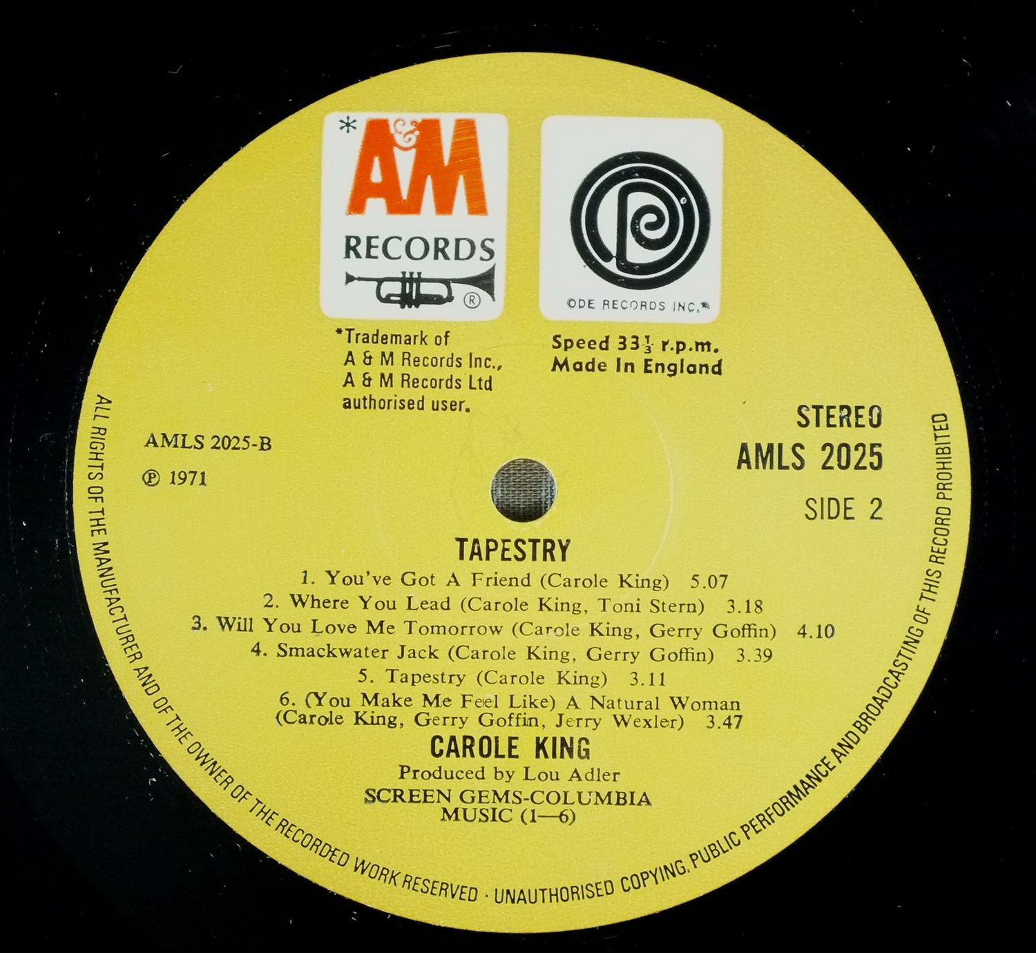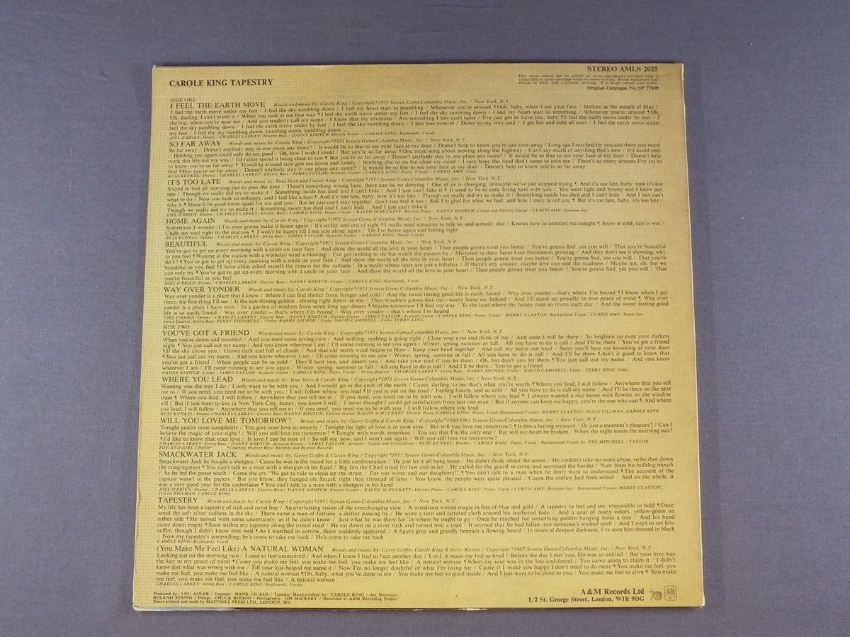 CAROLE KING/TAPESTRY AMLS2025 製造国:英国盤 / Media:LPMatrix:A2 B2外観:EX盤の状態:EX 価格(税込):¥4,400(売約済) 送料 7inch:定形外郵便 360円~LP:定形外郵便 660円~送料は、注文の最終画面で確認頂けます。 > > CAROLE KING/TAPESTRY 外観 (EX)特記事項:上下ヘリスレや背上下角にスレ有り。表ジャケ背付近にヨレが少し。ジャケ表面は全体的にスレやスリキズ、よごれ等は薄い印象。外観EXの共通説明:ダメージが限定的。中古品としては保存状態がよい方。シミ、ヨゴレ、スレ 少し~軽度。 盤の状態 (EX)特記事項:薄いスリキズ・スレ軽くある感じ。ほとんどが軽微なものの様子です。曲間など、静かなところを中心に聴いて見ましたが、チリプチ軽度で音もしっかり鳴っていました。盤EXの共通説明:盤面のスリキズが薄いものが少し~軽度 音に出そうなものは無いように見える(軽微なソフトティック音は除く)。 Tweet それぞれの画像をクリックすると、大きい写真が見られます こちらの商品もお勧めです 5,060円 JONI MITCHELL / CHALK MARK IN A RAIN STORM 3,850円 NICO / THE END 7,700円 SUSAN MAUGHAN / I WANNA BE BOBBY`S GIRL 4,950円 SANDY DENNY / RENDEZVOUS 4,400円 JONI MITCHELL / DOG EAT DOG 4,950円 JONI MITCHELL / DOG EAT DOG