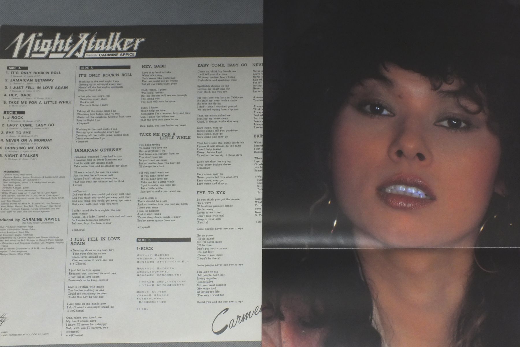 CARMEN MAKIカルマン・マキ/NIGHT STALKER MKF 1050 製造国:日本盤 / Media:LP外観:EX-盤の状態:EX 価格(税込):¥1,155(売約済) 送料 7inch:定形外郵便 360円~LP:定形外郵便 660円~送料は、注文の最終画面で確認頂けます。 > > CARMEN MAKI/NIGHT STALKER 外観 (EX-)特記事項:背スレやヘリスレ有り。レコードリングスレ有り。外観EX-の共通説明:ダメージ軽度~多少。 中古品としては普通の状態。シミ、ヨゴレ、スレなど軽く~多少。 盤の状態 (EX)特記事項:薄いスリキズ・スレ軽くある感じ。殆どが軽微なものの様子です。盤EXの共通説明:盤面のスリキズが薄いものが少し~軽度 音に出そうなものは無いように見える(軽微なソフトティック音は除く)。 Tweet それぞれの画像をクリックすると、大きい写真が見られます こちらの商品もお勧めです 770円 CHAGE & ASUKAチャゲ&飛鳥 / 熱風 990円 MASAMICHI SUGI杉真理 / STARGAZERスターゲイザー 990円 GO NAGABUCHI長渕剛 / GYAKURYU逆流 770円 KUMIKO YAMASHITA山下久美子 / DAKISHIMETE ONLY YOU抱きしめてオンリィ・ユー 770円 KONOMI SASAKI佐々木好(このみ) / KOKORO NO UCHI GA WAAREBA YOI心のうちがわかればいいのに 1,650円 TAKAYUKI INOUE井上堯之 / WATER MINDウォーター・マインド 1,210円 YUMI MATSUTOYA松任谷由実 / DA-DI-DAダ・ディ・ダ 990円 YUKO TOMITAとみたゆう子 / CLASSICAL HEARTクラシカル・ハート