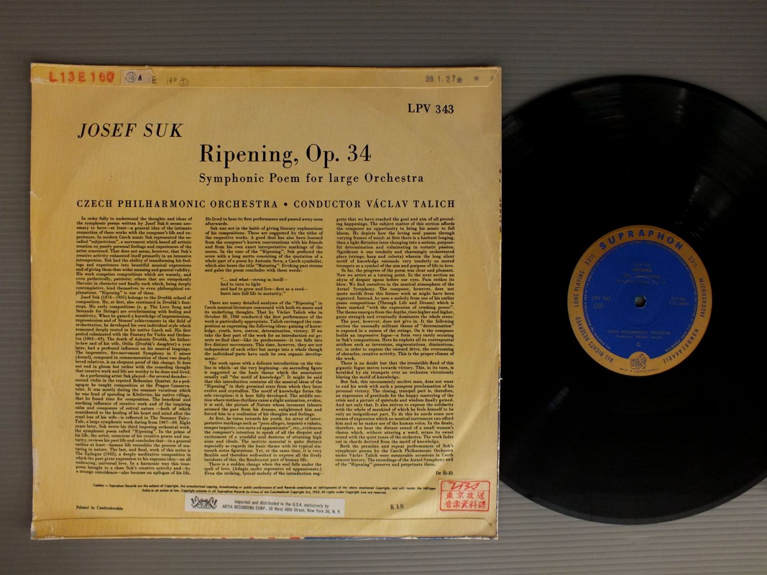 VACLAV TALICH/JOSEF SUK-RIPENING SYMPHONIC POEM FOR LARGE ORCH. LPV343 製造国:輸入盤 / Media:LP外観:VG盤の状態:EX 価格(税込):¥1,155(売約済) 送料 7inch:定形外郵便 360円~LP:定形外郵便 660円~送料は、注文の最終画面で確認頂けます。 レコード検索 > CLASSIC ORCH. > VACLAV TALICH/JOSEF SUK-RIPENING SYMPHONIC POEM FOR LARGE ORCH. 外観 (VG)特記事項:背スレやヘリスレ。ヨレ有り。ステッカーやスタンプ有り。外観VGの共通説明:ダメージが見るからに多い。 盤の状態 (EX)特記事項:薄いスリキズ・スレ軽くある感じ。殆どが軽微なものの様子です。盤EXの共通説明:盤面のスリキズが薄いものが少し~軽度 音に出そうなものは無いように見える(軽微なソフトティック音は除く)。 その他:チェコ盤 Tweet それぞれの画像をクリックすると、大きい写真が見られます こちらの商品もお勧めです 1,540円 BARTY TUCKWELL / JOSEPH & MICHAEL HAYDN HORNKONZERTE-HORN CONC. 990円 CZIFFRA-VANDERNOOT / TCHAIKOVSKY PIANOCONCERT 1,980円 KUBELIK / NICOLAI-DIE LUSTIGEN WEIBER VON WINDSOR 990円 BARBIROLLI / ELGAR-SYM. NO1 990円 IGOR STRAVINSKY / STRAVINSKY-AGON-BALLET-CANTICUM SACRUM 1,980円 BEECHAM / BEETHOVEN-SYM. NO8 1,650円 ROBERT SHAW / GLUCK-ORFEO ED EURIDICE 1,430円 BOSTON SYM. CHAMBER PLAYERS / CHAMBER MUSIC