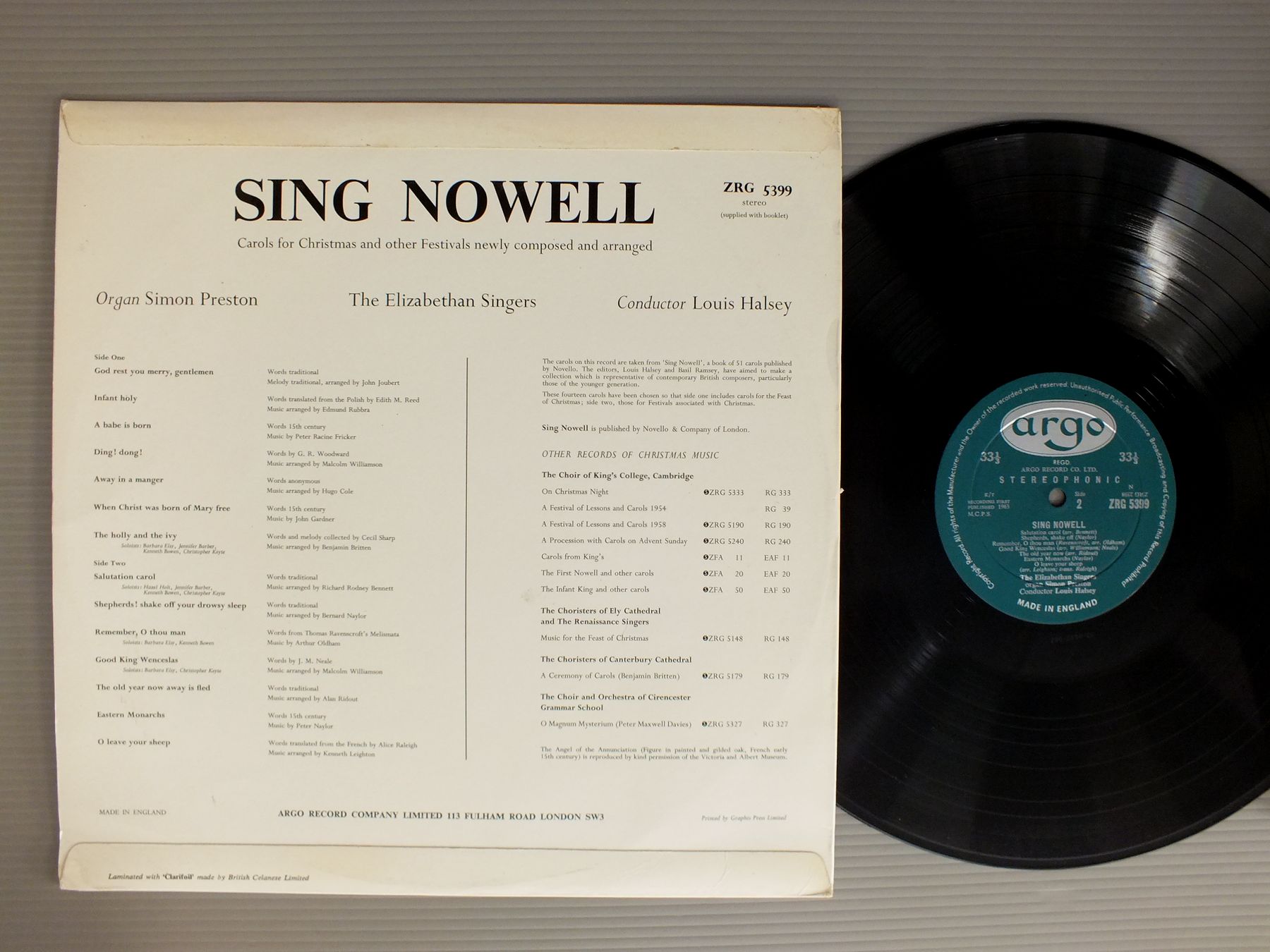 ELIZABETHAN SINGERS-SIMON PRESTON-LOUIS HALSEY/SING NOWELL ZRG5399 製造国:英国盤 / Media:LP外観:EX盤の状態:EX- 価格(税込):¥924(売約済) 送料 7inch:定形外郵便 360円~LP:定形外郵便 660円~送料は、注文の最終画面で確認頂けます。 > > ELIZABETHAN SINGERS-SIMON PRESTON-LOUIS HALSEY/SING NOWELL 外観 (EX)特記事項:特記なし。外観EXの共通説明:ダメージが限定的。中古品としては保存状態がよい方。シミ、ヨゴレ、スレ 少し~軽度。 盤の状態 (EX-)特記事項:薄いスリキズ・細かい表面スレ軽くある感じです。プチ出そうな所は少し。軽微なものが中心の様子です。盤EX-の共通説明:盤面のスリキズが多少有り。音に出そうなものは殆ど無いように見える~さほど気にならないぐらいの軽いプチ数カ所程度。 Tweet それぞれの画像をクリックすると、大きい写真が見られます こちらの商品もお勧めです 990円 VICTOR REINSHAGEN / KALMAN-CONTESS MARITZA 990円 ARKHIPOVA-GUSELNIKOV / P TCAIKOVSKY SIX SONGS 1,980円 RICHTER / BACH SERIES A CANTAS `JESU DER DU MEINE SEELE` 990円 JONEL PERLEA / OPERA BALLETS-GOUNOD FAUST etc 2,090円 KLEMPERER - PHILHARMONIA / MOZART - DON GIOVANNI 4LP SETMOZART - DON GIOVANNI 4枚組 1,430円 DIESKAU-RICHTER / SCHUBERT・LIEDER 990円 SIGRID ONEGIN / SINGT AUS OPERN 990円 GARDELLI / ROSSINI WILLIAM TELL