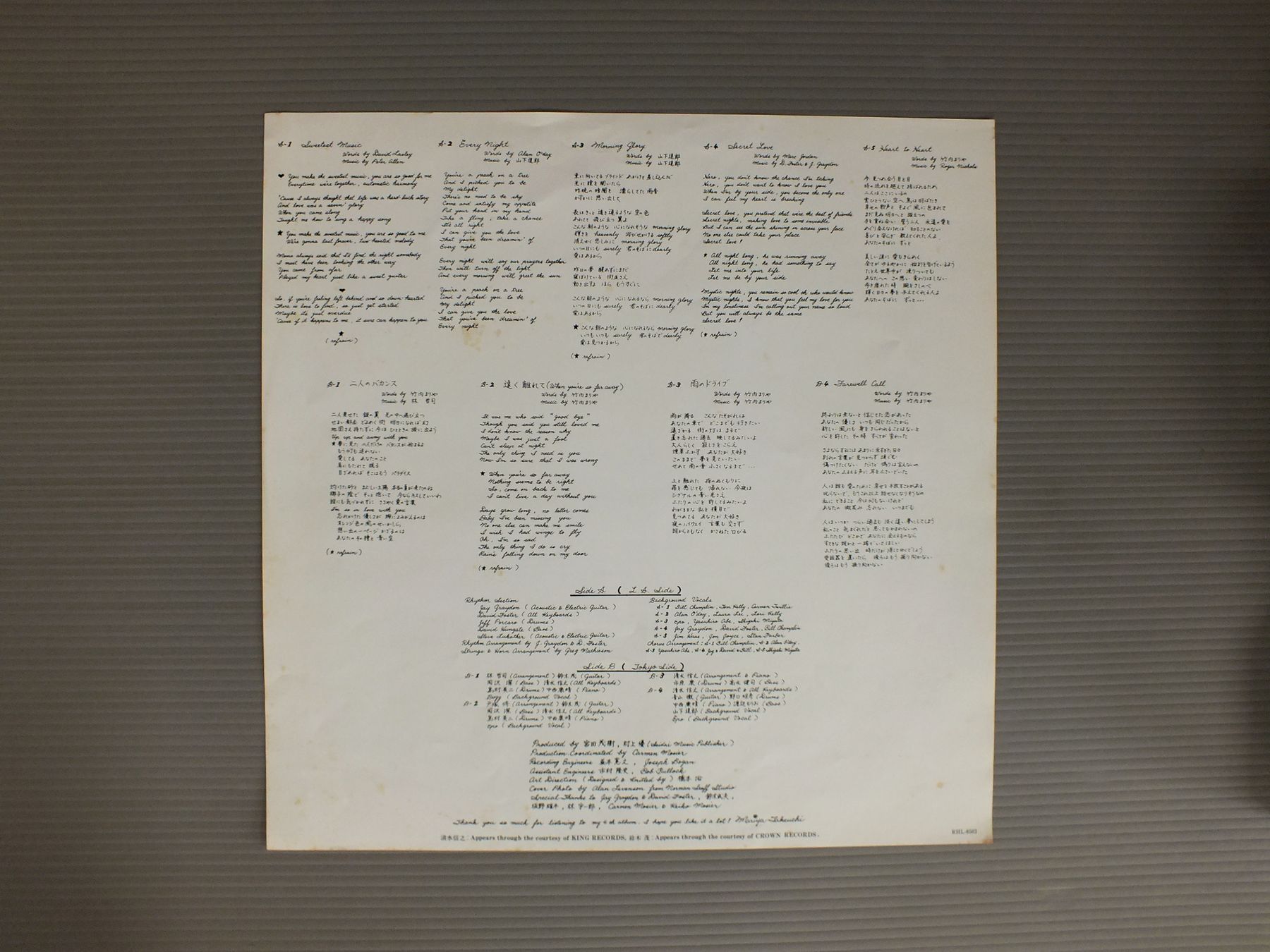 TAKEUCHI MARIYA竹内まりや/MISS M RHL8503 製造国:日本盤 / Media:LP外観:EX盤の状態:EX-帯:VG+ 価格(税込):¥990(売約済) 送料 7inch:定形外郵便 360円~LP:定形外郵便 660円~送料は、注文の最終画面で確認頂けます。 > > TAKEUCHI MARIYA/MISS M 外観 (EX)特記事項:特記なし。外観EXの共通説明:ダメージが限定的。中古品としては保存状態がよい方。シミ、ヨゴレ、スレ 少し~軽度。 盤の状態 (EX-)特記事項:薄いスリキズ・細かい表面スレ軽くある感じです。プチ出そうな所は少し。軽微なものが中心の様子です。盤EX-の共通説明:盤面のスリキズが多少有り。音に出そうなものは殆ど無いように見える~さほど気にならないぐらいの軽いプチ数カ所程度。 帯の状態 (VG+):切れやシミ、テープ有り。 Tweet それぞれの画像をクリックすると、大きい写真が見られます こちらの商品もお勧めです 1,320円 FUKINOTOふきのとう / SAIJIKI歳時記 1,210円 EIKICHI YAZAWA矢沢永吉 / KISS ME PLEASEキス・ミー・プリーズ 660円 CYGNUS白鳥座 / DENEB ( 2nd ALBUM )デネブ ( 2nd ALBUM ) 880円 YOUSUI INOUE井上陽水 / NO INVITATION SHOW招待状のないショー 1,210円 HIROKUNI KOREKATA是方博邦 / MELODY CITYメロディ・シティ 770円 YUMI MATSUTOYA松任谷由実 / DA・DI・DA 770円 EMU絵夢 / EMU 2絵夢 II 990円 CAROLキャロル / 1975 4.13.1975 4.13.