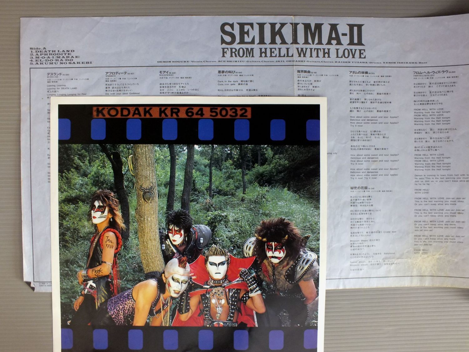 SEIKIMA-2聖飢魔 II/FROM HELL WITH LOVE地獄より愛をこめて 28AH2119 製造国:日本盤 / Media:LP外観:EX盤の状態:EX-帯:EX+ 価格(税込):¥924(売約済) 送料 7inch:定形外郵便 360円~LP:定形外郵便 660円~送料は、注文の最終画面で確認頂けます。 レコード検索 > CLASSIC ORCH. > SEIKIMA-2/FROM HELL WITH LOVE 外観 (EX)特記事項:歌詞カードにヨレ大や剥がれ。外観EXの共通説明:ダメージが限定的。中古品としては保存状態がよい方。シミ、ヨゴレ、スレ 少し~軽度。 盤の状態 (EX-)特記事項:薄いスリキズ・細かい表面スレ多少ある感じです。プチ出そうな所は少し。軽微なものが中心の様子です。盤EX-の共通説明:盤面のスリキズが多少有り。音に出そうなものは殆ど無いように見える~さほど気にならないぐらいの軽いプチ数カ所程度。 帯の状態 (EX+):特記なし。 Tweet それぞれの画像をクリックすると、大きい写真が見られます こちらの商品もお勧めです 770円 HIROMI OHTA大田裕美 / 12 PAGES POETRY12ページの詩集 770円 ALL NIGHTERSオールナイターズ / 2nd ALBUMKIRAっとジェネレーション 770円 TAKURO YOSHIDAよしだたくろう / HELLO! I`M TAKURO YOSHIDA元気です。 770円 CANDIESキャンディーズ / CANDIESキャンディーズ 770円 MANI SHIRAKAWA白川奈美 / LULLABY SONGS BY NAMI遠くはなれて子守唄 白川奈美・子守唄の旅 770円 YOUSUI INOUE井上陽水 / DANZETU断絶 770円 TAKURO YOSHIDA吉田拓郎 / SHANGRI-LAシャングリ・ラ 660円 MANABU MIYAHARA宮原学 / RUSH !