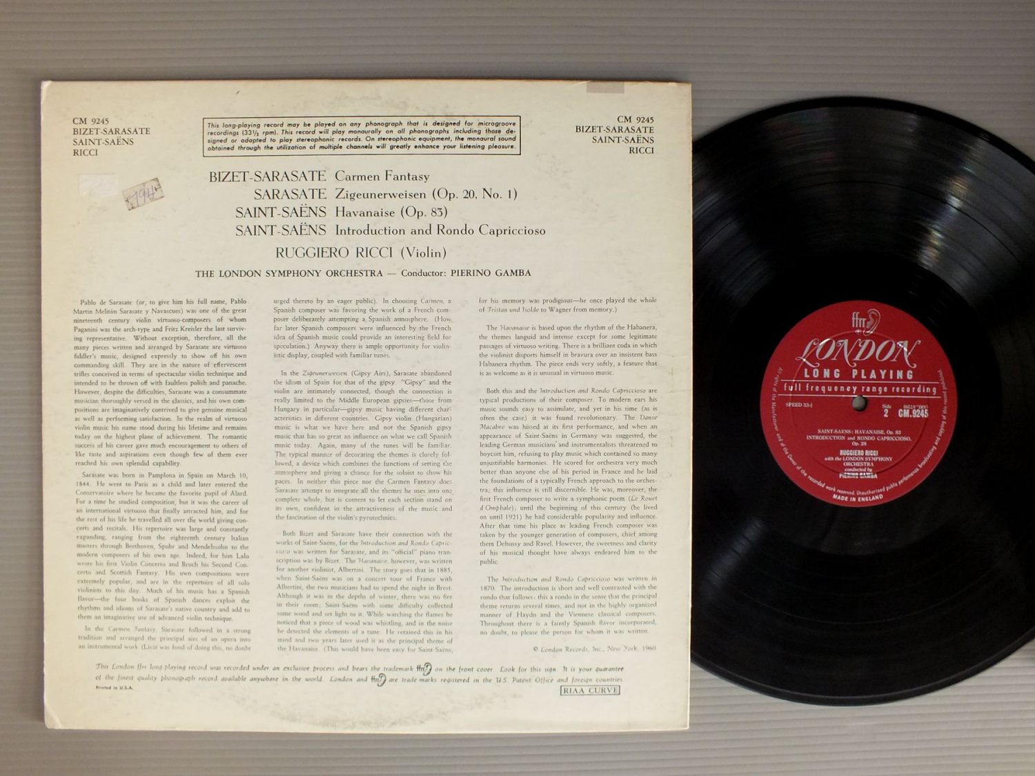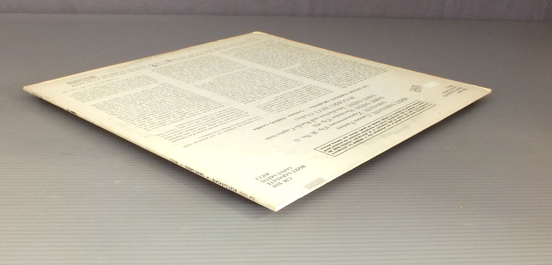 RICCI-GAMBA/BIZET-SARASATE-SAINT-SAENS CM9245 製造国:英国盤 / Media:LP外観:EX盤の状態:EX- 価格(税込):¥1,584(売約済) 送料 7inch:定形外郵便 360円~LP:定形外郵便 660円~送料は、注文の最終画面で確認頂けます。 レコード検索 > CLASSIC ORCH. > RICCI-GAMBA/BIZET-SARASATE-SAINT-SAENS 外観 (EX)特記事項:レコードリングスレ有り。裏ジャケにステッカー。外観EXの共通説明:ダメージが限定的。中古品としては保存状態がよい方。シミ、ヨゴレ、スレ 少し~軽度。 盤の状態 (EX-)特記事項:薄いスリキズ・細かい表面スレ多少ある感じです。プチ出そうな所は少し。軽微なものが中心の様子です。盤EX-の共通説明:盤面のスリキズが多少有り。音に出そうなものは殆ど無いように見える~さほど気にならないぐらいの軽いプチ数カ所程度。 Tweet それぞれの画像をクリックすると、大きい写真が見られます こちらの商品もお勧めです 990円 GARAGULY / NIELSEN SQ NO2 OPUS5 990円 MARIO DUSCHENES - KELSEY JONES / HANDEL - SONATA FOR FLUTE & HARPSICHORD 1,320円 VLADIMIR WEISMAN-ELEANOR HANCOCKウラディミール・ヴァイスマン-エレノア・ハンコック / R. STRAUSS-SONATA FOR VIOLIN & PIANOR. シュトラウス-ヴァイオリン・ソナタ 1,980円 OISTRACH / CORELLI - 4 CONCERTI GROSSI 1,650円 CORTOT - THIBAUD - CASALS / MENDELSSOHN - TRIO FOR PIANO VIOLIN & VIOLINCELLO NO1 2,420円 BUDAPEST QUARTET / SCHUBERT-THE LAST QUARTETS 990円 PAILLARD / DVORAK & TCHAIKOVSKY-TWO SERENADES FOR STRINGS 990円 ARTHUR WINOGRAD / MENDELSSOHN-OCET-SINFONIA NO9