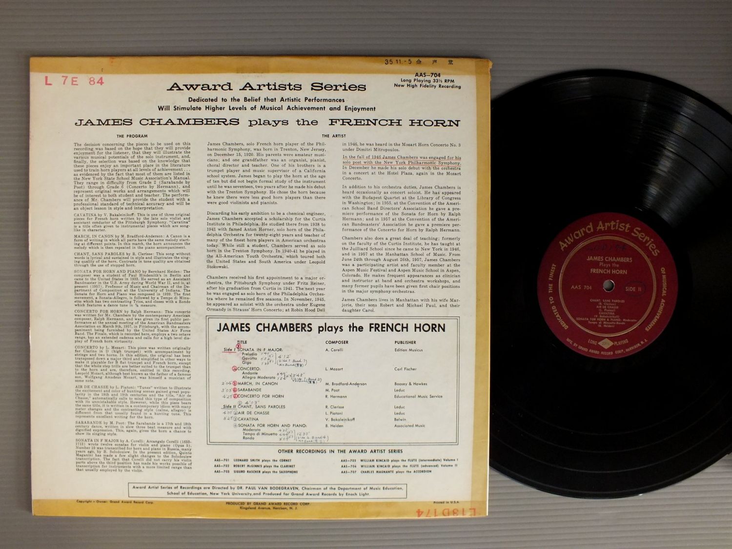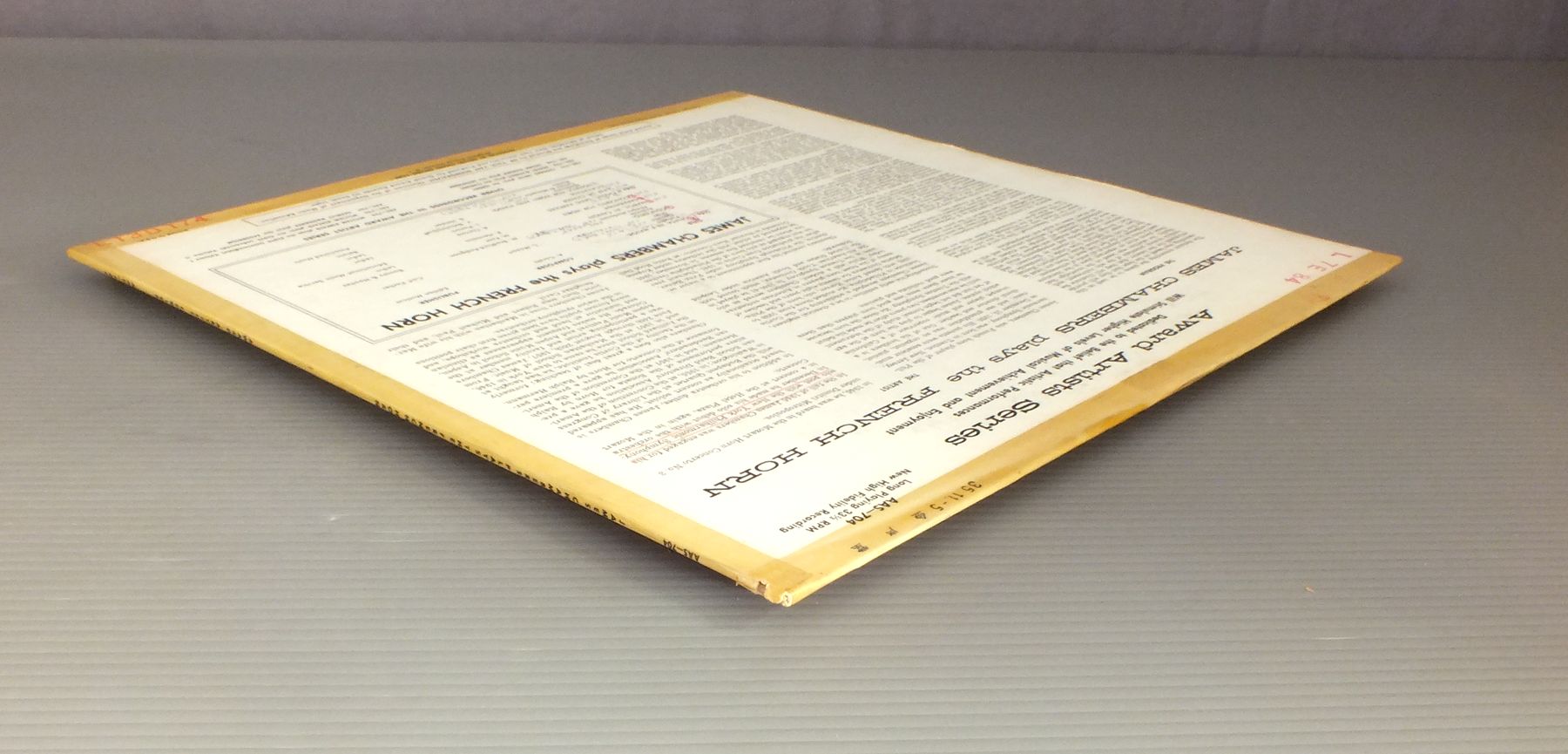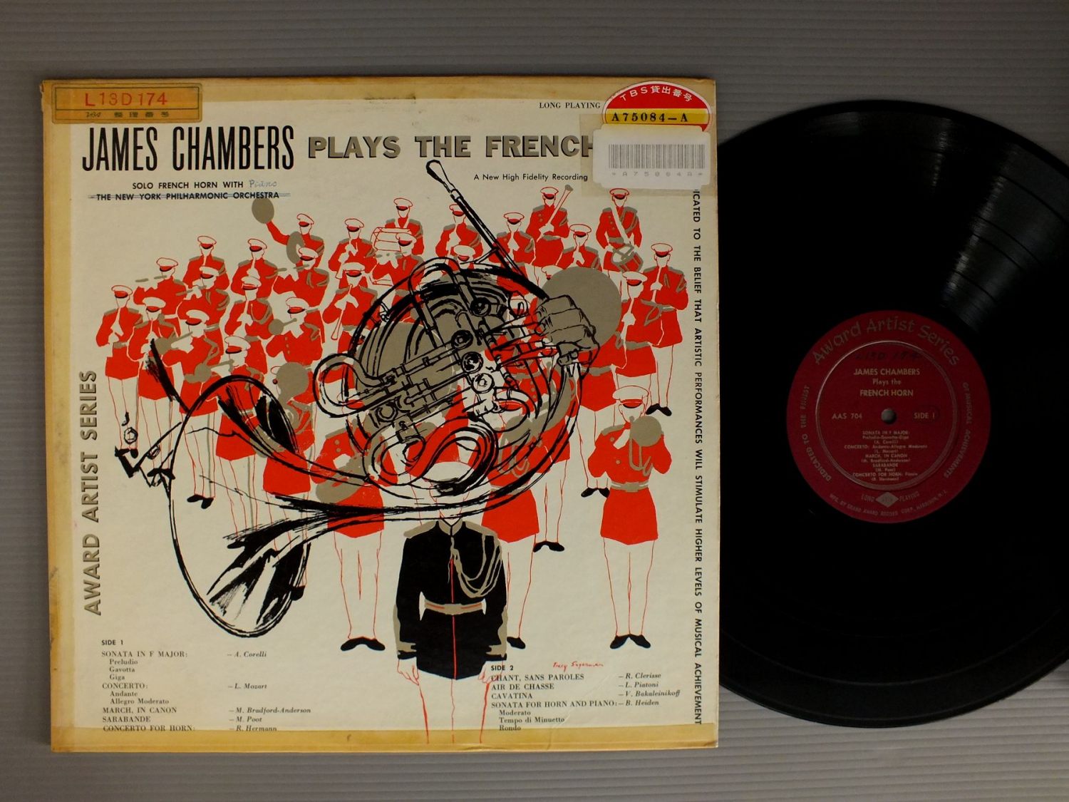 JAMES CHAMBERS/JAMES CHAMBERS PLAYS THE FRENCH HORN AAS704 製造国:米国盤 / Media:LP外観:VG盤の状態:EX- 価格(税込):¥924(売約済) 送料 7inch:定形外郵便 360円~LP:定形外郵便 660円~送料は、注文の最終画面で確認頂けます。 レコード検索 > CLASSIC ORCH. > JAMES CHAMBERS/JAMES CHAMBERS PLAYS THE FRENCH HORN 外観 (VG)特記事項:書き込み有り。背やヘリにテープ。ステッカーやスタンプ有り。外観VGの共通説明:ダメージが見るからに多い。 盤の状態 (EX-)特記事項:薄いスリキズ・細かい表面スレ多少ある感じです。プチ出そうな所は少し。軽微なものが中心の様子です。盤EX-の共通説明:盤面のスリキズが多少有り。音に出そうなものは殆ど無いように見える~さほど気にならないぐらいの軽いプチ数カ所程度。 Tweet それぞれの画像をクリックすると、大きい写真が見られます こちらの商品もお勧めです 1,540円 NASH ENSEMBLE / HUMMEL-BERWALD-SEPTETS 990円 TARR-KENT / BAROQUE MASTERPIECES FOR TRUMPET & ORGAN 1,540円 MITGLIEDER DES WIENER OKTETTSウィーン八重奏団員 / DVORAK - STREICHSEXTETT - STREICHQUINTETTドボルザーク - 弦楽四重奏43番97番 2,420円 NICOLAUS HARNONCOURT / MUSIK AM HABSBURG. KAISERHOF 990円 SOMARY / HANDEL-ROYAL FIREWORKS 1,430円 ERZSEBET TUSA-JOZSEF MARTON-JANOS SANDOR / COMPLETE EDITION-BARTOK BELA 990円 M.PETRI-H.HOLLIGER / VIVALDI-CONCERTI DA CAMERA 990円 ULF BJORLIN / MUSIC AT DROTTNINGHOLM