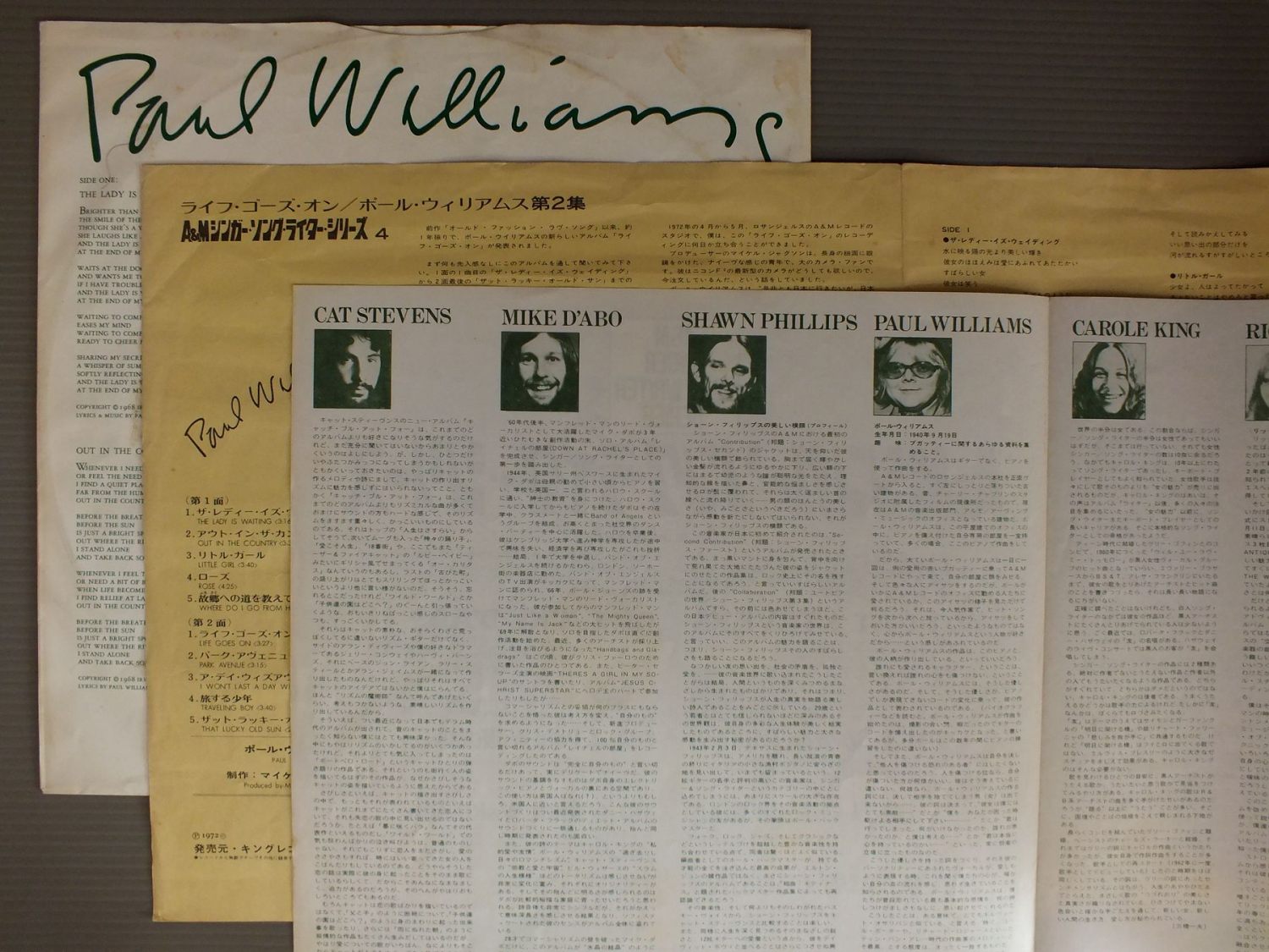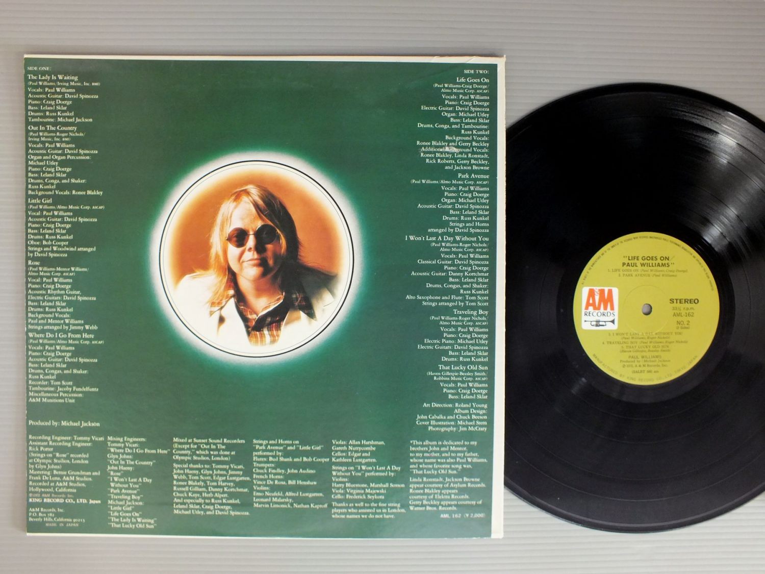 PAUL WILLIAMSポール・ウィリアムス/LIFE GOES ONライフ・ゴーズ・オン-ポール・ウィリアムス 第2集 AML162 製造国:日本盤 / Media:LP外観:EX盤の状態:VG+ 価格(税込):¥578(売約済) 送料 7inch:定形外郵便 360円~LP:定形外郵便 660円~送料は、注文の最終画面で確認頂けます。 レコード検索 > CLASSIC ORCH. > PAUL WILLIAMS/LIFE GOES ON 外観 (EX)特記事項:特記なし。外観EXの共通説明:ダメージが限定的。中古品としては保存状態がよい方。シミ、ヨゴレ、スレ 少し~軽度。 盤の状態 (VG+)特記事項:薄いスリキズ・細かいスレ多少。周期的にプチ出そうな小キズ、線キズも有ります。少し聴いてみましたが、音自体はしっかりクリアーに鳴っているようでした。盤VG+の共通説明:盤面にスリキズが多少~やや有り、音に出そうなものも多少ある。 Tweet それぞれの画像をクリックすると、大きい写真が見られます こちらの商品もお勧めです 440円 JOHNNY MATHISジョニー・マティス / KILLING ME SOFTLY WITH HER SONGやさしく歌って 440円 MAX CARLマックス・カール / CIRCLEサークル 1,210円 WILLIE NELSONウィリー・ネルソン / PARTNERSサムシング 990円 SALVATORE ADAMOサルヴァトーレ・アダモ / DELUXE IN SALVATORE ADAMOデラックス イン サルヴァトーレ・アダモ 660円 LEO SAYERレオ・セイヤー / LIVING IN A FANTASYシティ・ライフ・セレナーデ 770円 JOHNNY CASHジョニー・キャシュ / JOHNNY CASH`S GREATEST HITSジョニー・キャシュ・グレーテスト・ヒット 770円 FRED BONGUSTOフレッド・ボングスト / IL GIORNO E LA NOTTE昼と夜 990円 CLIFF RICHARDクリフ・リチャード / DELUXE IN CLIFF RICHARDデラックス イン クリフ・リチャード