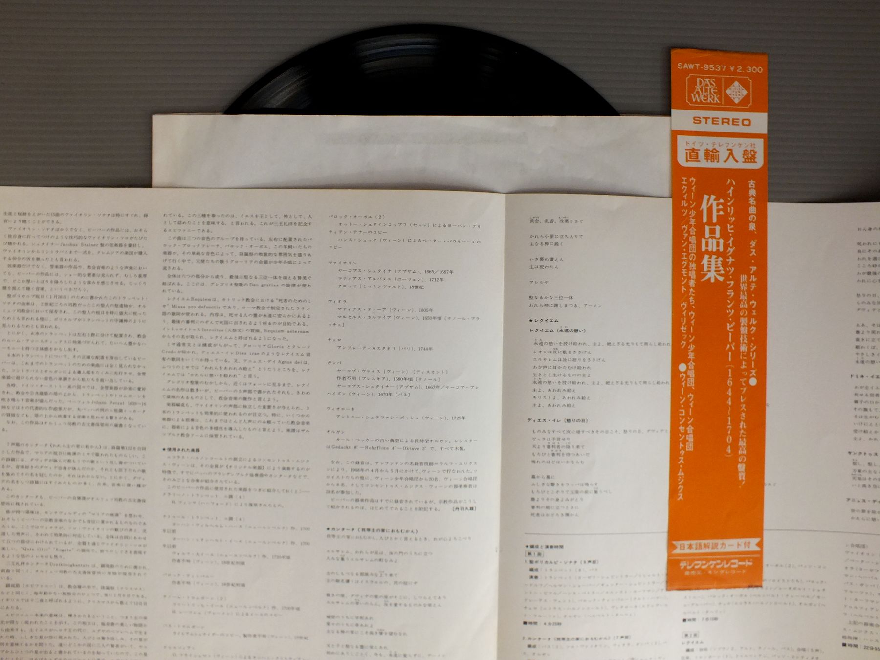 SOPRAN-UND ALT-SOLISTEN DER WIENER SANGERKNABENウィーン少年合唱団の独唱者たち-ハンス・ギレスベルガー-アーノンクール 他/BIBER-REQUIEMダス・アルテ・ウェルク・シリーズ-ビーバー-作品集 SAWT9537A 製造国:独盤 / Media:LP外観:EX-盤の状態:EX 価格(税込):¥1,584(売約済) 送料 7inch:定形外郵便 360円~LP:定形外郵便 660円~送料は、注文の最終画面で確認頂けます。 レコード検索 > CLASSIC ORCH. > SOPRAN-UND ALT-SOLISTEN DER WIENER SANGERKNABEN/BIBER-REQUIEM 外観 (EX-)特記事項:折れ跡有り。日焼け有り。外観EX-の共通説明:ダメージ軽度~多少。 中古品としては普通の状態。シミ、ヨゴレ、スレなど軽く~多少。 盤の状態 (EX)特記事項:薄いスリキズ・スレ軽くある感じ。軽微なものの様子です。盤EXの共通説明:盤面のスリキズが薄いものが少し~軽度 音に出そうなものは無いように見える(軽微なソフトティック音は除く)。 Tweet それぞれの画像をクリックすると、大きい写真が見られます こちらの商品もお勧めです 1,430円 ROBERT MERRILL / ERNEST BLOCH-SACRED SERVICE 880円 DAME JOAN HAMMOND / ART OF DAME JOAN HAMMOND 1,430円 TULLIO SERAFIN / CALLAS PORTRAYS PUCCINI HEROINES 1,980円 NELLO SANTI / OPERNABEND MIT JOAN SUTHERLAND 1,430円 GERD RUBAHN / STRAVINSKY-SYM. IN C 990円 LYUN JOON KIM金連俊 / CYCLE OF 14 SONGS AMONG THE REEDS VOL.8連歌曲集 第八輯 1,980円 LEONIE RYSANEK / OPERATIC ARIAS 990円 DAVIS / VERDI-UN BALLO IN MASCHERA
